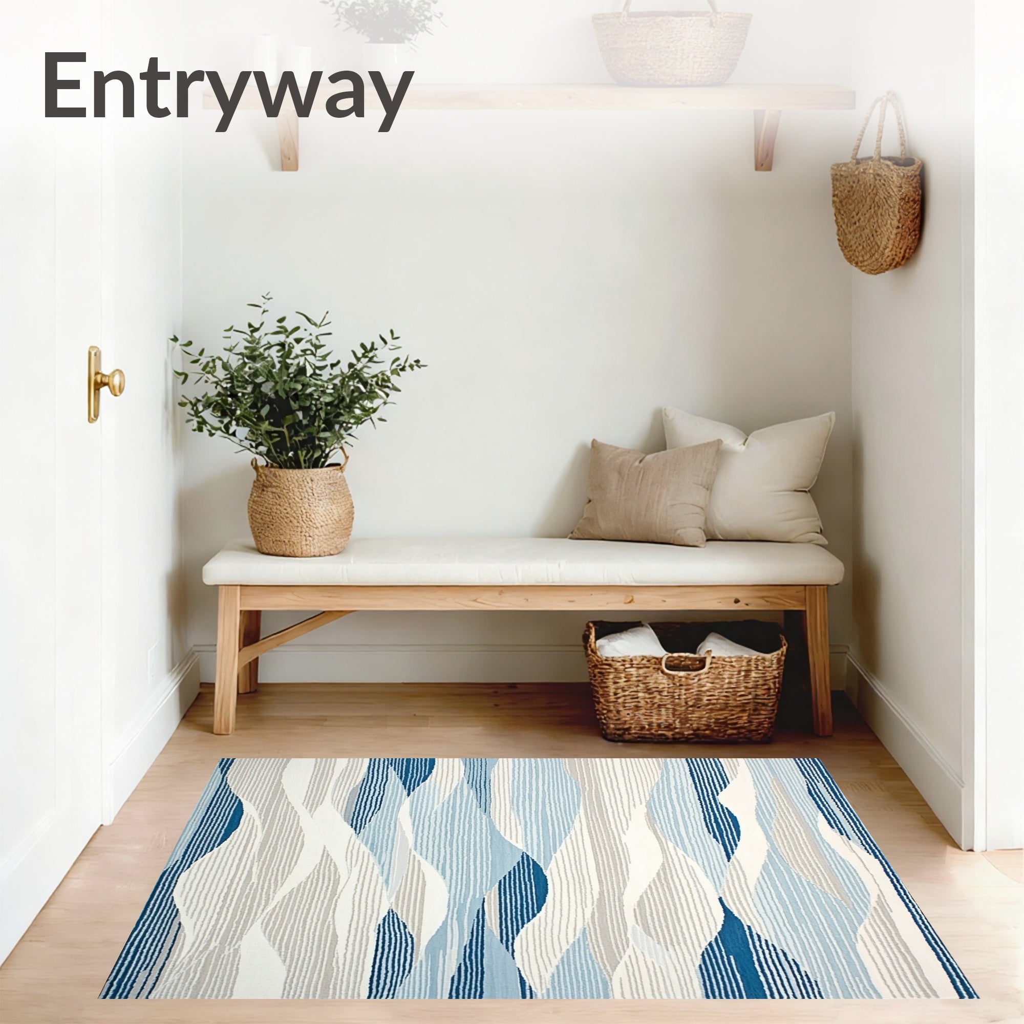 Ultra Soft Area Rug, Non Slip, Stain Resistant, Washable Area Rugs for Living Room, Bedroom, Coastal Harmony Serene Blue & Beige Oval(Blue) Overview: