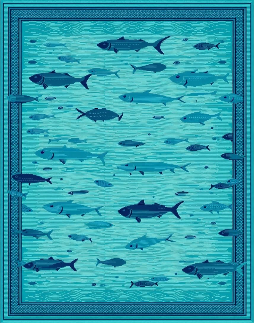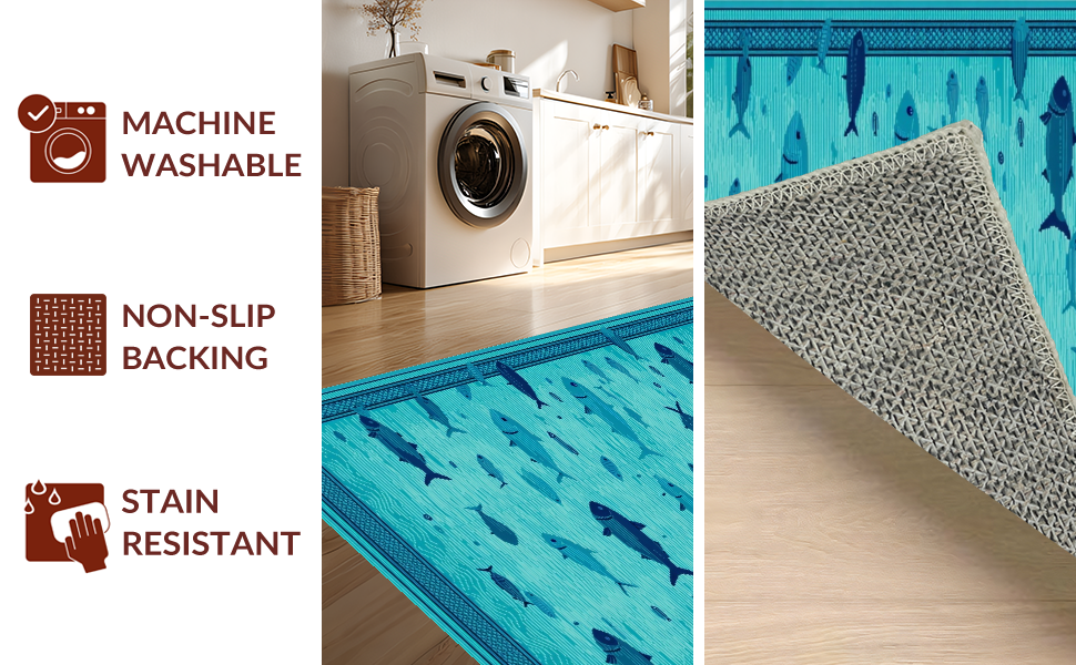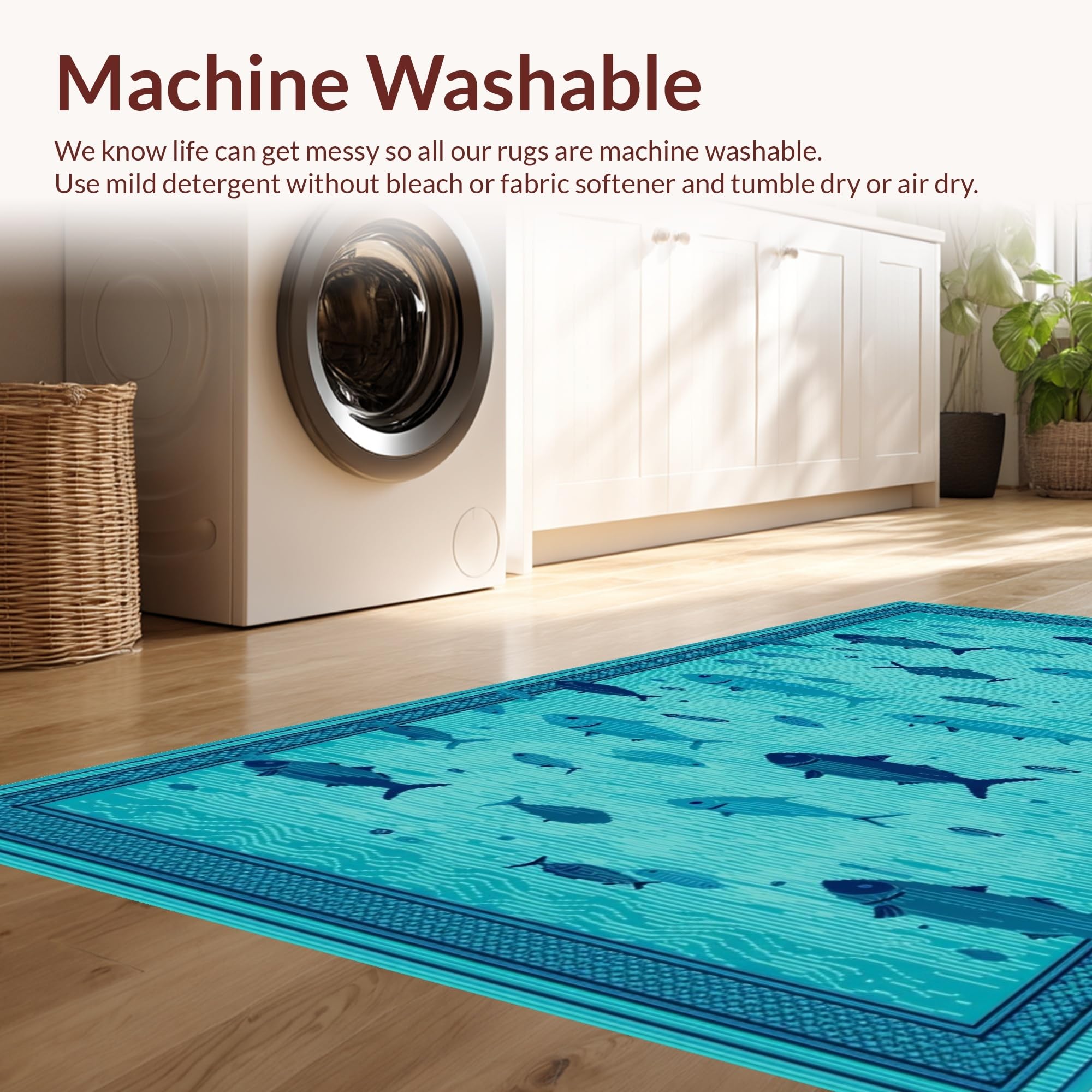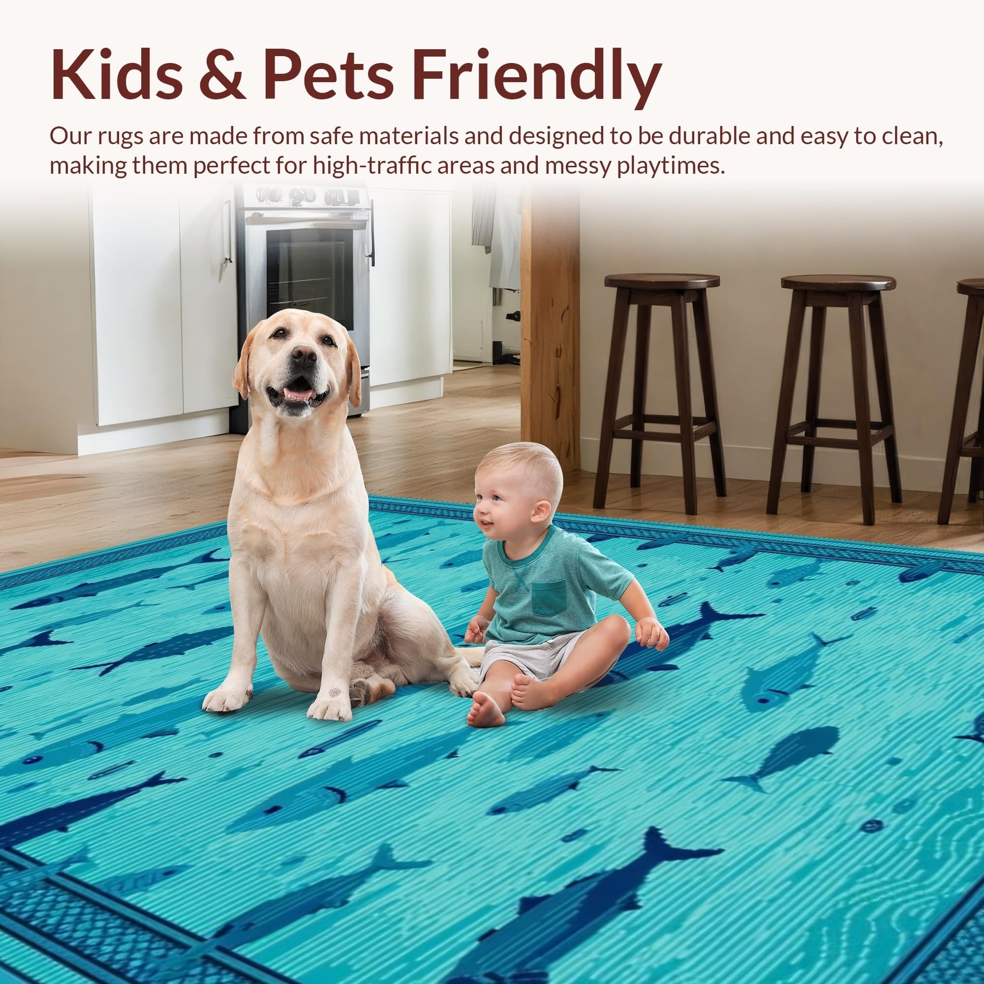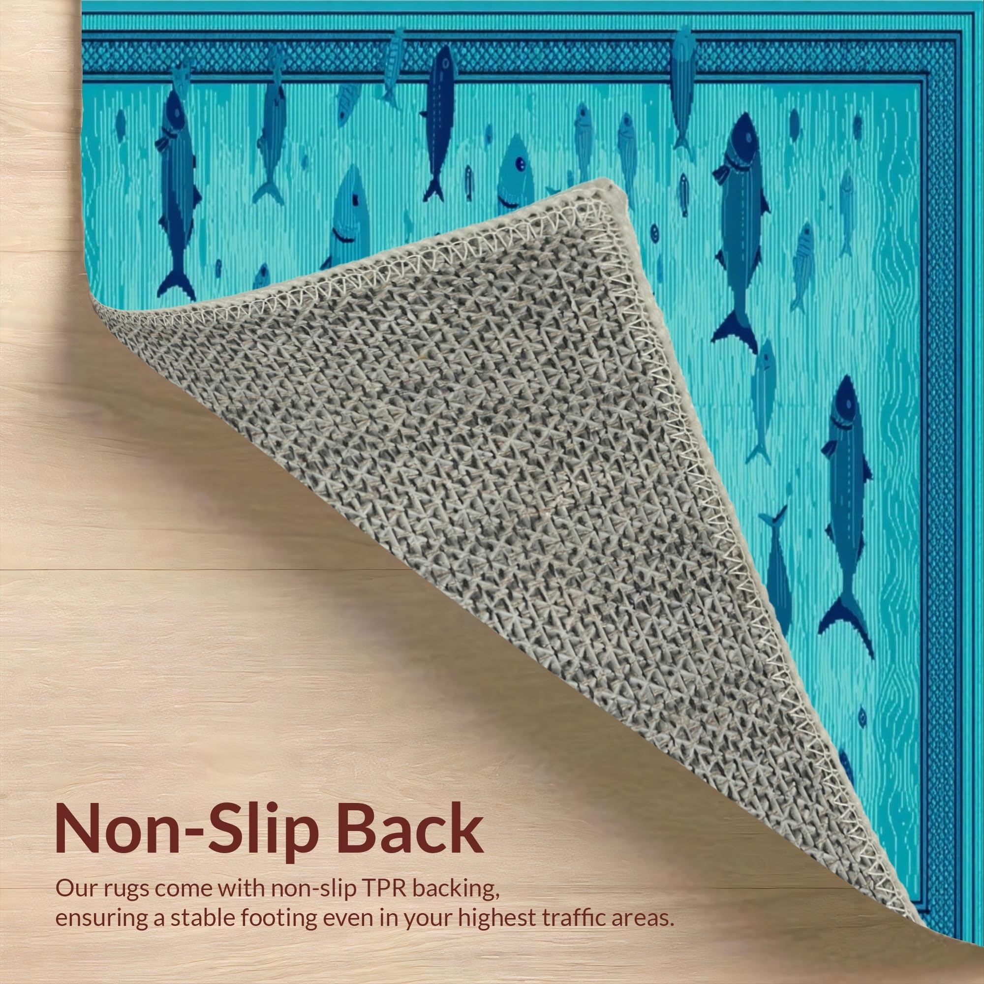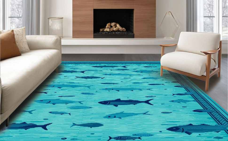 Ultra Soft Area Rug, Non Slip, Stain Resistant, Washable Area Rugs for Living Room, Bedroom, Coastal Inspired Fish Motif(Blue) Overview: