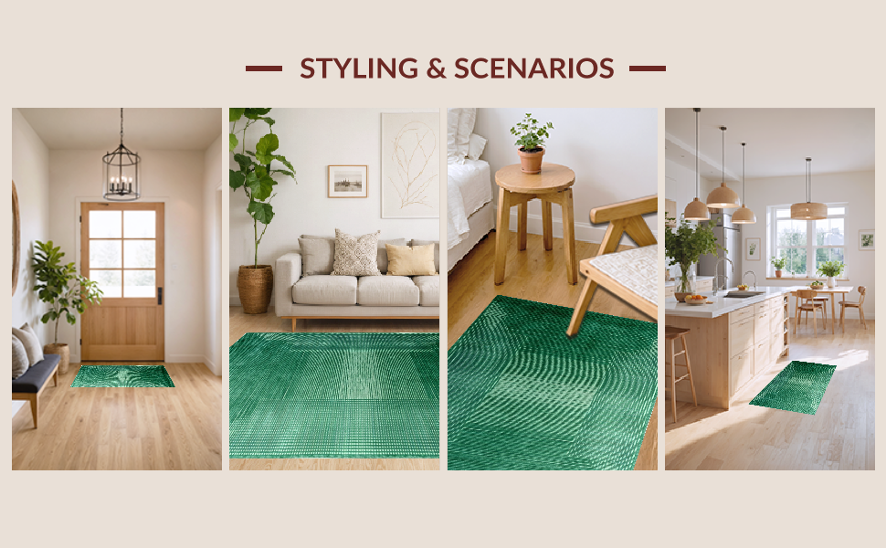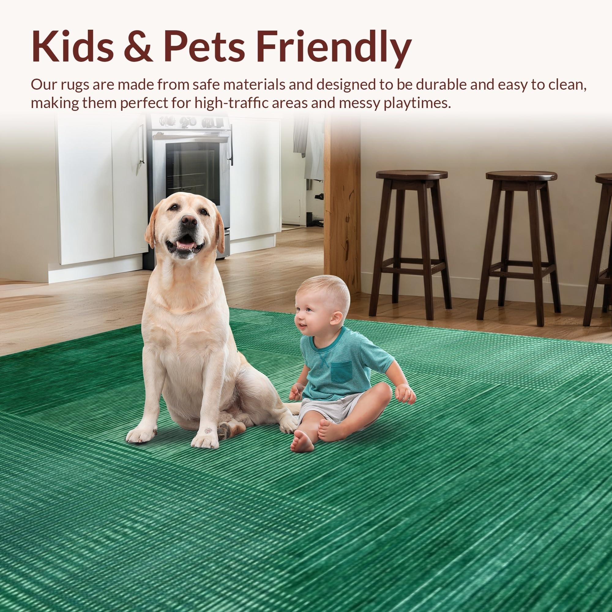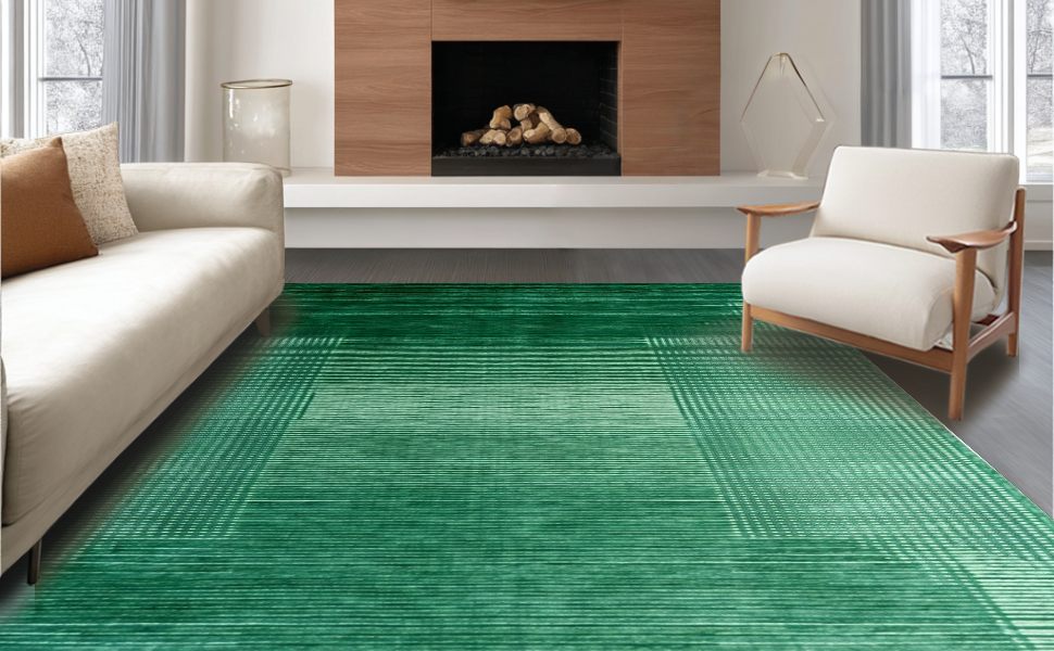Ultra Soft Area Rug, Non Slip, Stain Resistant, Washable Area Rugs for Living Room, Bedroom, Coastal Inspired Geometric Aesthetic(Green) Overview: