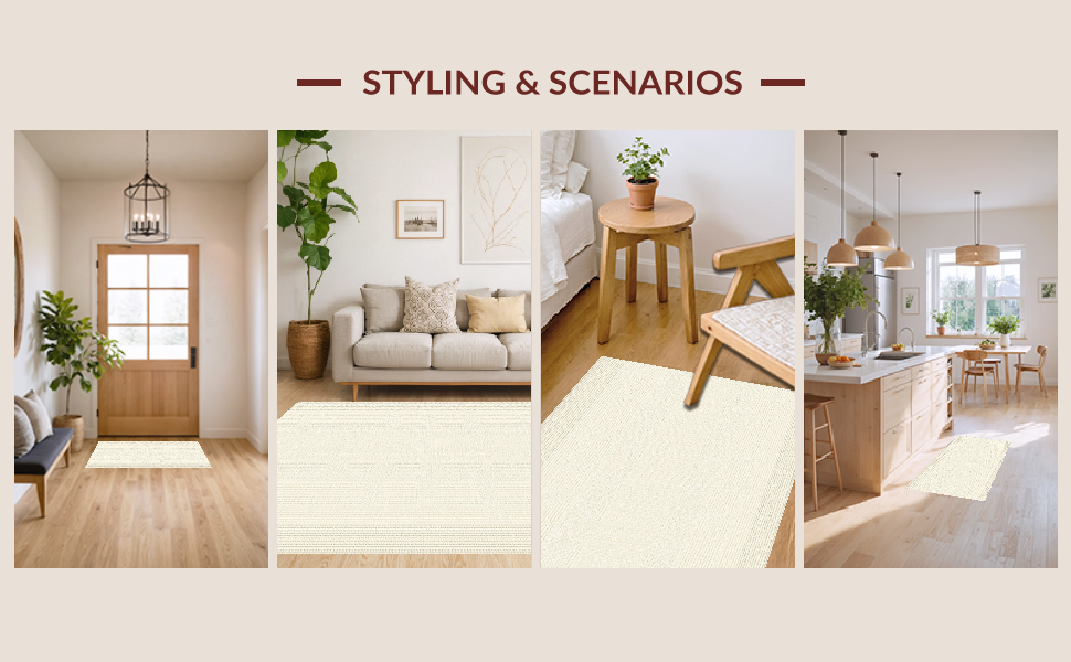 Ultra Soft Area Rug, Non Slip, Stain Resistant, Washable Area Rugs for Living Room, Bedroom, Coastal Inspired Neutral Aesthetic(Beige) Overview: