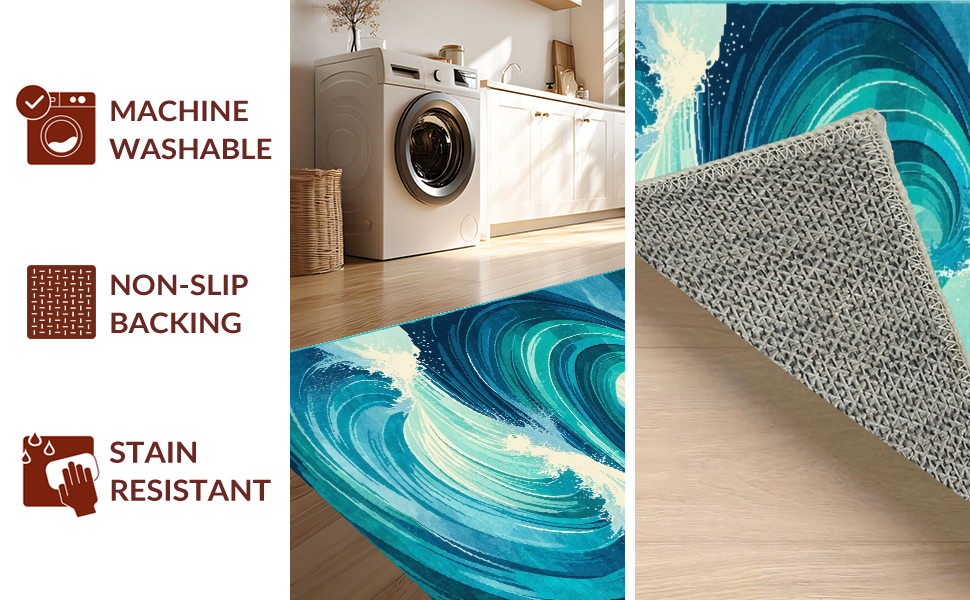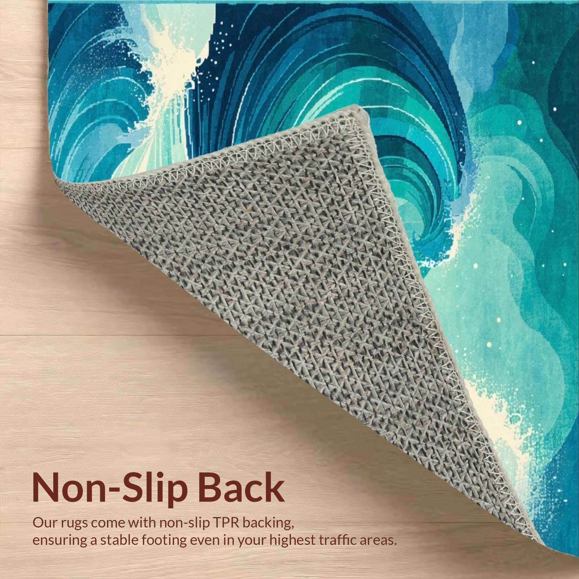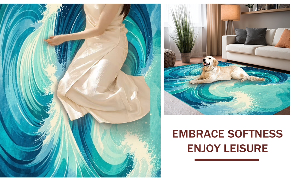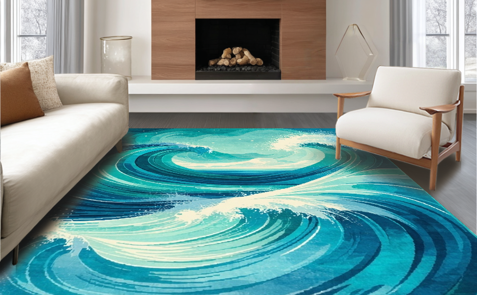 Ultra Soft Area Rug, Non Slip, Stain Resistant, Washable Area Rugs for Living Room, Bedroom, Coastal Inspired Ocean Wave Design(Blue) Overview: