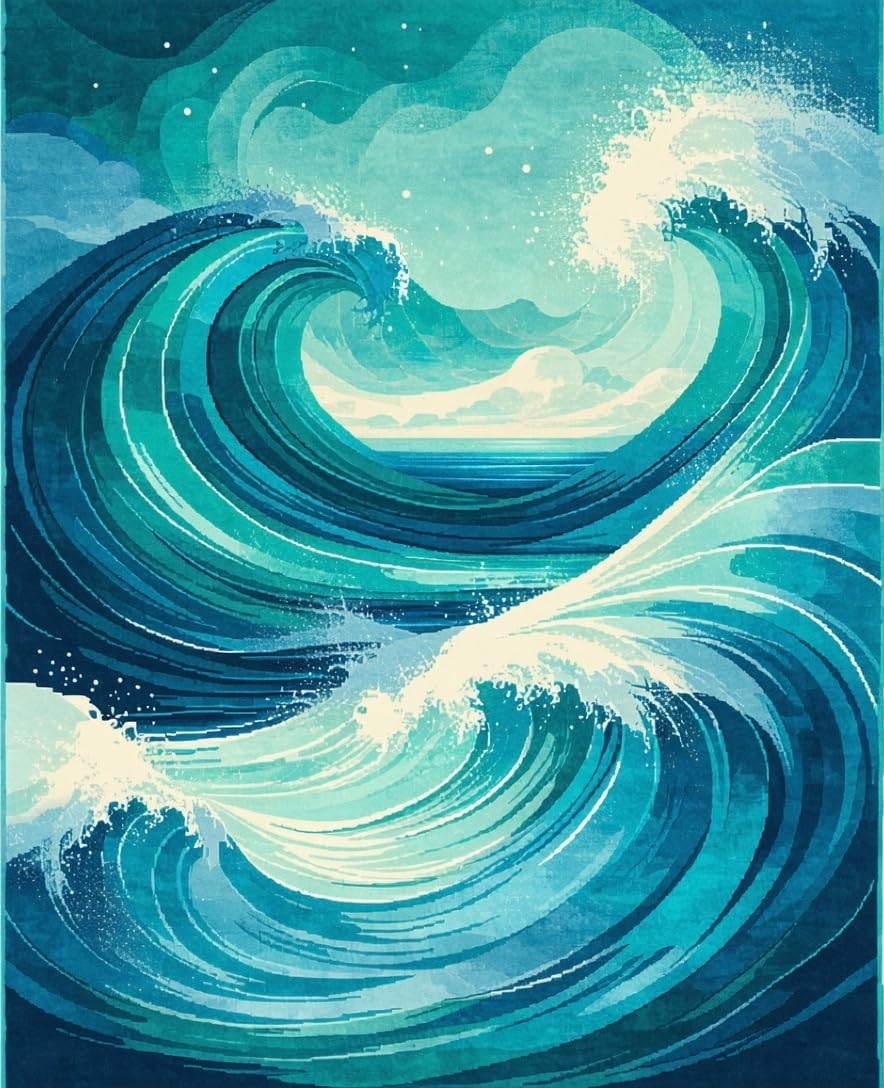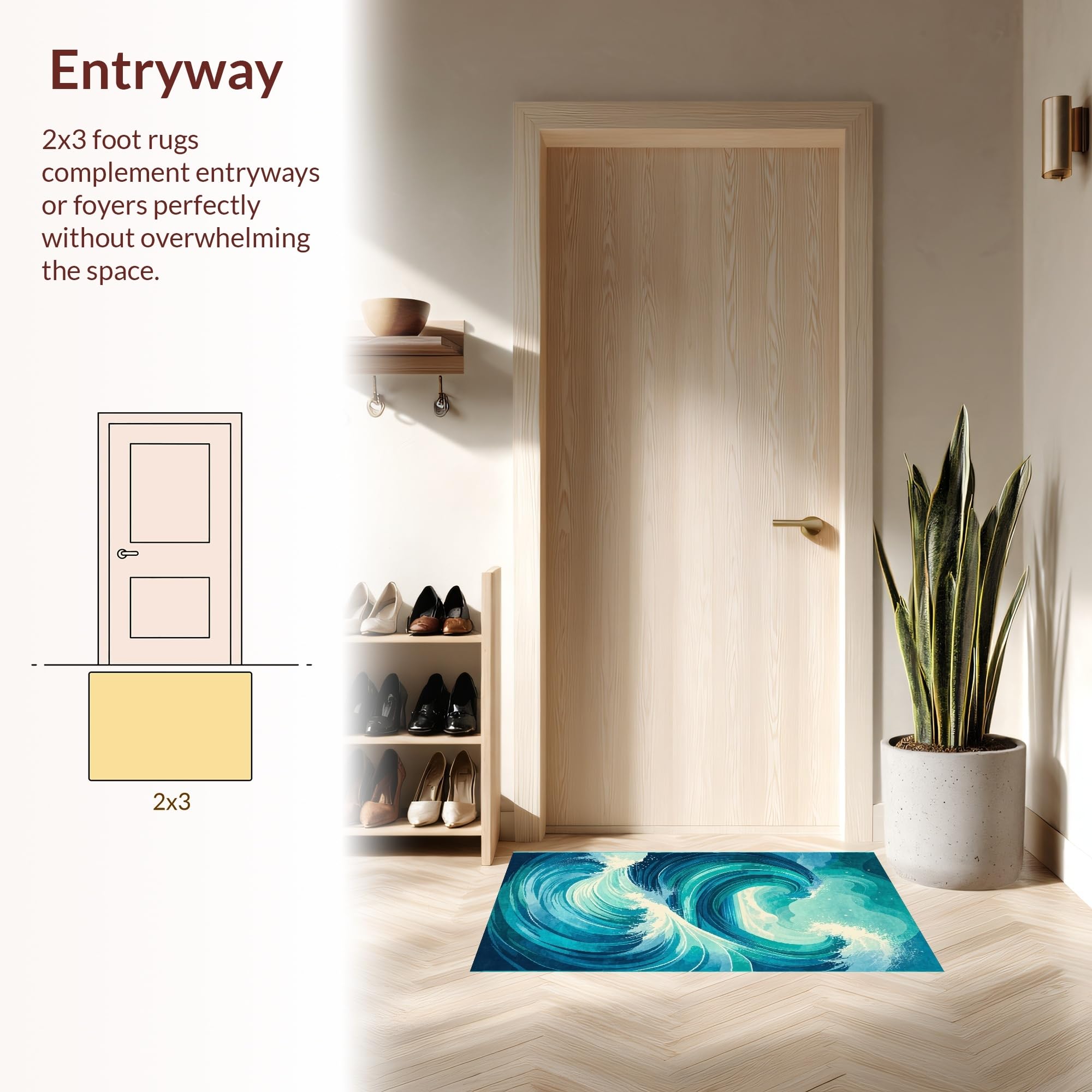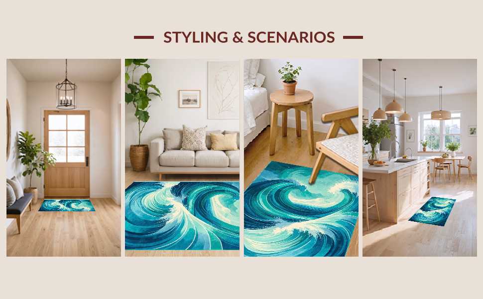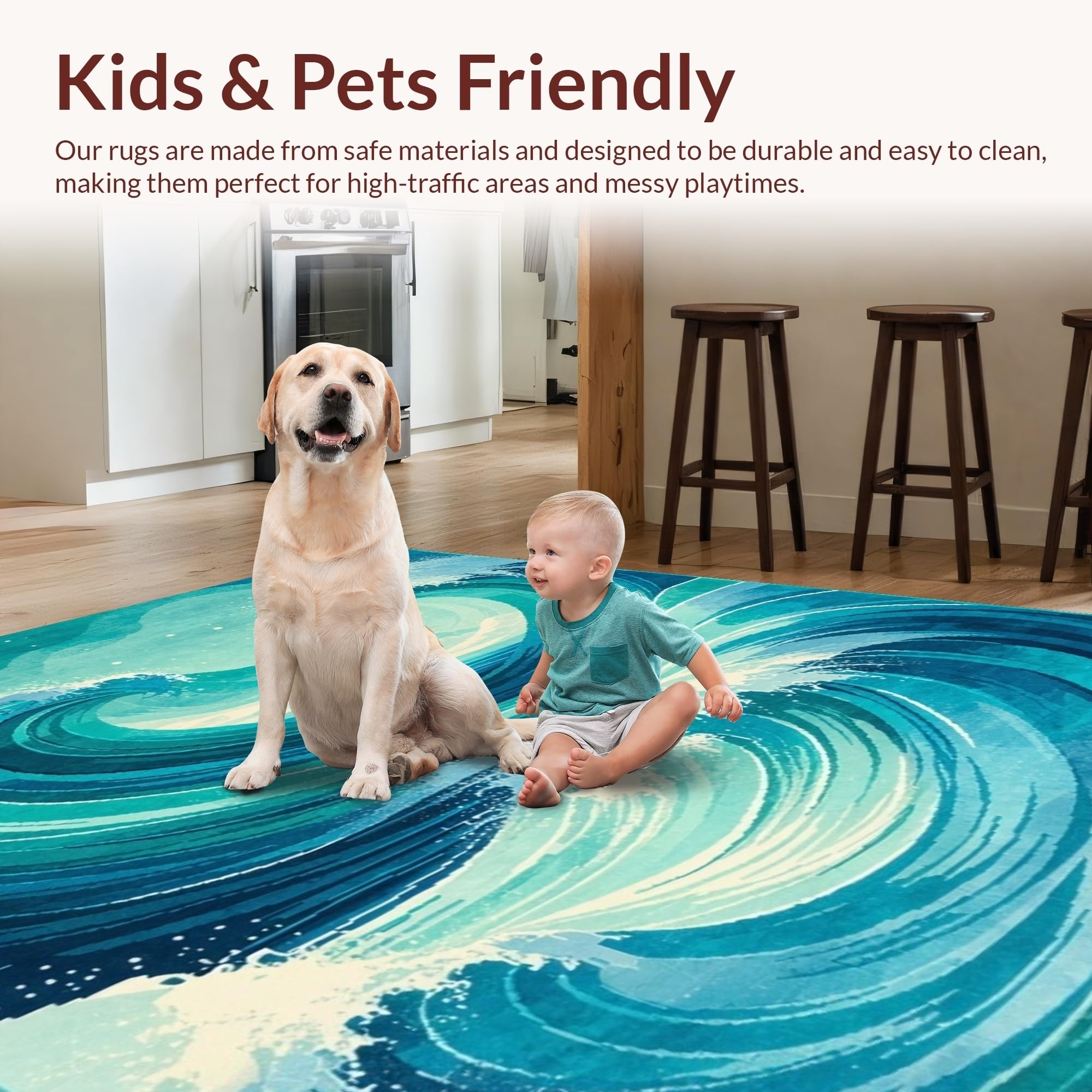 Ultra Soft Area Rug, Non Slip, Stain Resistant, Washable Area Rugs for Living Room, Bedroom, Coastal Inspired Ocean Wave Design(Blue) Overview: