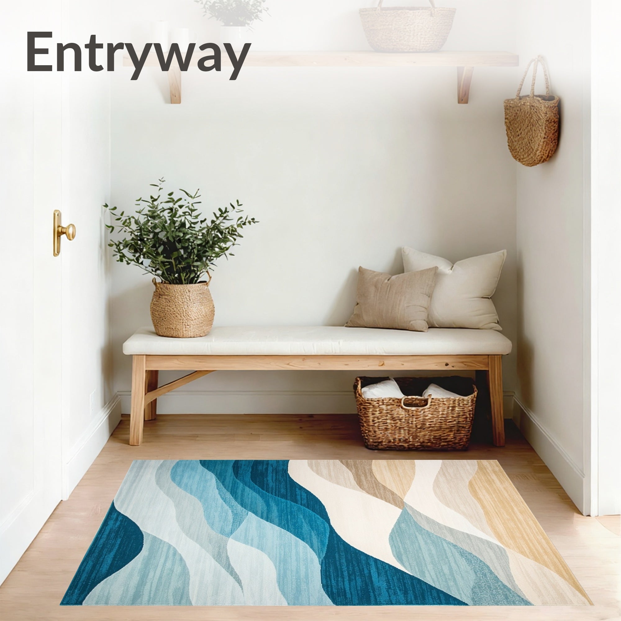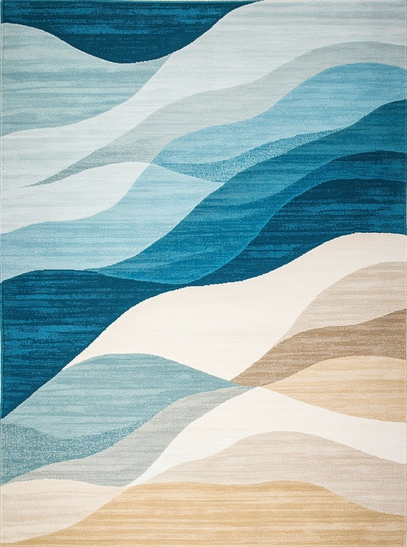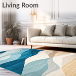 Ultra Soft Area Rug, Non Slip, Stain Resistant, Washable Area Rugs for Living Room, Bedroom, Coastal Inspired Patio Country Area in Blue and Sand Hues(Blue) Overview: