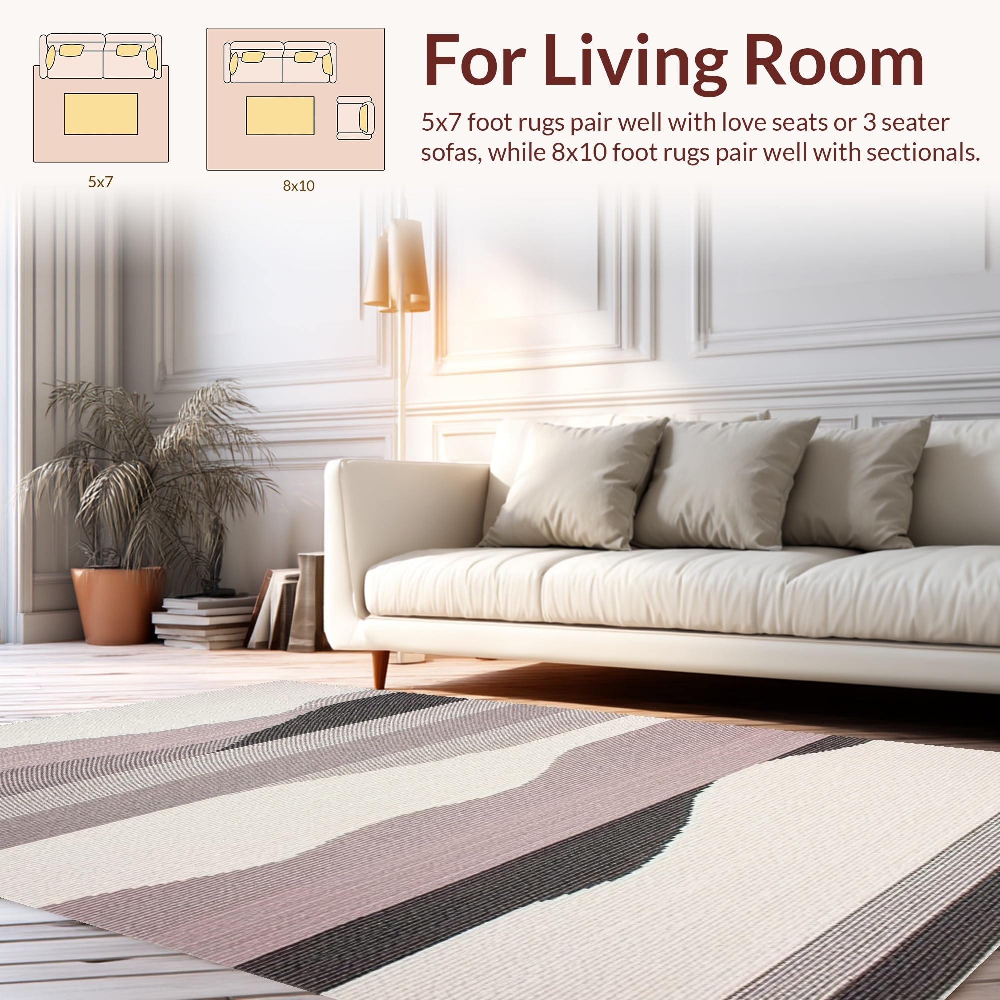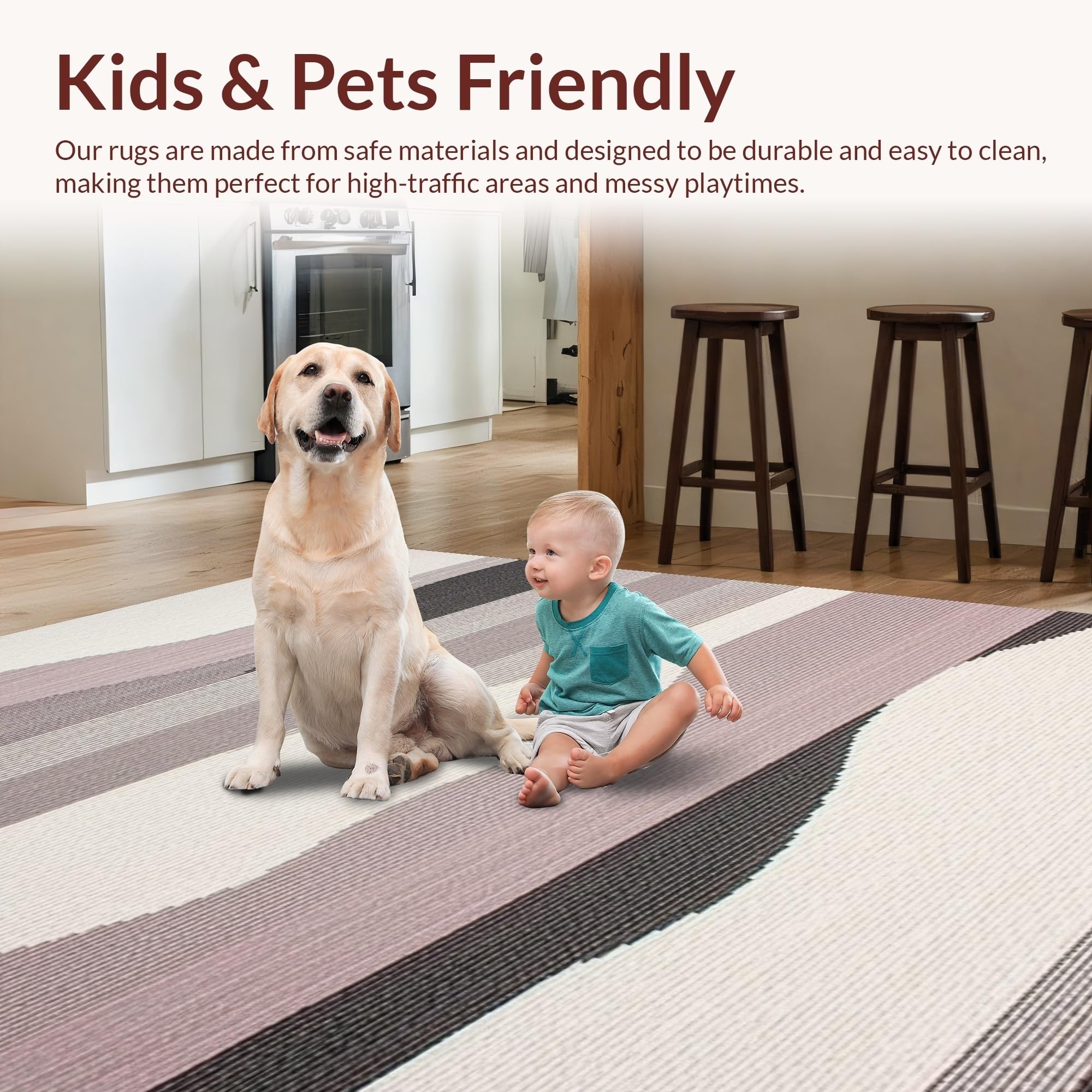 Ultra Soft Area Rug, Non Slip, Stain Resistant, Washable Area Rugs for Living Room, Bedroom, Coastal Inspired Stripe Aesthetic(Gray) Overview: