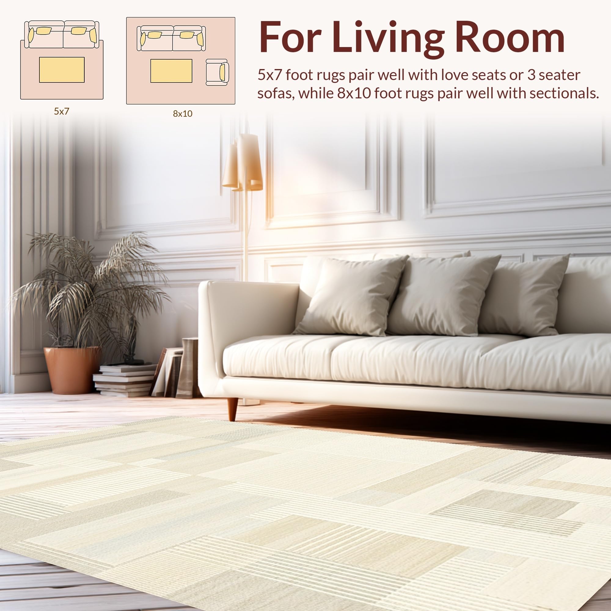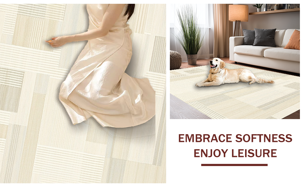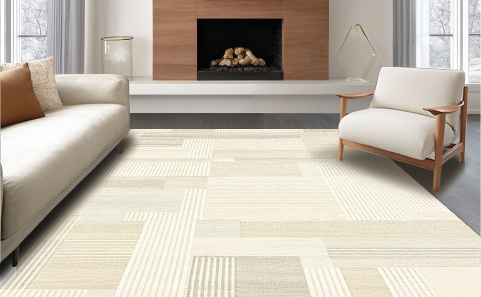 Ultra Soft Area Rug, Non Slip, Stain Resistant, Washable Area Rugs for Living Room, Bedroom, Coastal Inspired Subtle Line Art(Beige) Overview: