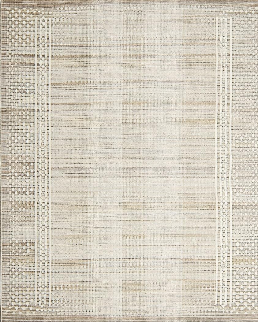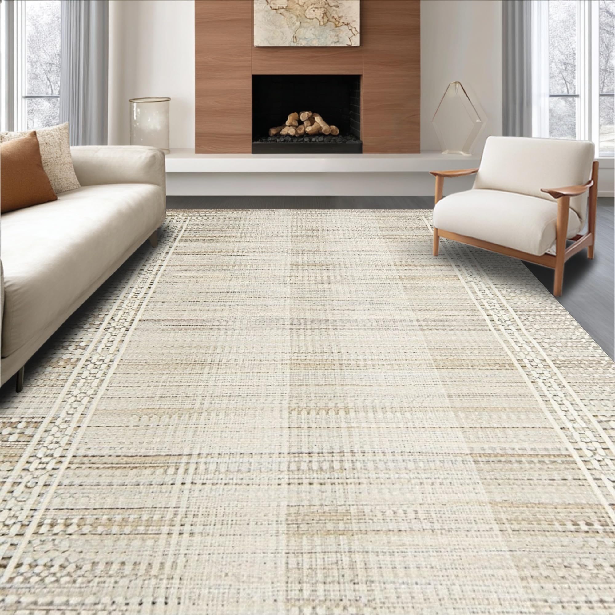 Ultra Soft Area Rug, Non Slip, Stain Resistant, Washable Area Rugs for Living Room, Bedroom, Coastal Inspired Wavy Motif(Beige) Overview: