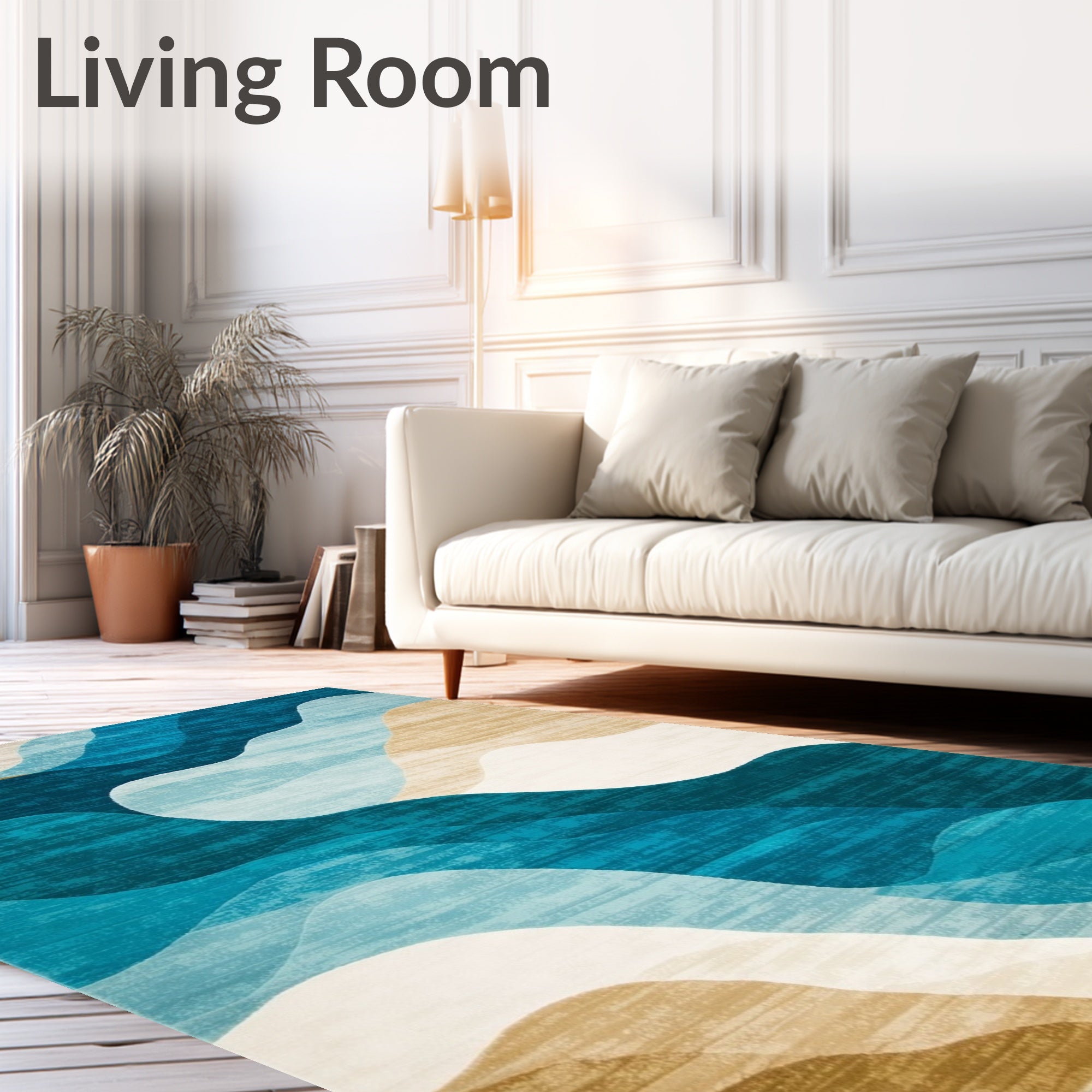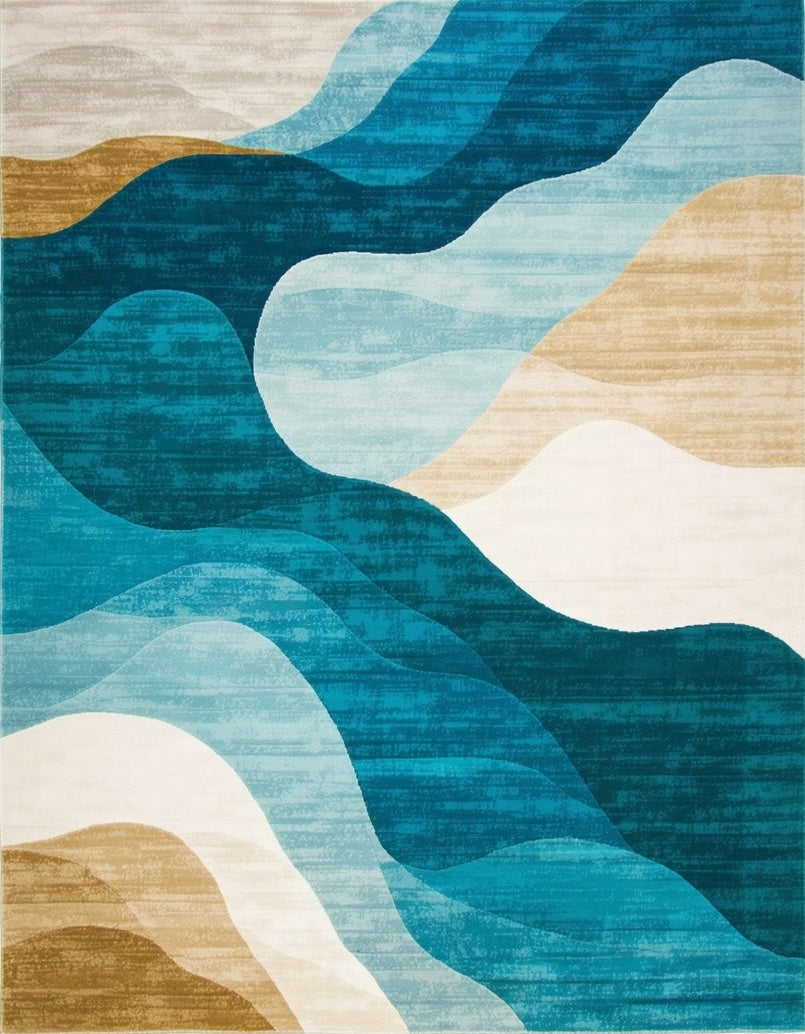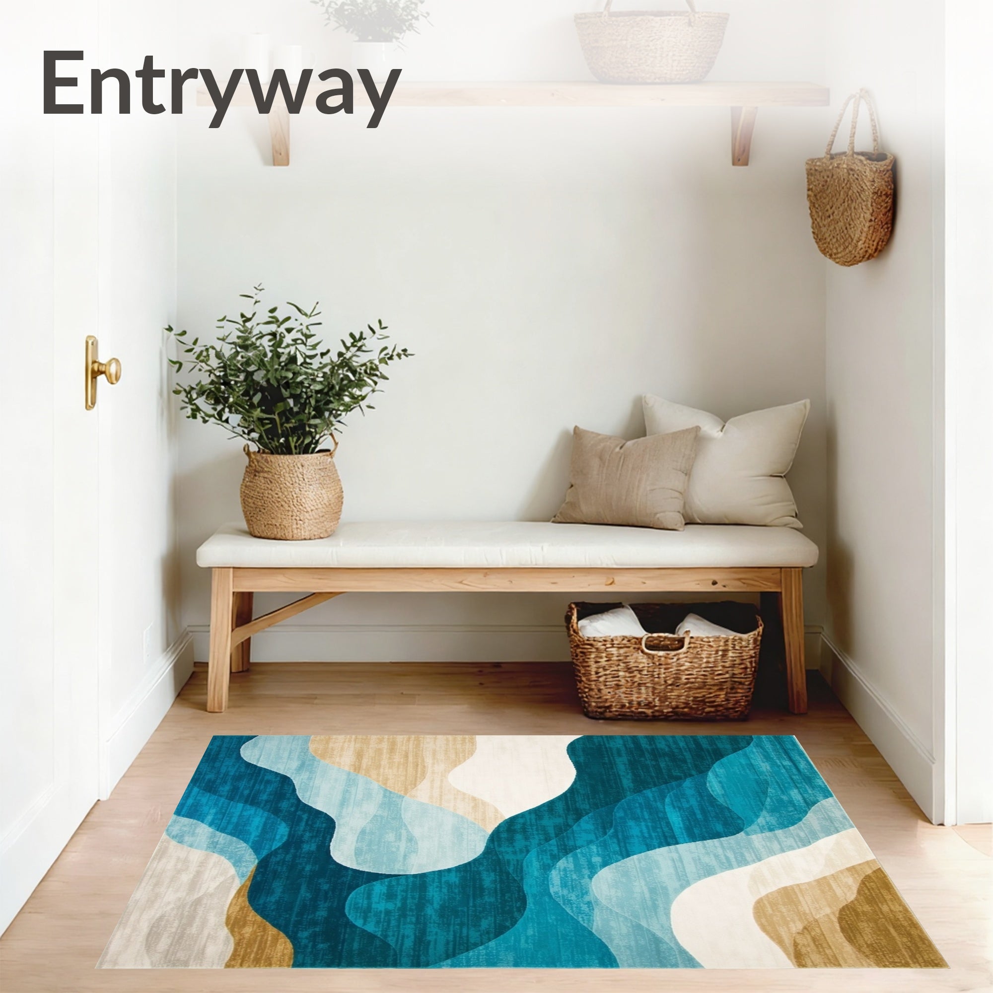 Ultra Soft Area Rug, Non Slip, Stain Resistant, Washable Area Rugs for Living Room, Bedroom, Coastal Journey Area Dark Blue Beige Wave Abstract(Blue) Overview:
