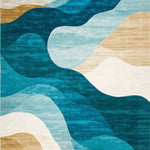 Coastal Journey Area Dark Blue Beige Wave Abstract(Blue)