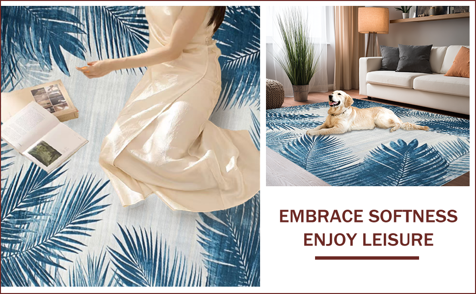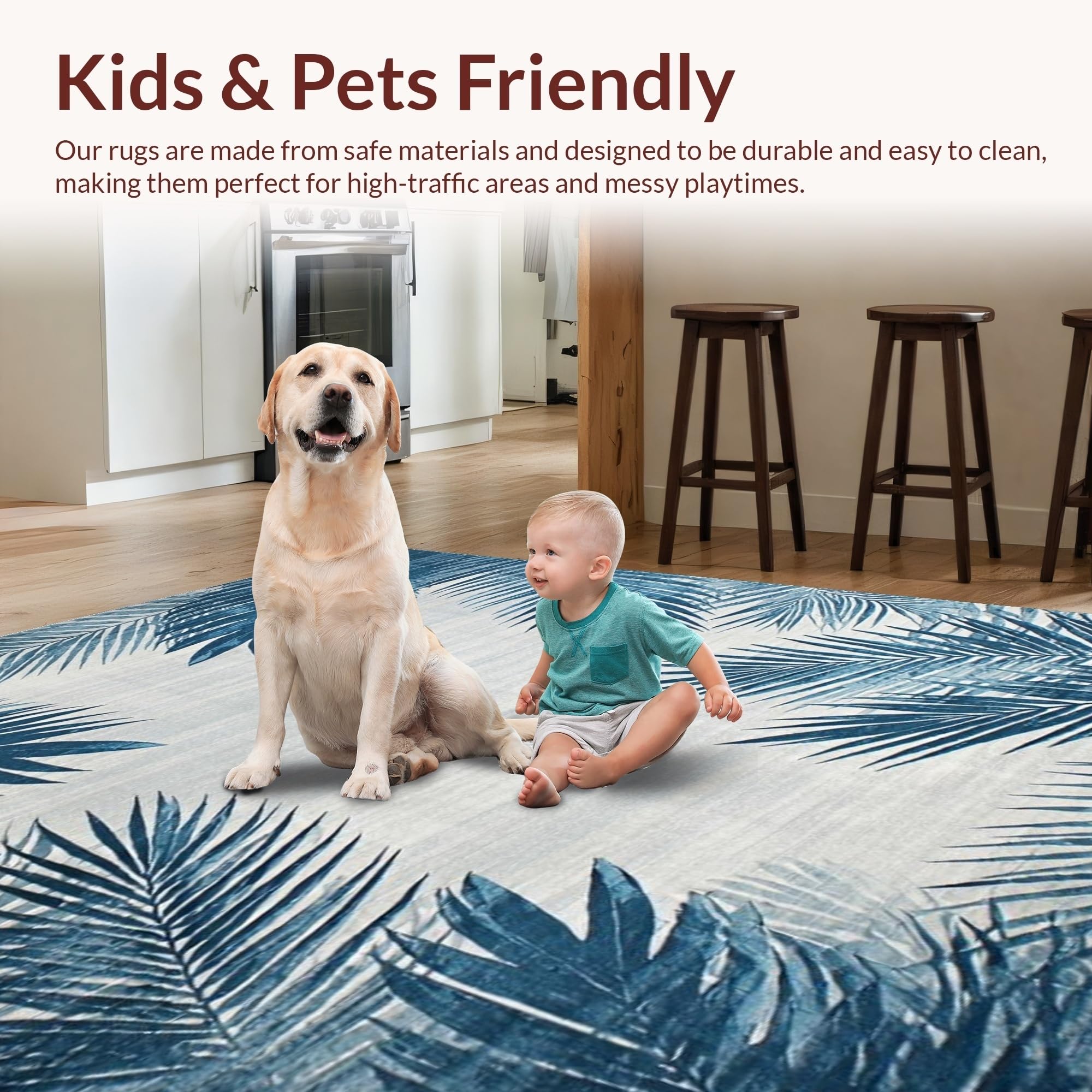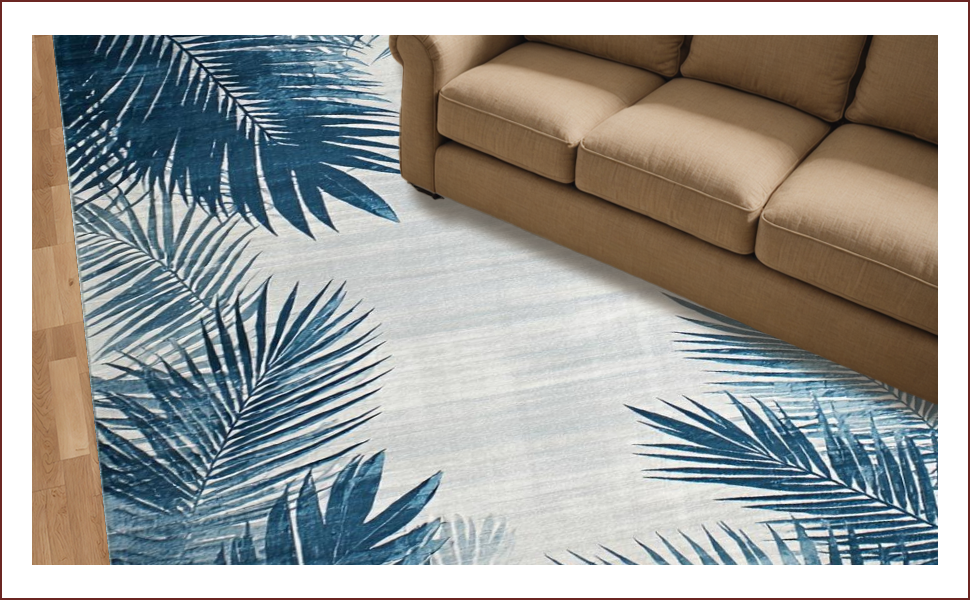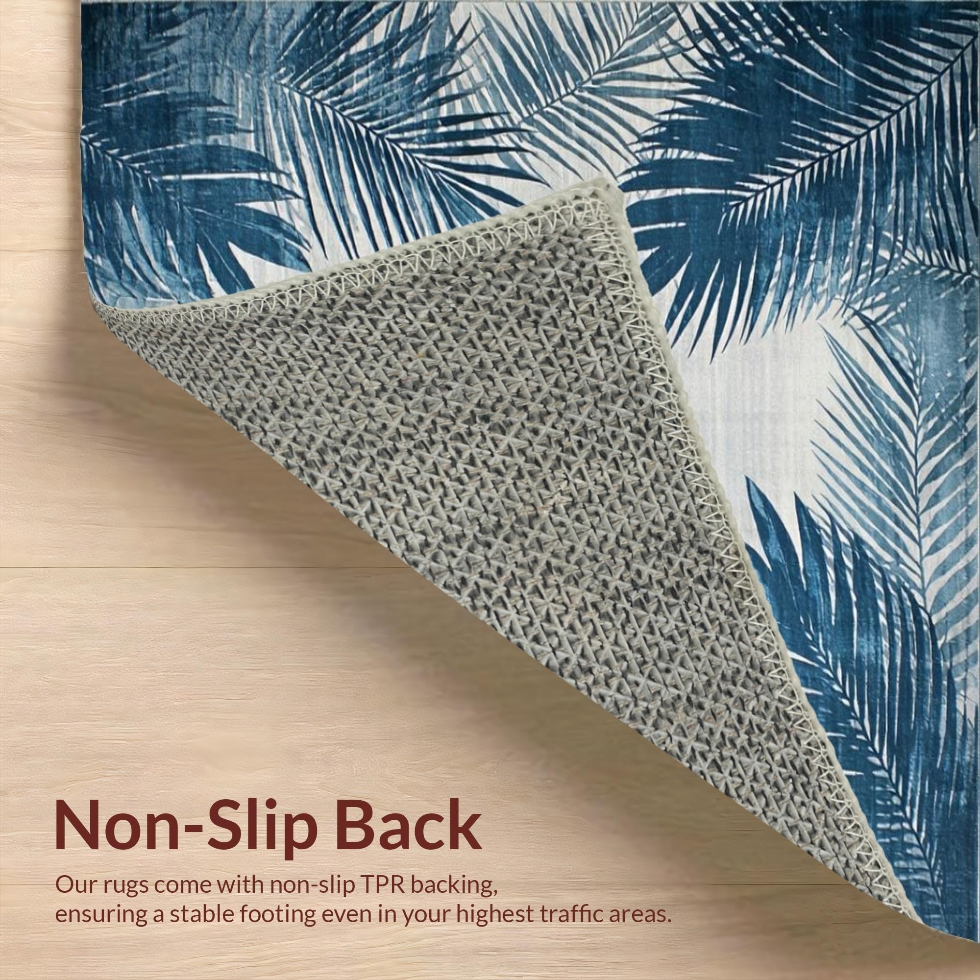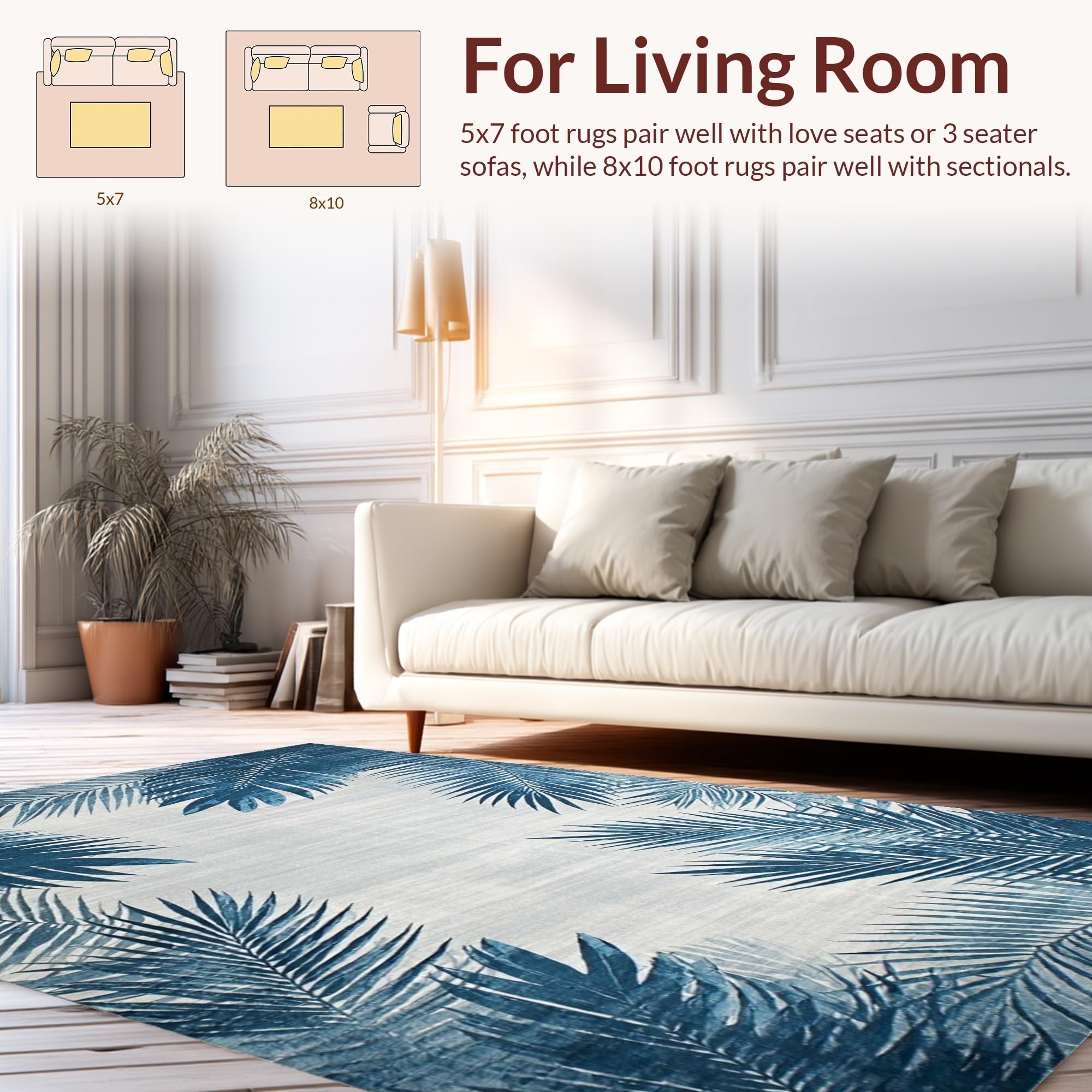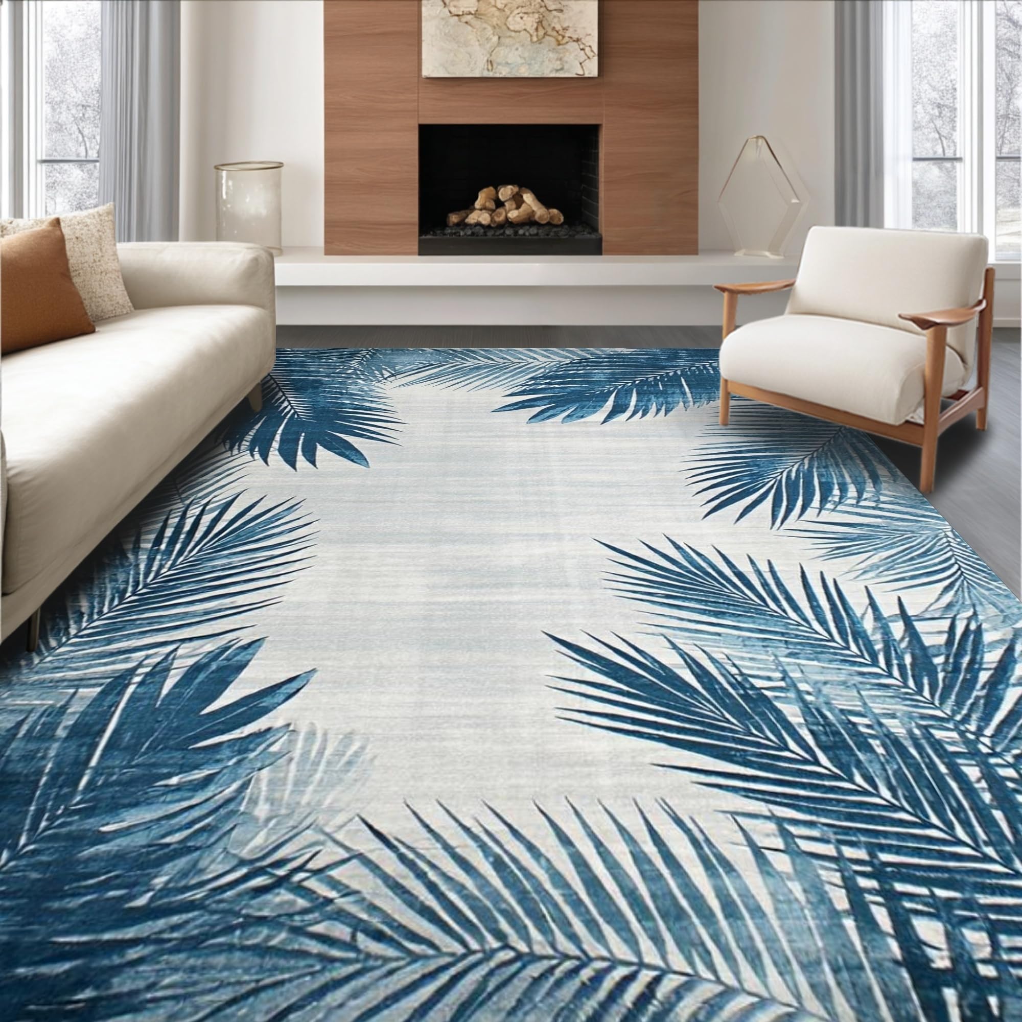 Ultra Soft Area Rug, Non Slip, Stain Resistant, Washable Area Rugs for Living Room, Bedroom, Coastal Nautical Floral Essence(Blue) Overview: