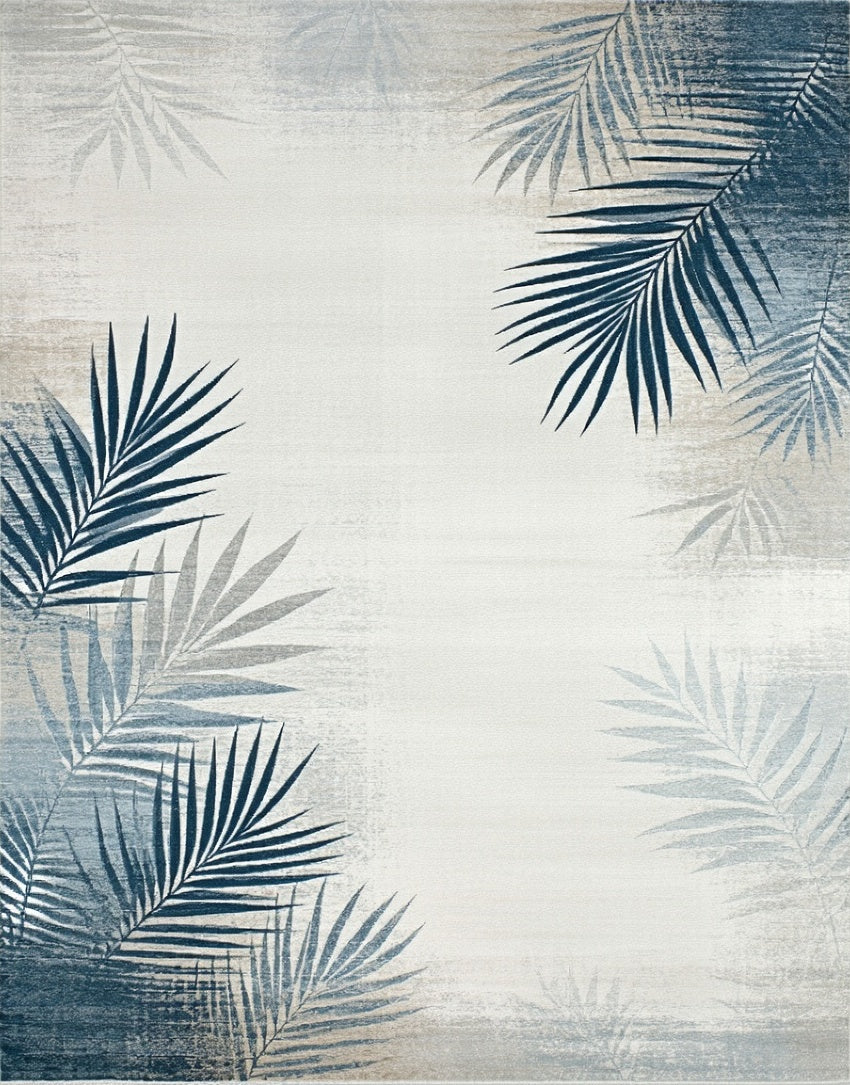 Ultra Soft Area Rug, Non Slip, Stain Resistant, Washable Area Rugs for Living Room, Bedroom, Coastal Palm Leaf Area in Blue Grey and Beige Hues(Gray) Overview: