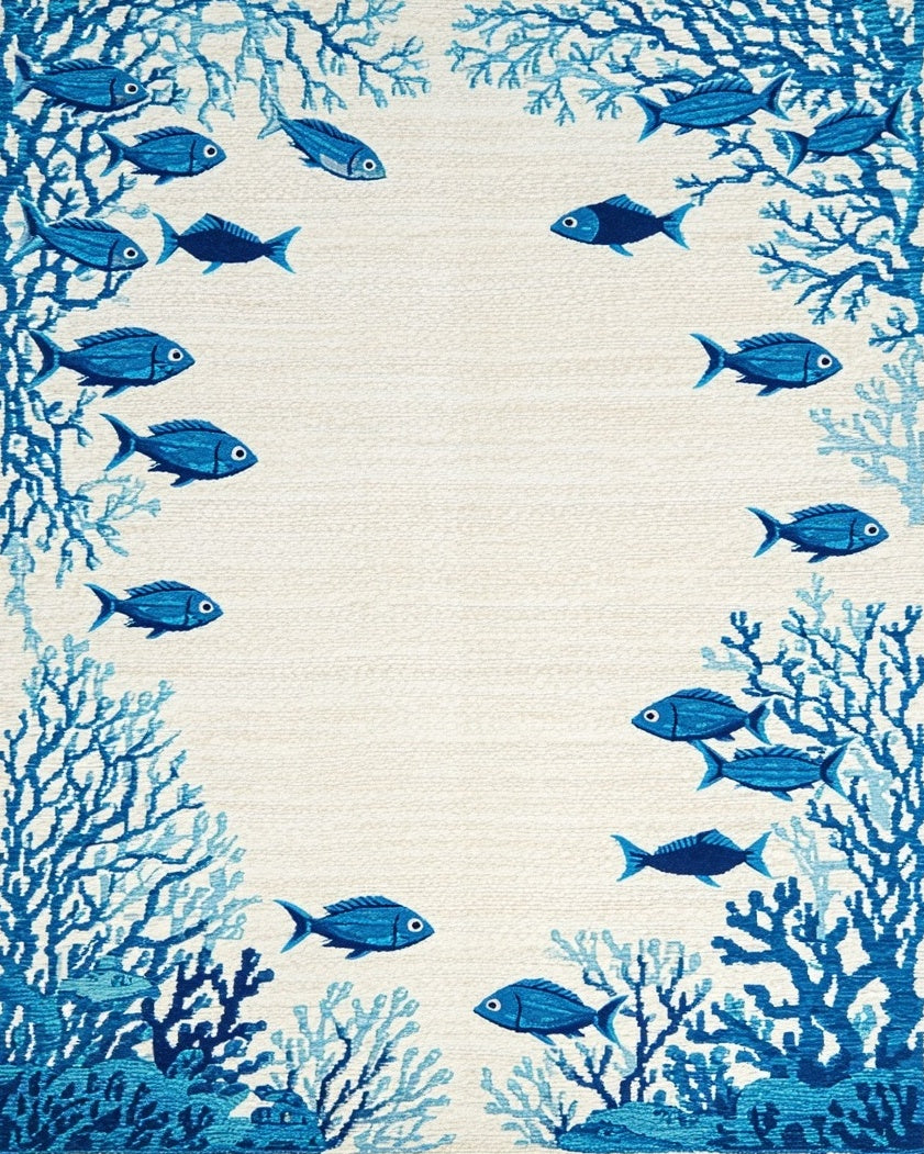 Coastal Reef Inspired Area Bright Colors Fish Beige(Blue)
