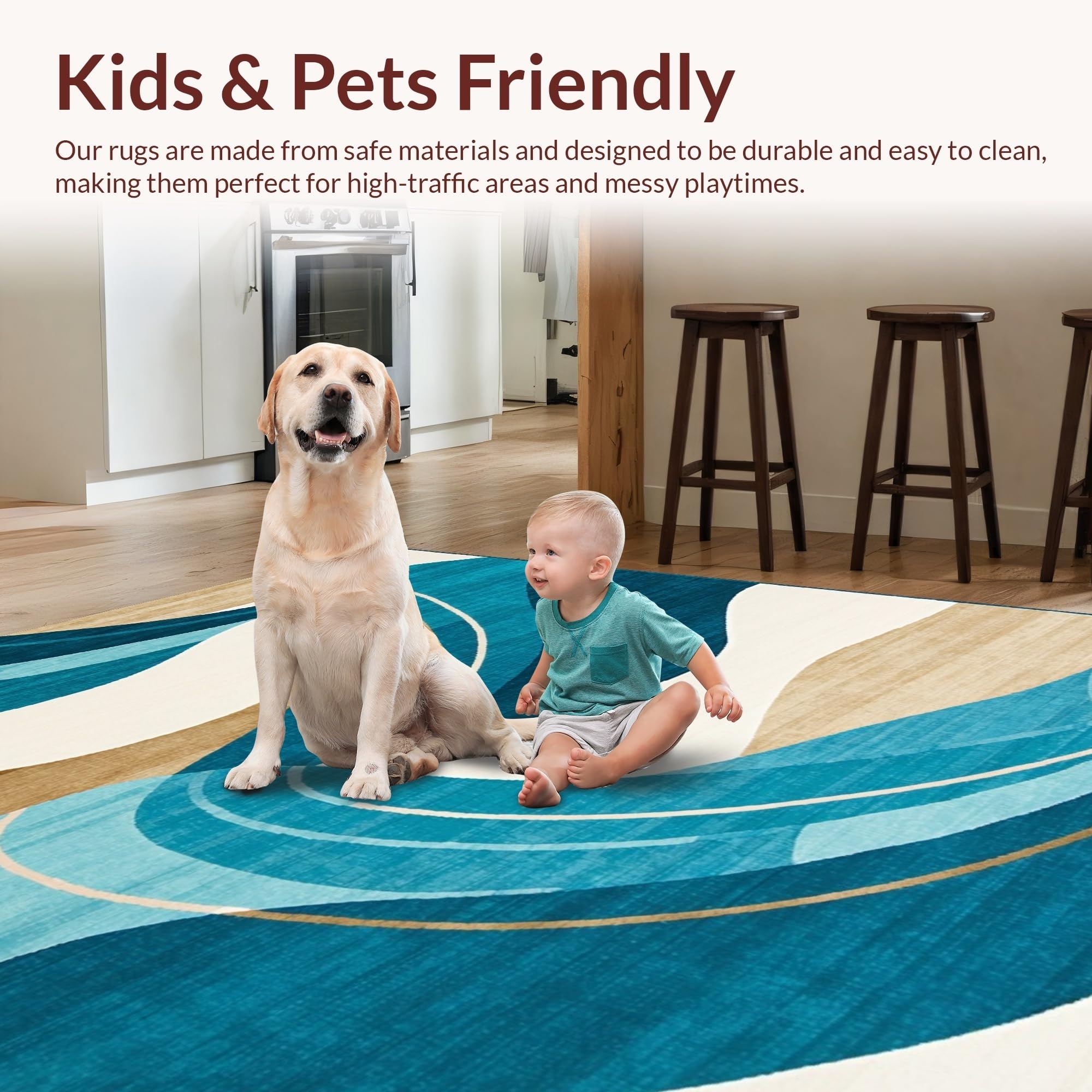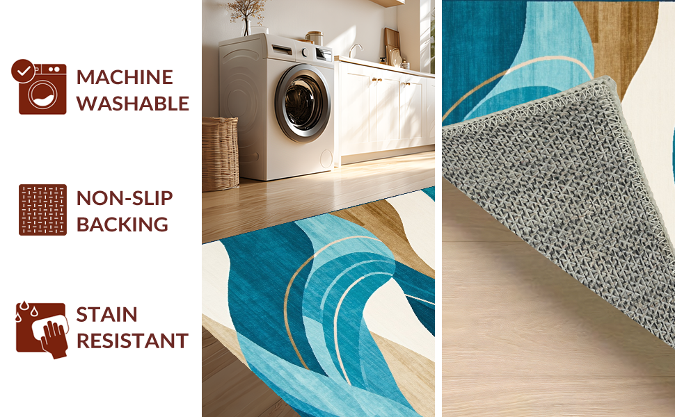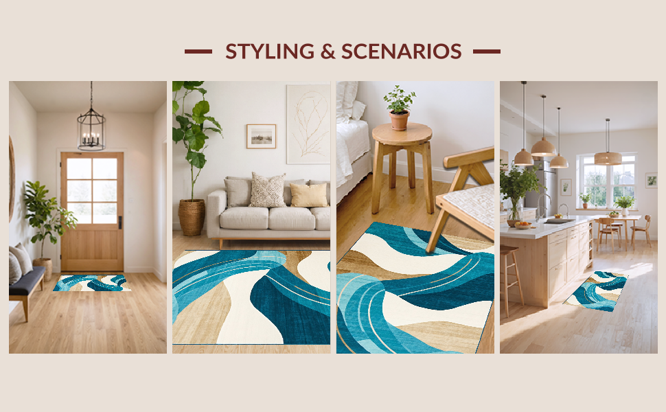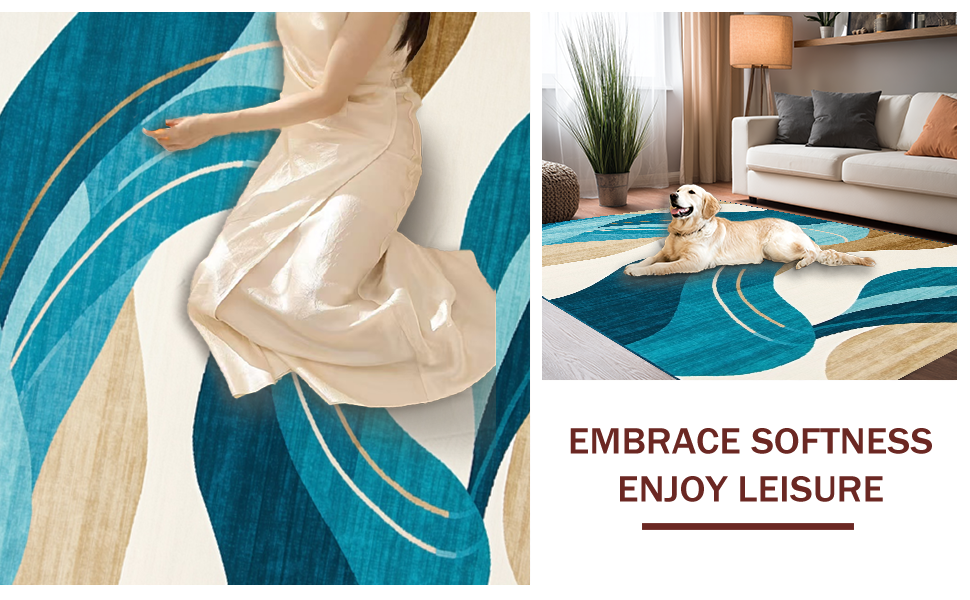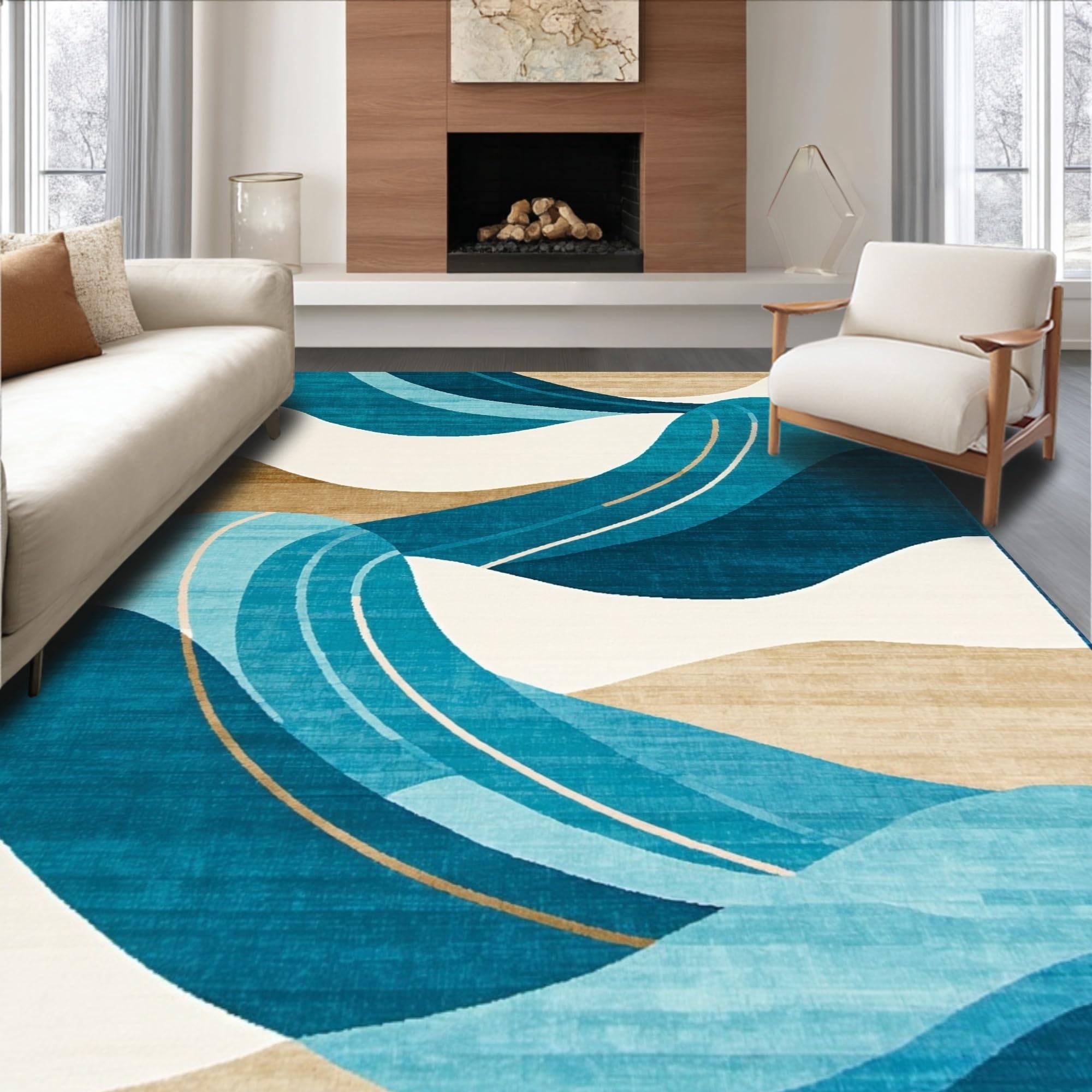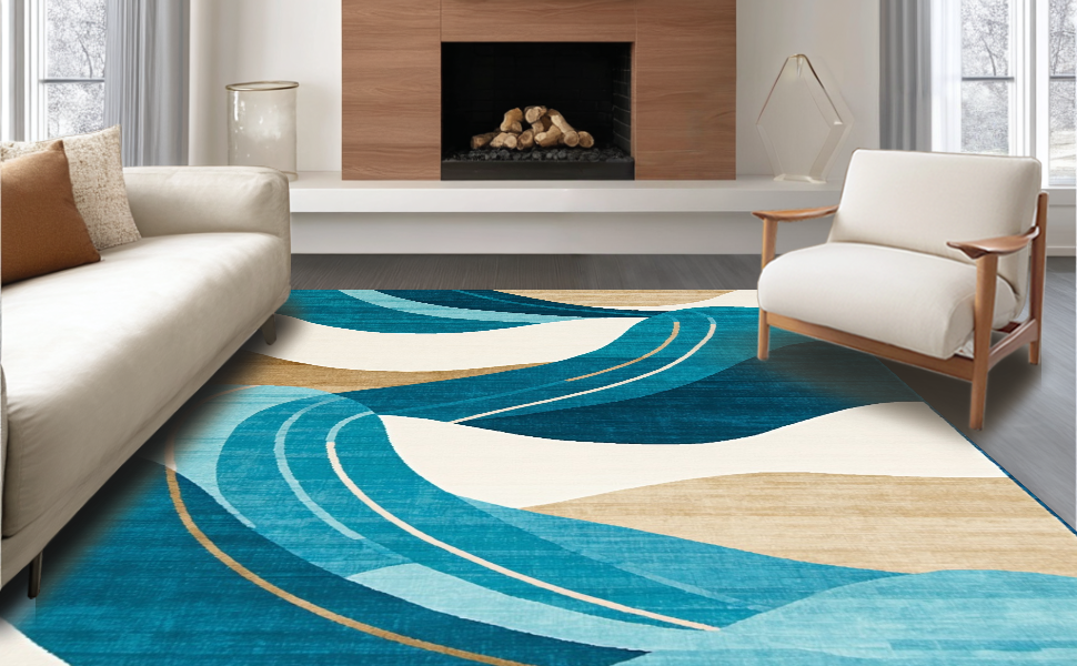 Ultra Soft Area Rug, Non Slip, Stain Resistant, Washable Area Rugs for Living Room, Bedroom, Coastal Sand Surf Inspired Decor(Blue) Overview: