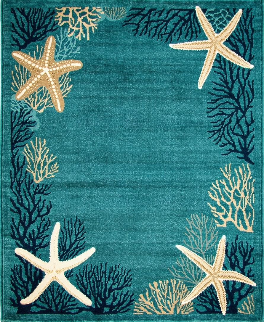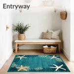 Ultra Soft Area Rug, Non Slip, Stain Resistant, Washable Area Rugs for Living Room, Bedroom, Coastal Serenity Starfish Round Accent Dark Turquoise Mocha Beige(Blue) Overview: