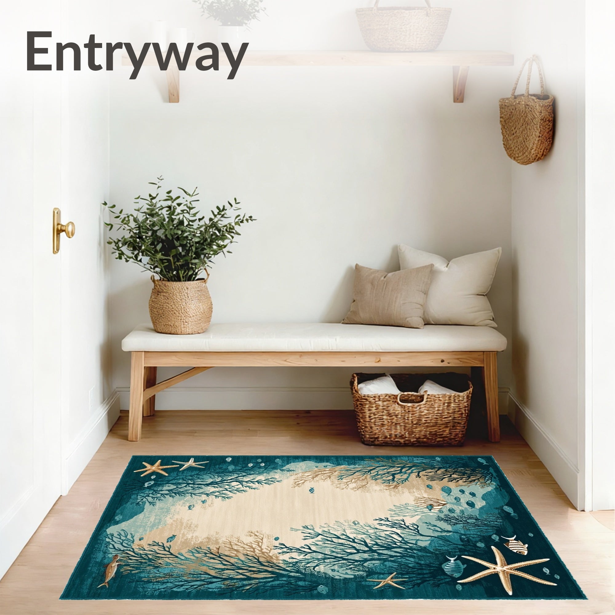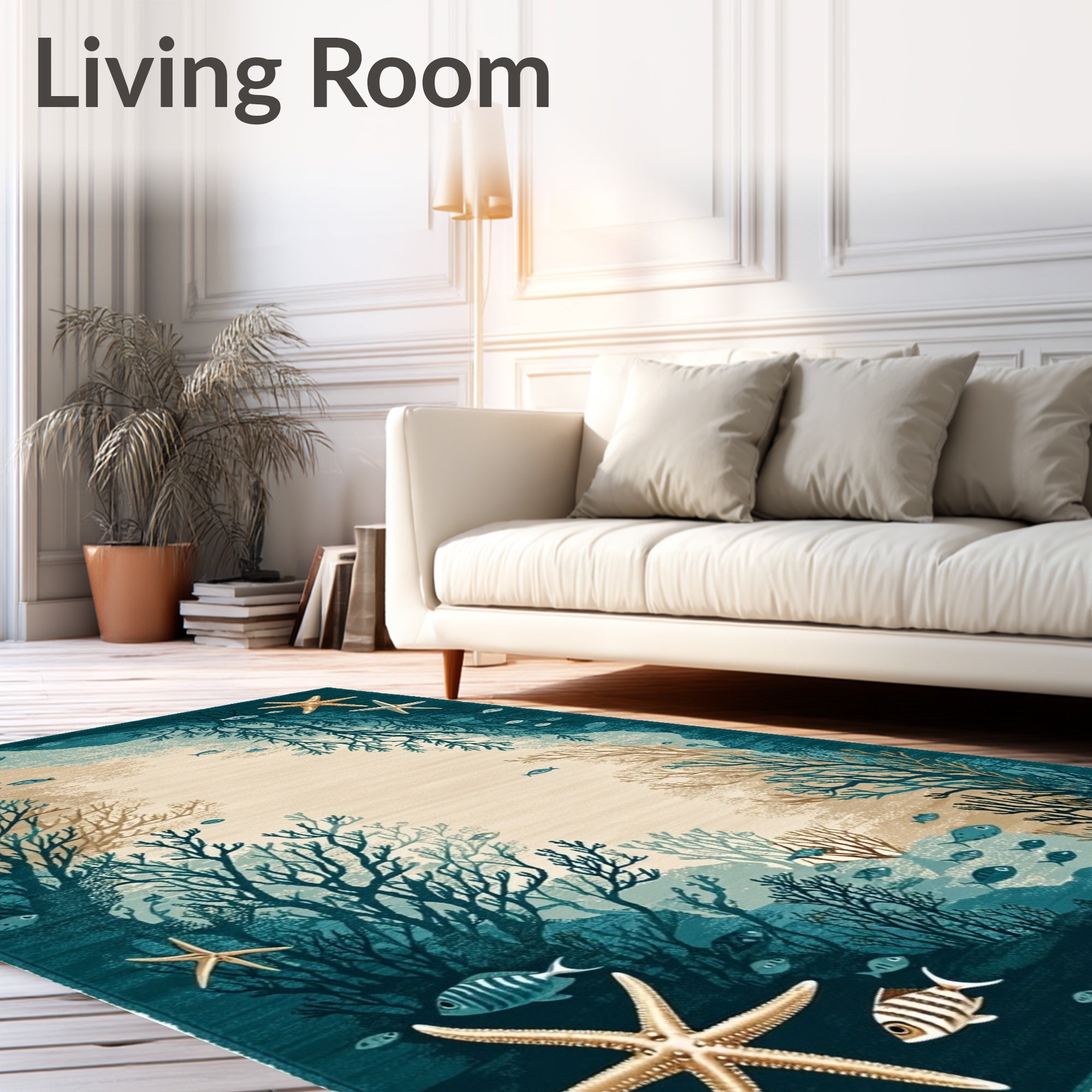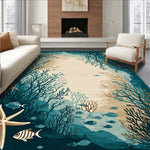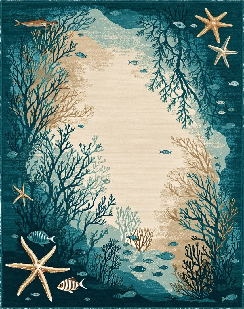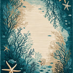 Ultra Soft Area Rug, Non Slip, Stain Resistant, Washable Area Rugs for Living Room, Bedroom, Coastal Starfish Beige Dark Turquoise Ocean Life Accent(Blue) Overview: