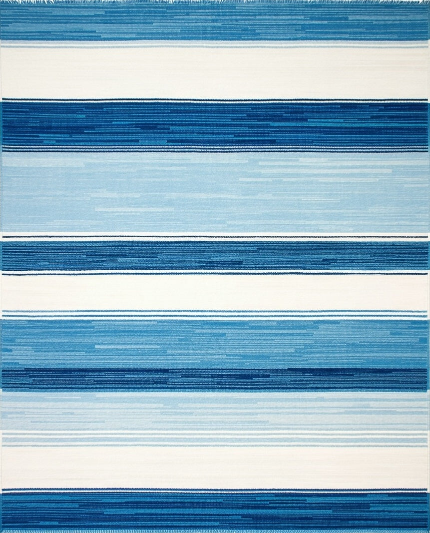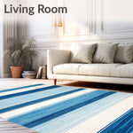 Ultra Soft Area Rug, Non Slip, Stain Resistant, Washable Area Rugs for Living Room, Bedroom, Coastal Stripe Area Rug for Balcony Easy Care Blue Ivory Carpet(Blue) Overview: