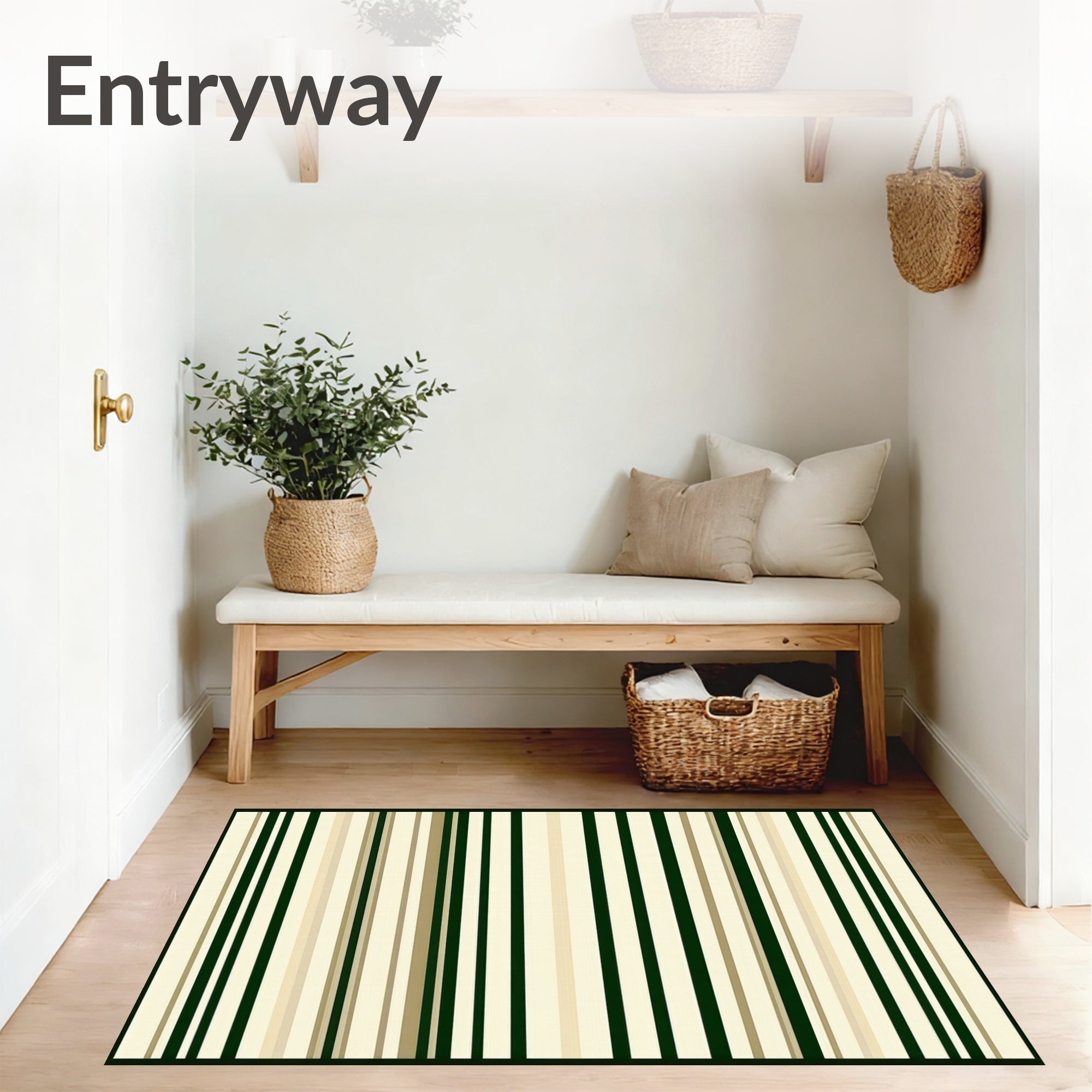 Flatwoven High Traffic Area Rug, Stripe Indoor Accent Beige Dark Green Waves, Non Slip, Stain Resistant, Washable Area Rugs for Living Room, Bedroom (Beige) Overview: