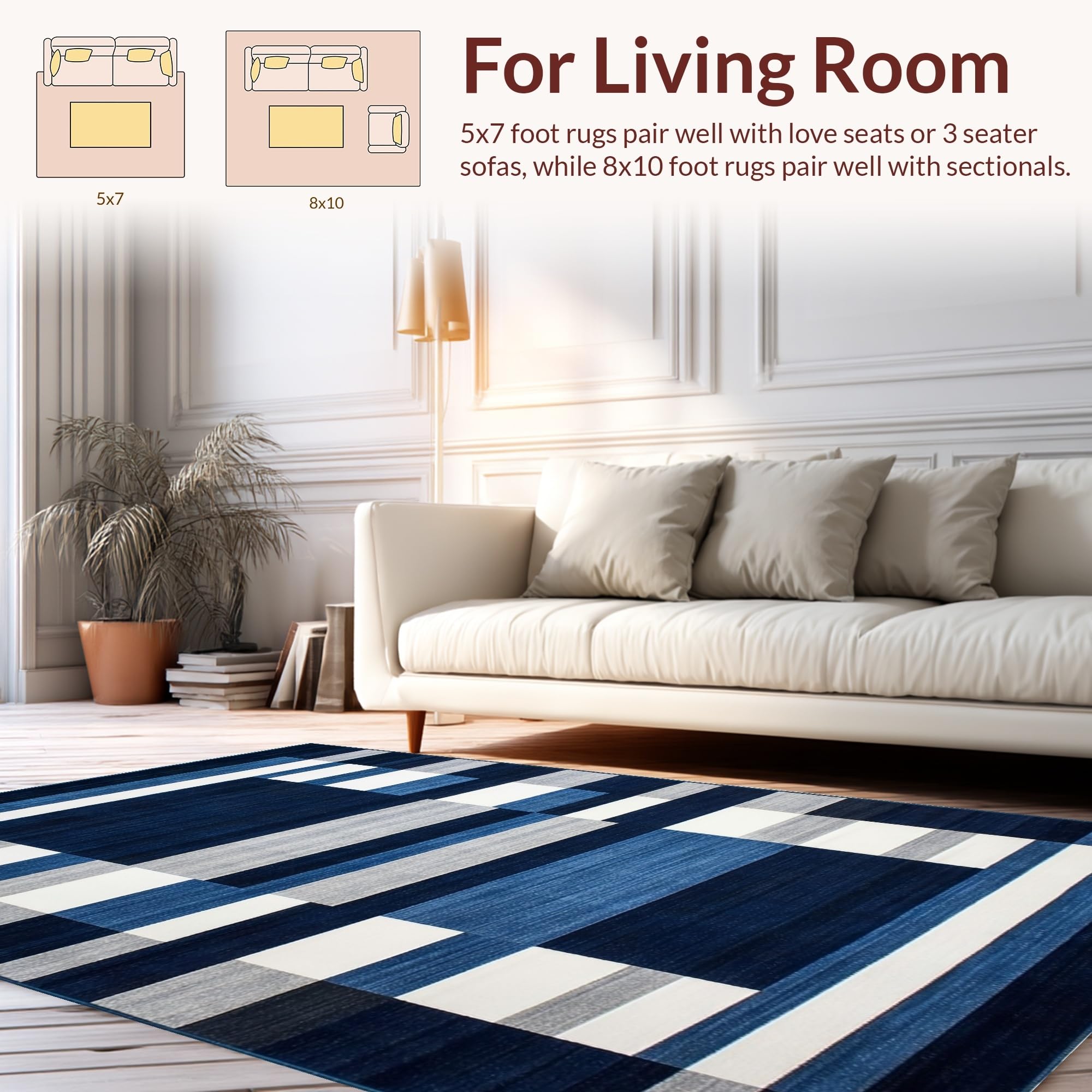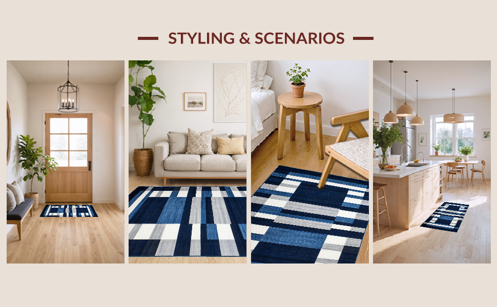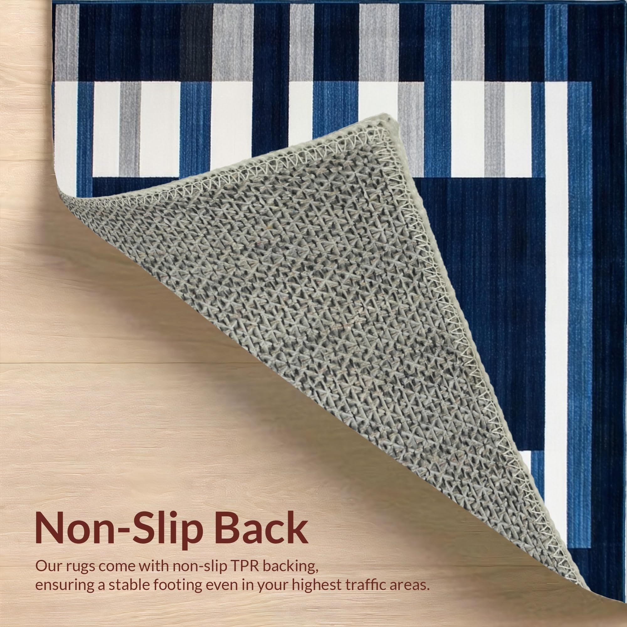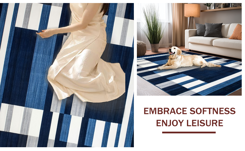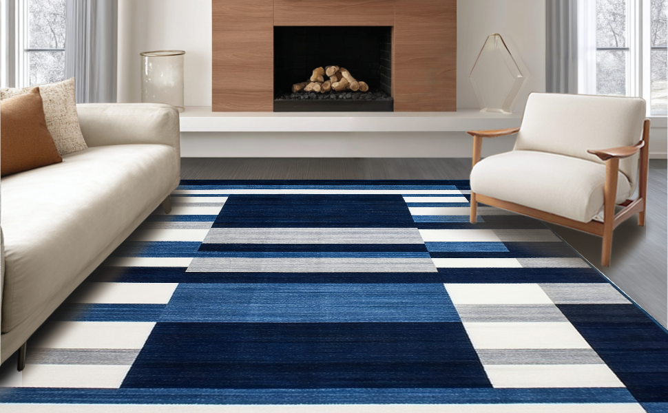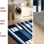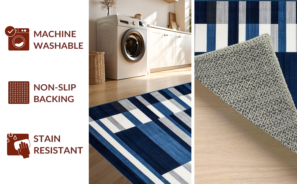 Ultra Soft Area Rug, Non Slip, Stain Resistant, Washable Area Rugs for Living Room, Bedroom, Coastal Striped Nautical Aesthetic(Blue) Overview: