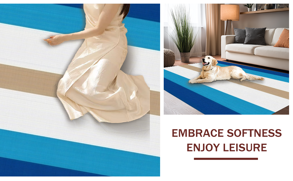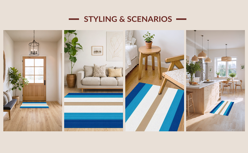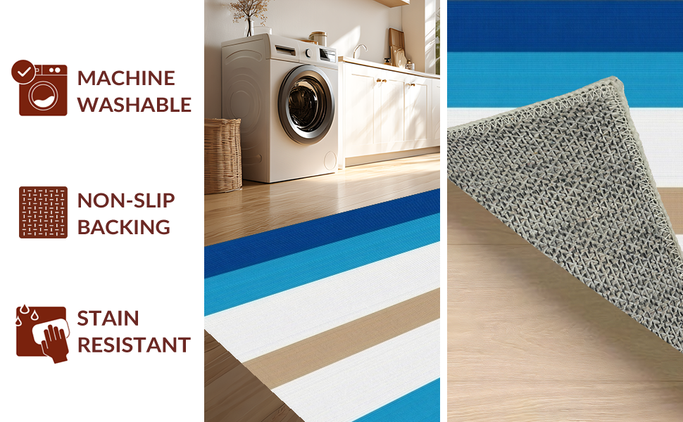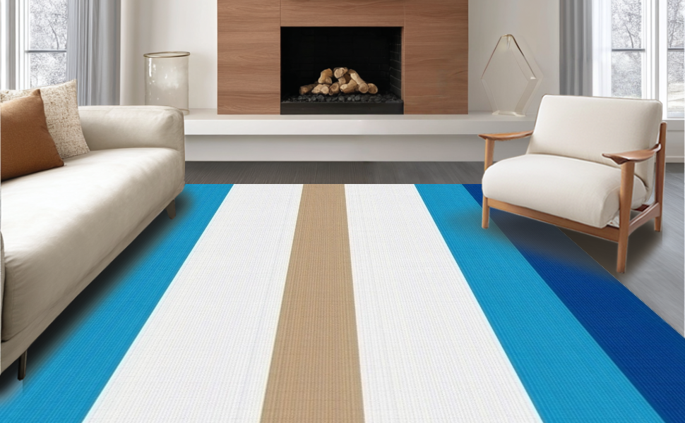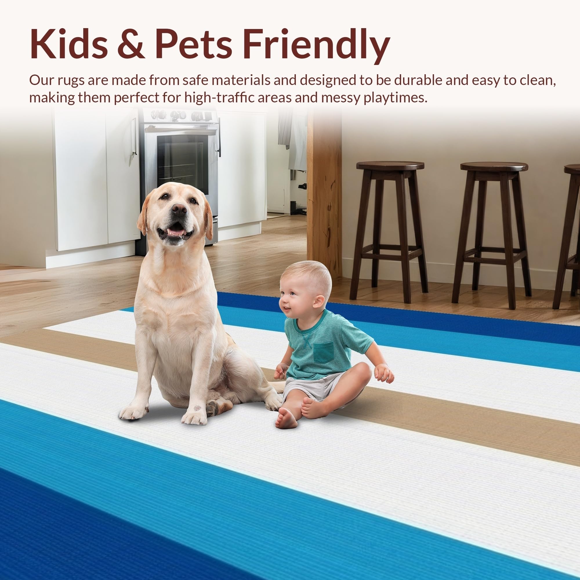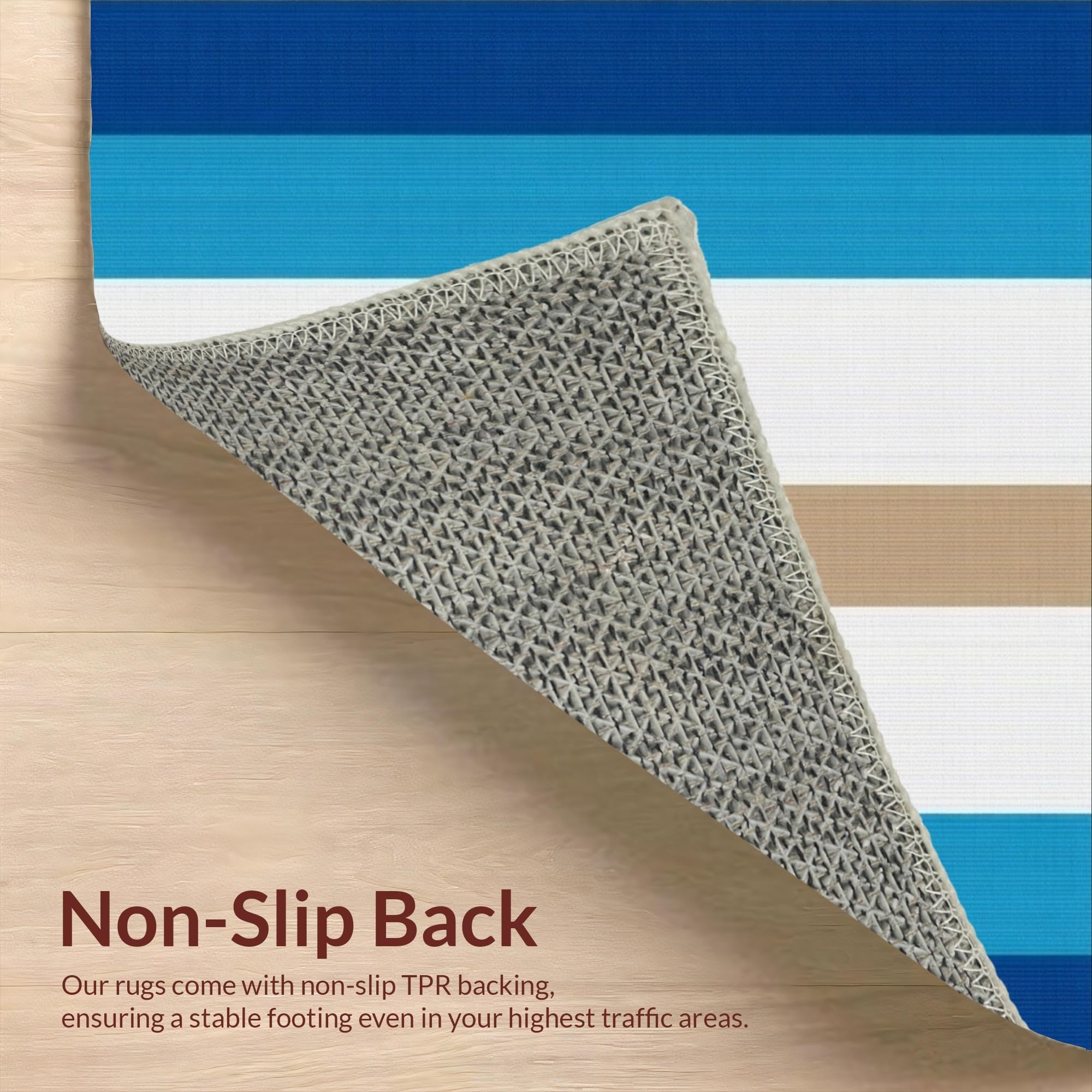 Ultra Soft Area Rug, Non Slip, Stain Resistant, Washable Area Rugs for Living Room, Bedroom, Coastal Striped Surf Theme(Blue) Overview: