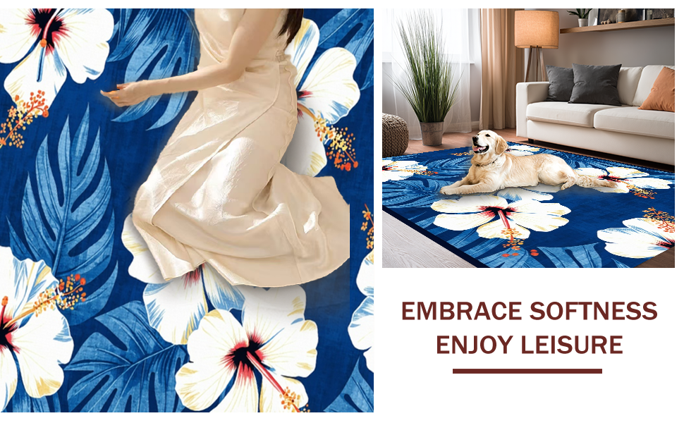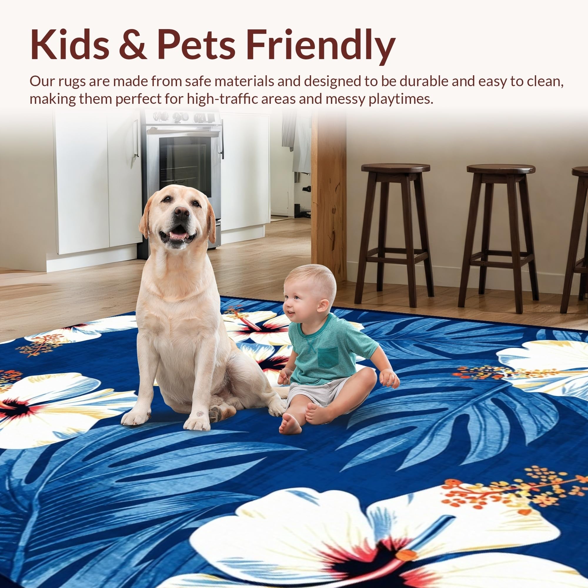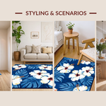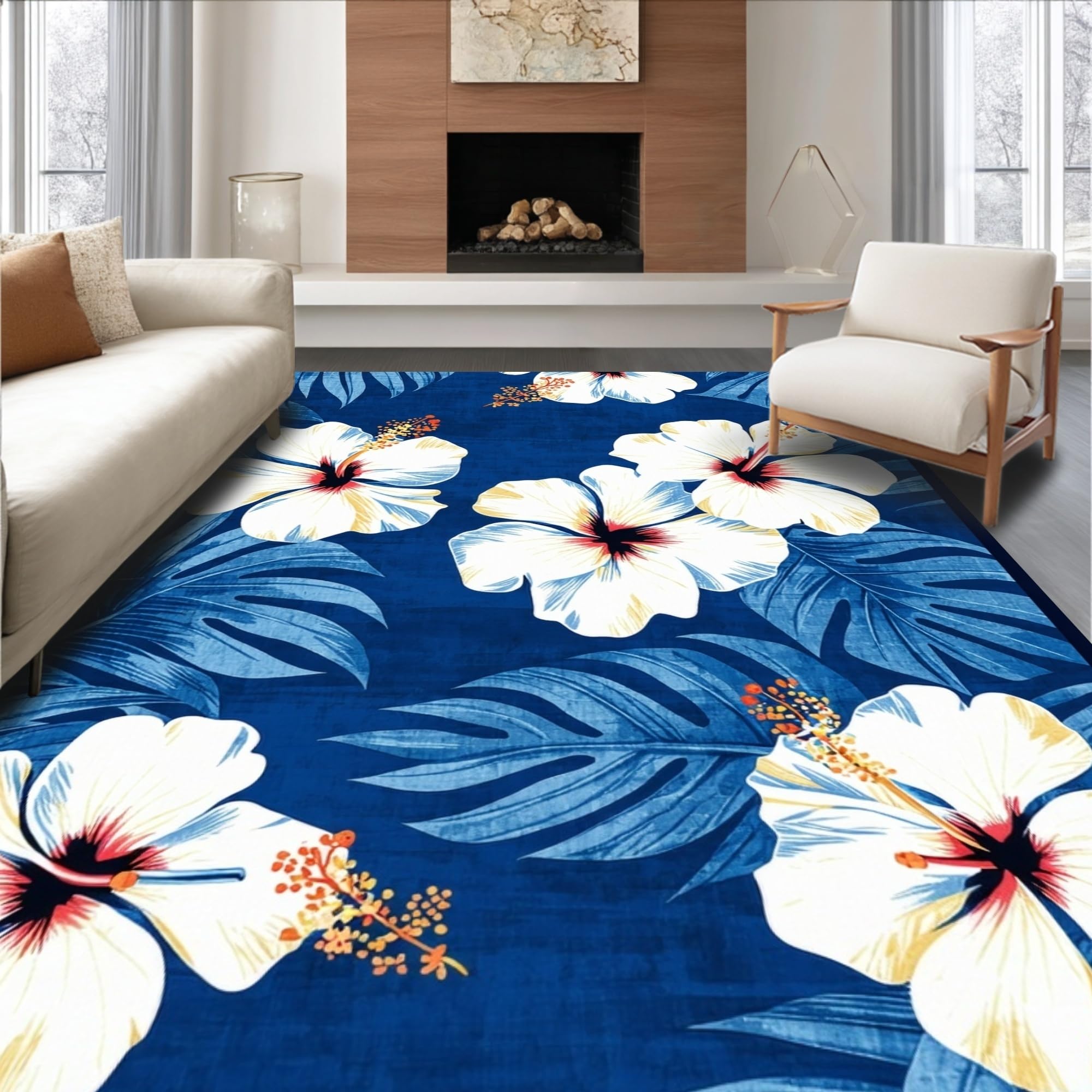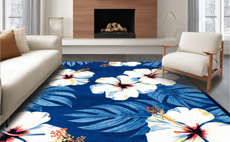 Ultra Soft Area Rug, Non Slip, Stain Resistant, Washable Area Rugs for Living Room, Bedroom, Coastal Tropical Floral Arrangement(Blue) Overview: