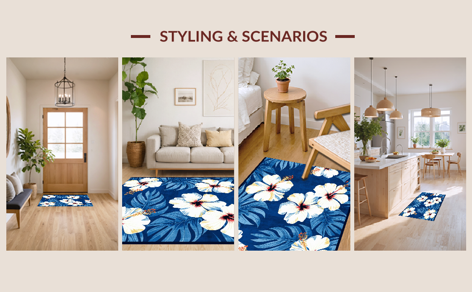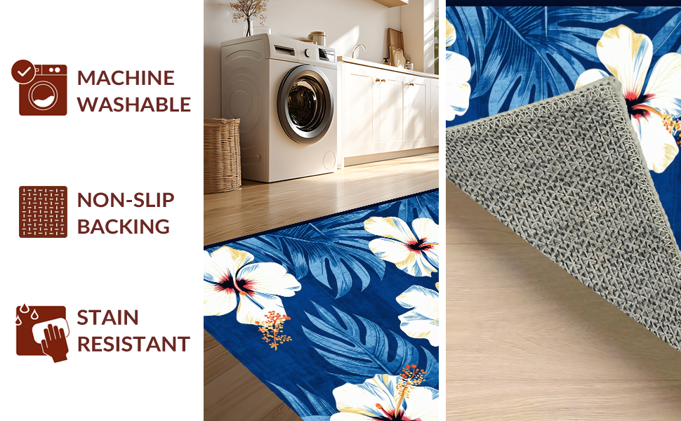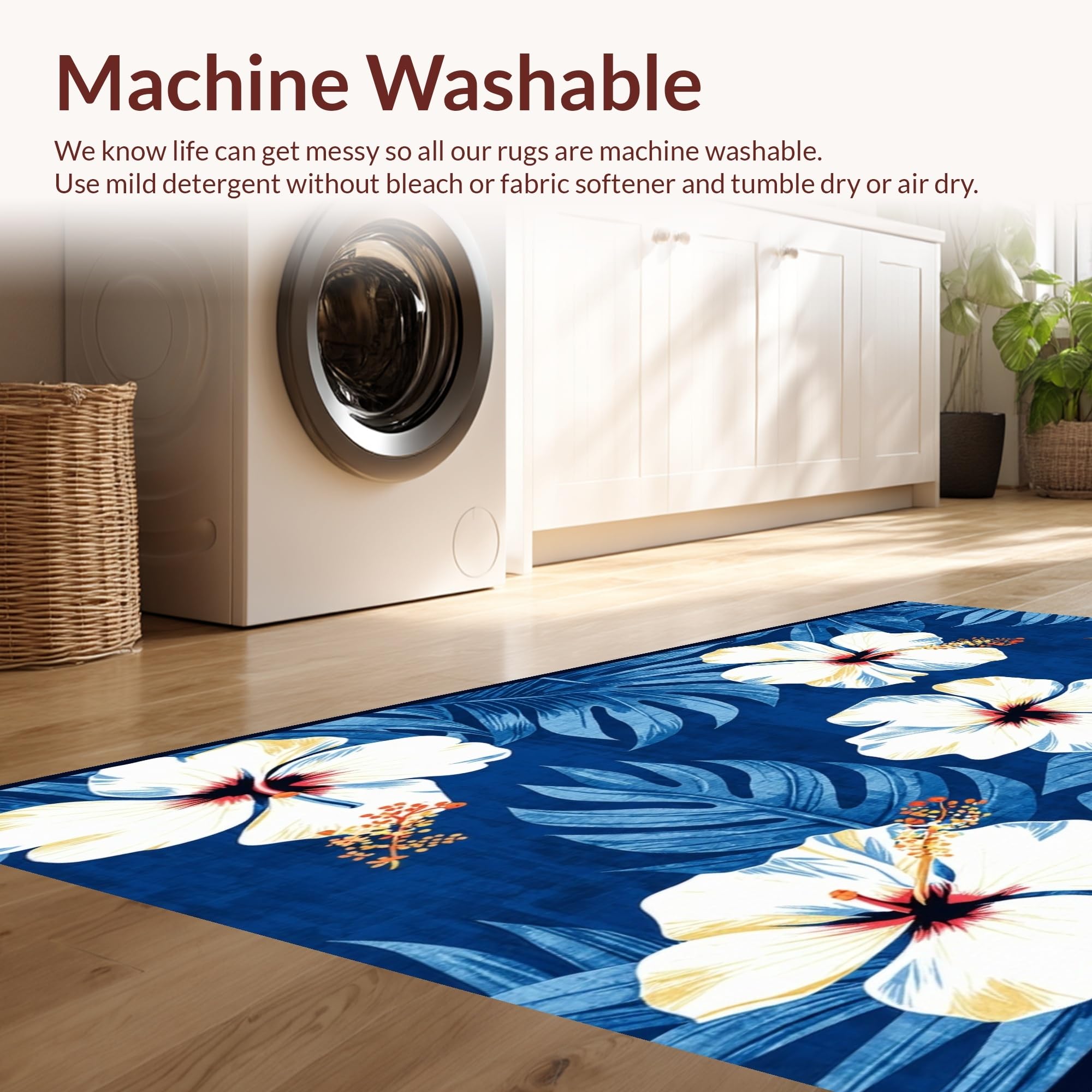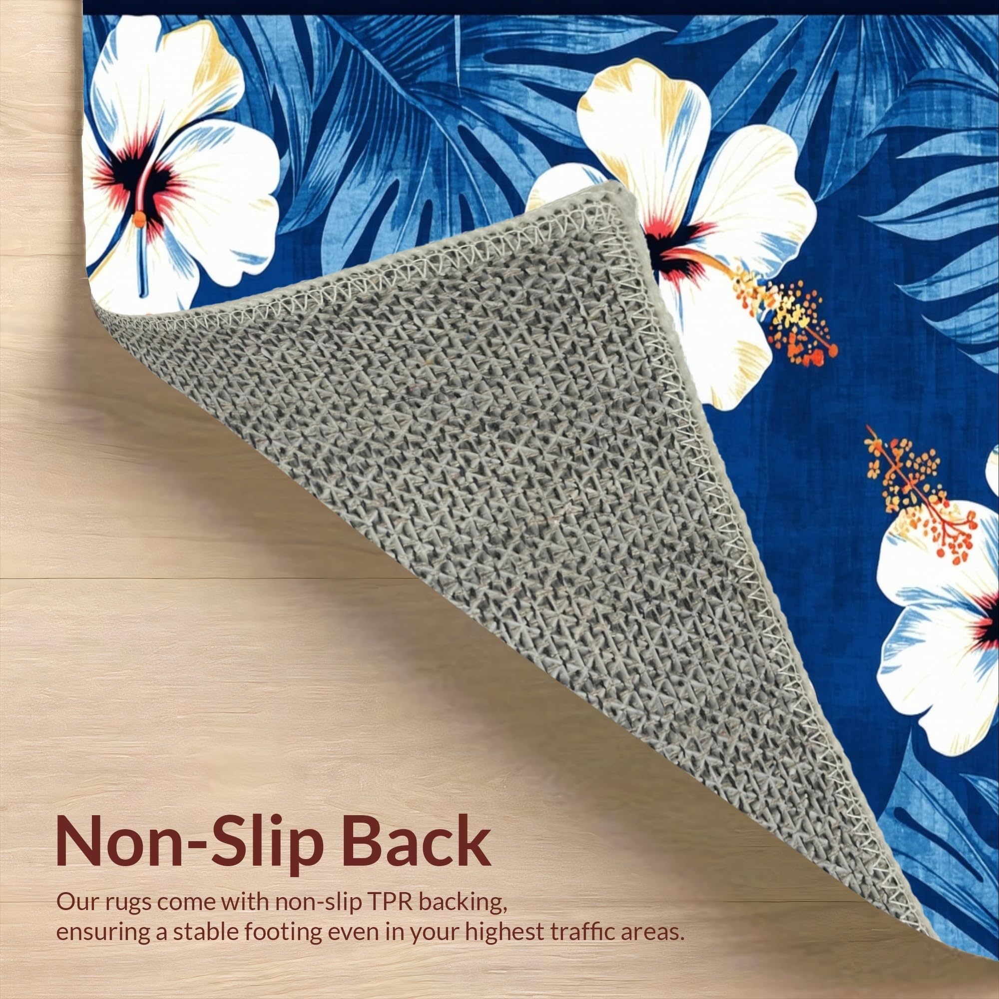 Ultra Soft Area Rug, Non Slip, Stain Resistant, Washable Area Rugs for Living Room, Bedroom, Coastal Tropical Floral Arrangement(Blue) Overview: