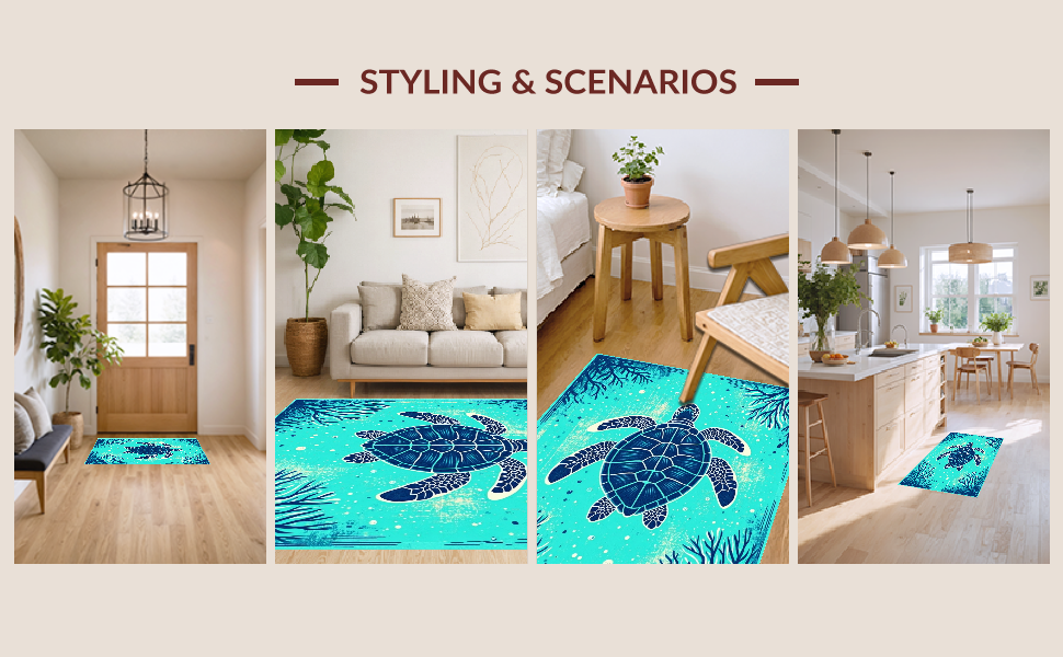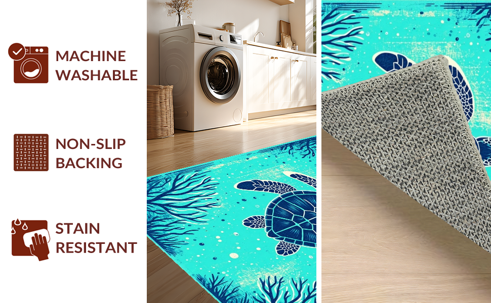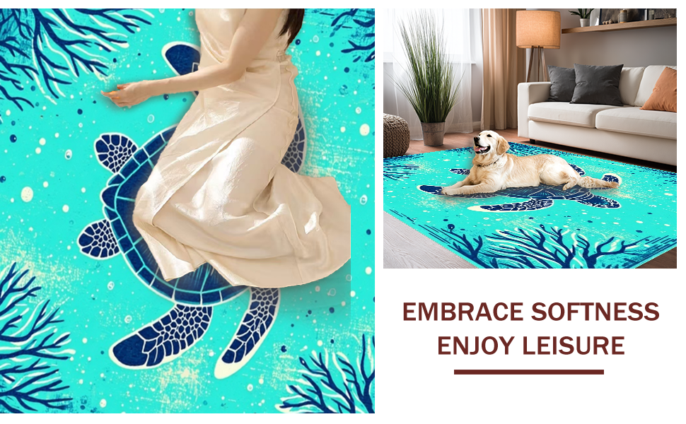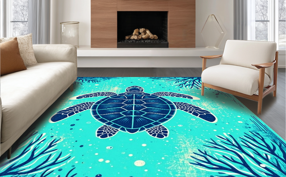 Ultra Soft Area Rug, Non Slip, Stain Resistant, Washable Area Rugs for Living Room, Bedroom, Coastal Vibrant Turtle Motif(Blue) Overview: