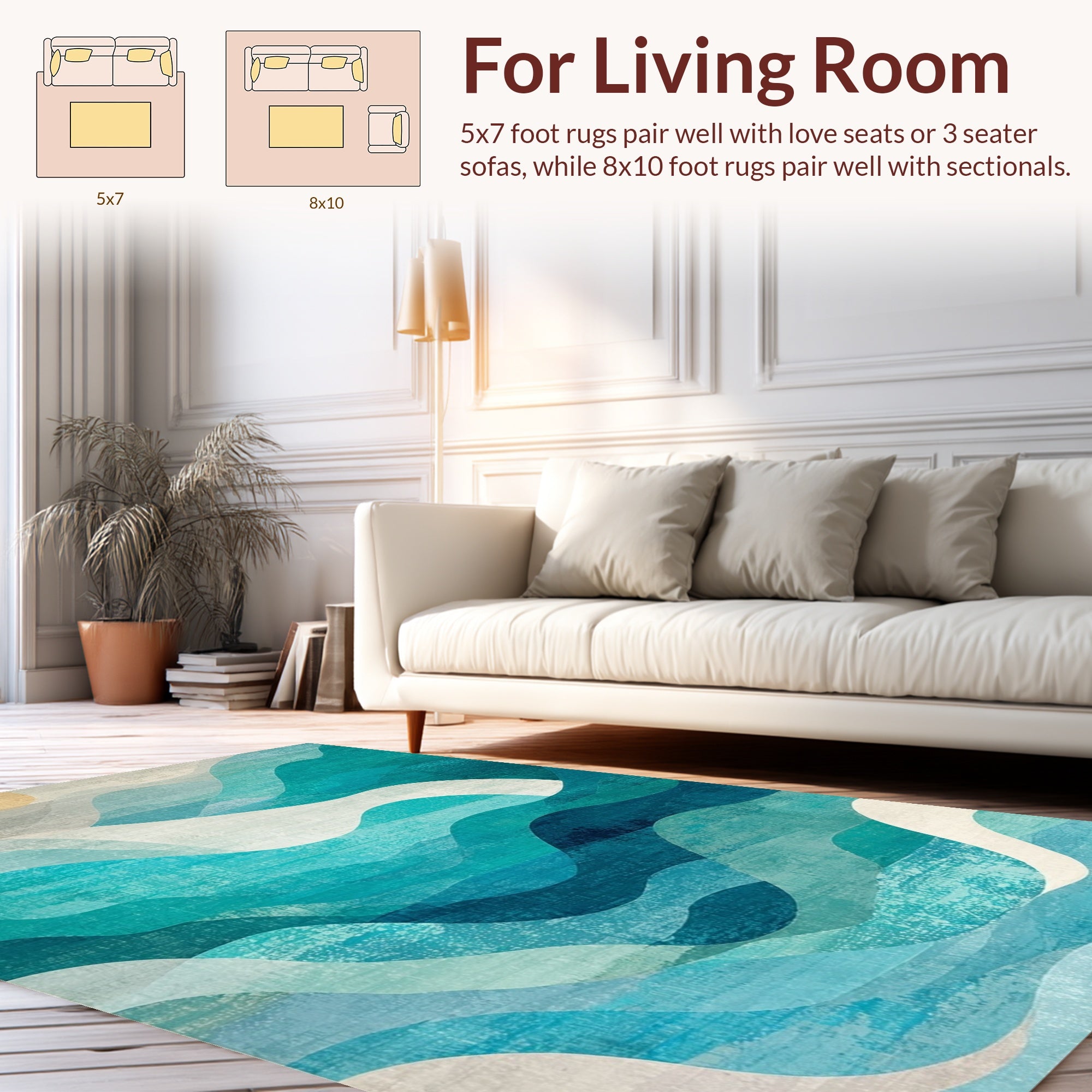 Ultra Soft Area Rug, Non Slip, Stain Resistant, Washable Area Rugs for Living Room, Bedroom, Coastal Wave Rug Abstract Surf Design(Blue) Overview: