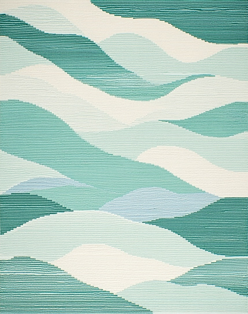 Coastal Wave Rug with Mint and Off White Textures(Ivory)