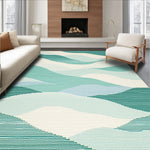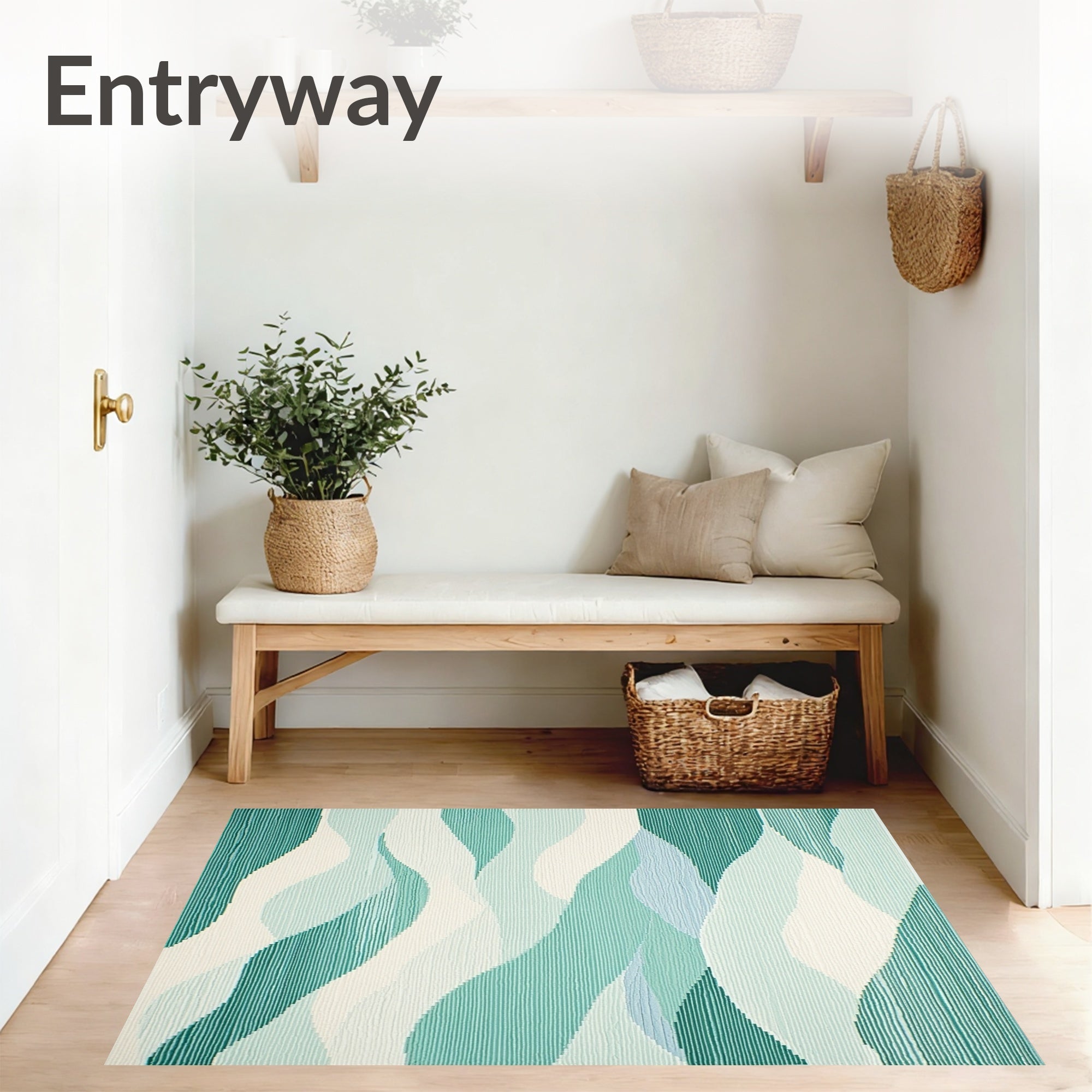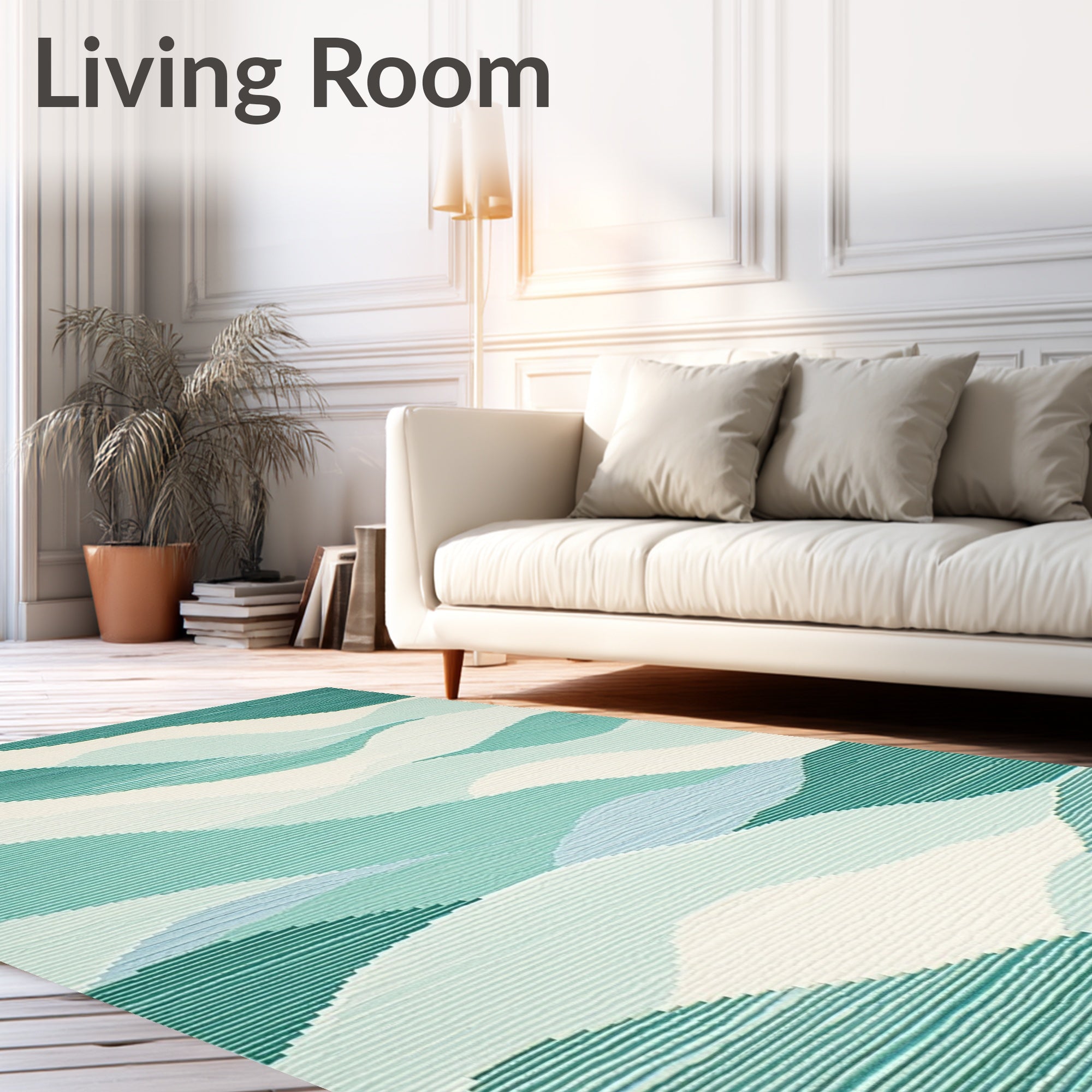 Ultra Soft Area Rug, Non Slip, Stain Resistant, Washable Area Rugs for Living Room, Bedroom, Coastal Wave Rug with Mint and Off White Textures(Ivory) Overview: