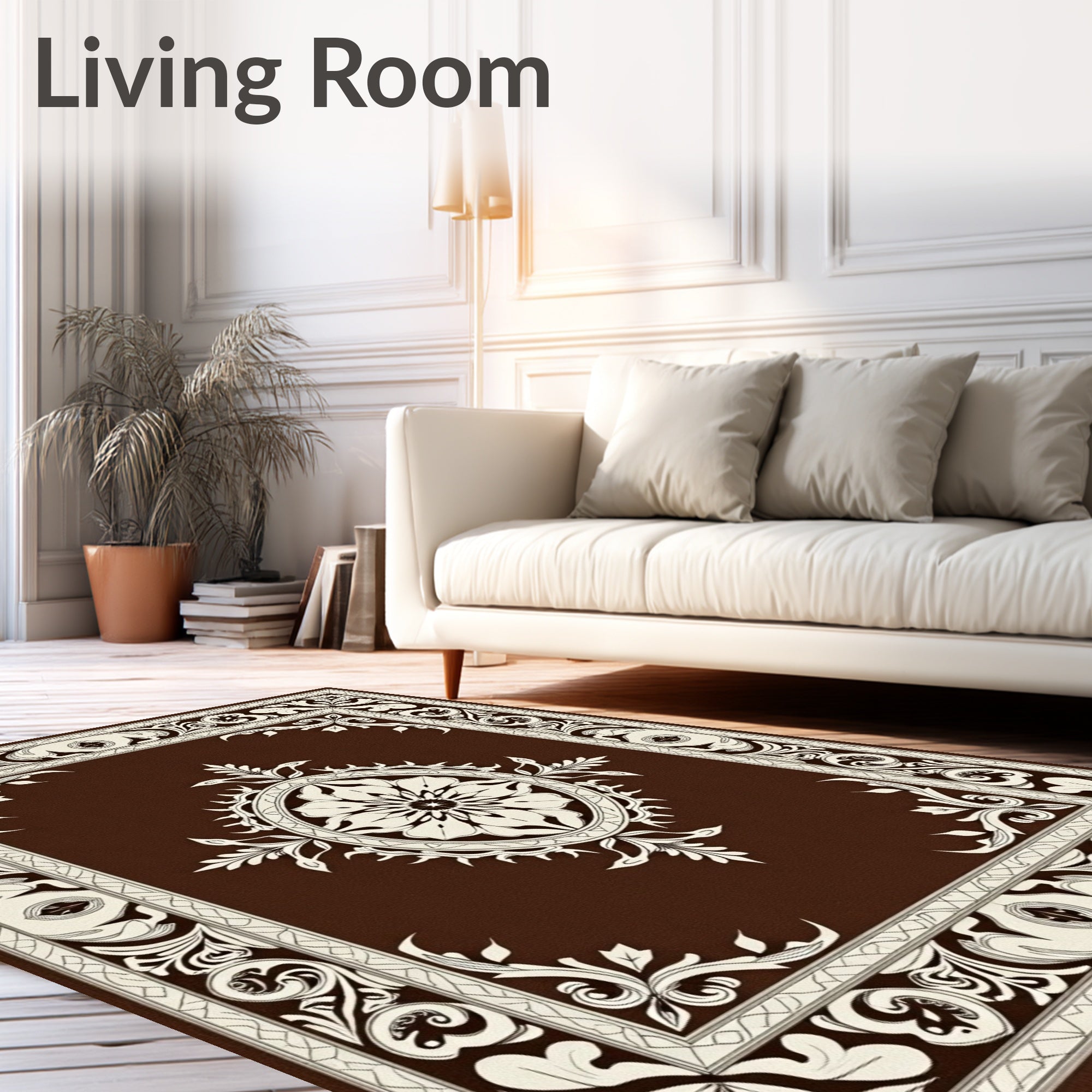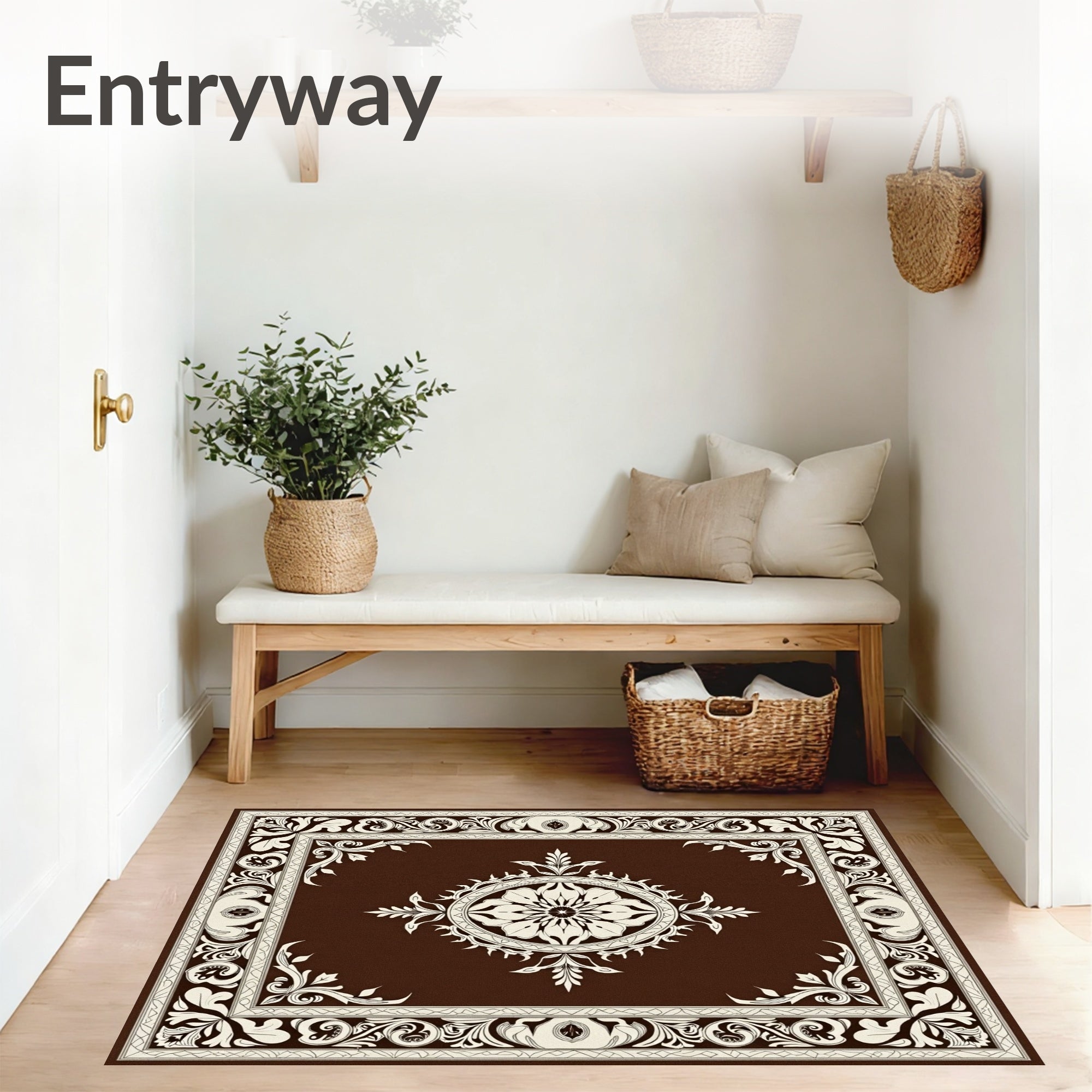 Flatwoven High Traffic Area Rug, Collection Elegant Floral Medallion Vintage Distressed, Non Slip, Stain Resistant, Washable Area Rugs for Living Room, Bedroom (Brown) Overview: