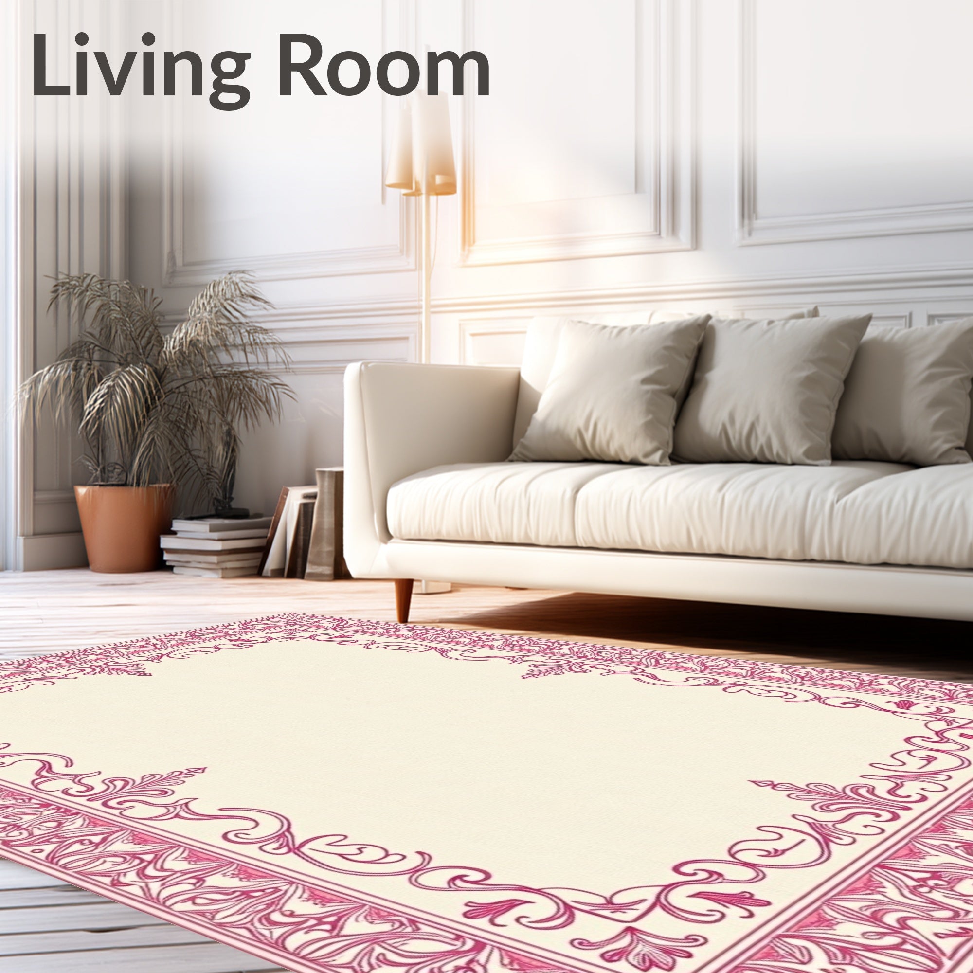 Ultra Soft Area Rug, Non Slip, Stain Resistant, Washable Area Rugs for Living Room, Bedroom, Collection Elegant Vine Scroll Medallion(Pink) Overview: