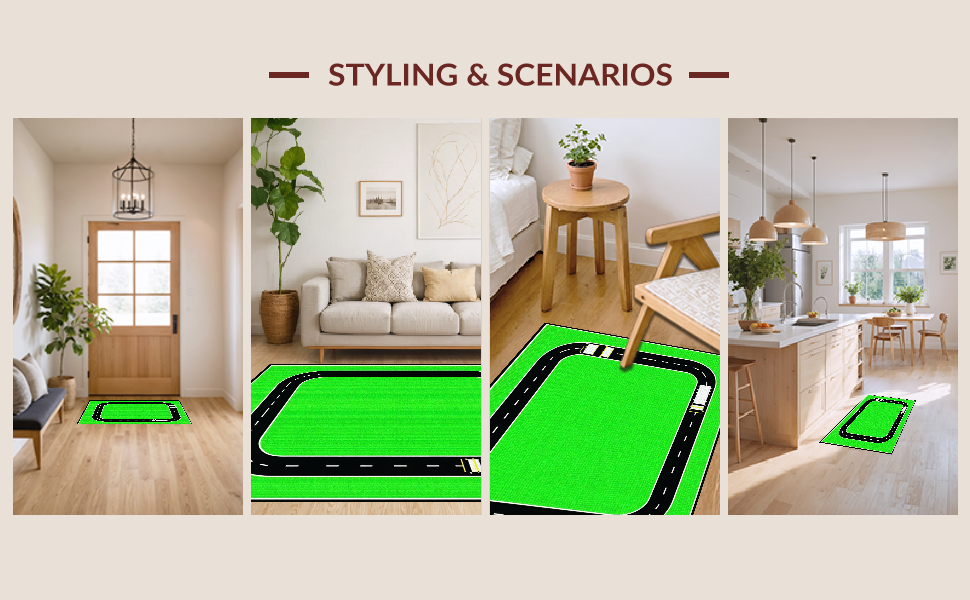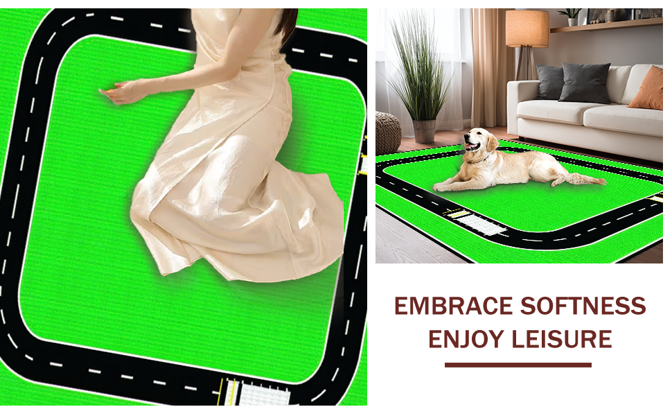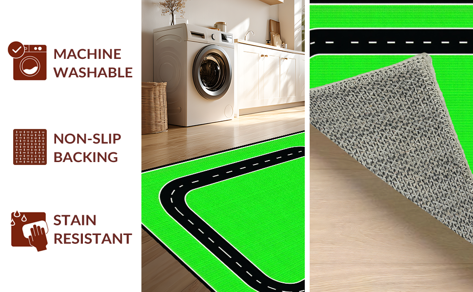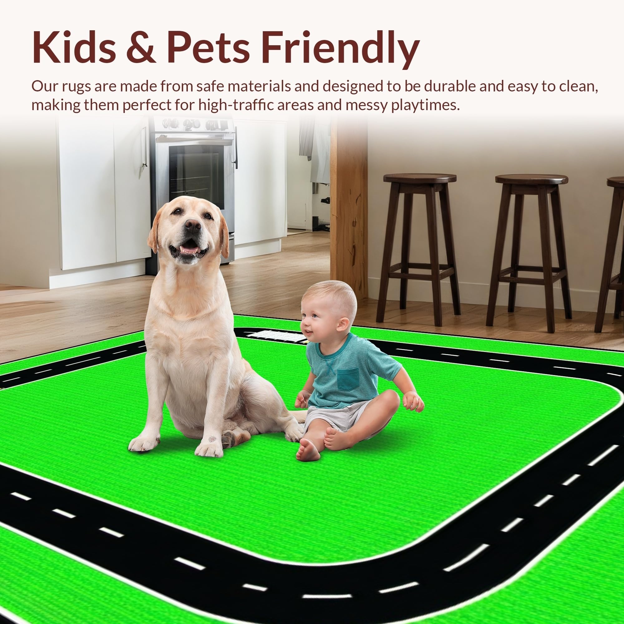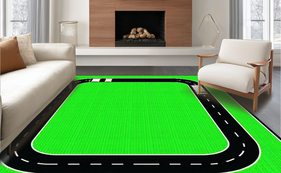 Ultra Soft Area Rug, Non Slip, Stain Resistant, Washable Area Rugs for Living Room, Bedroom, Colorful Adventure Track Motif(Green) Overview: