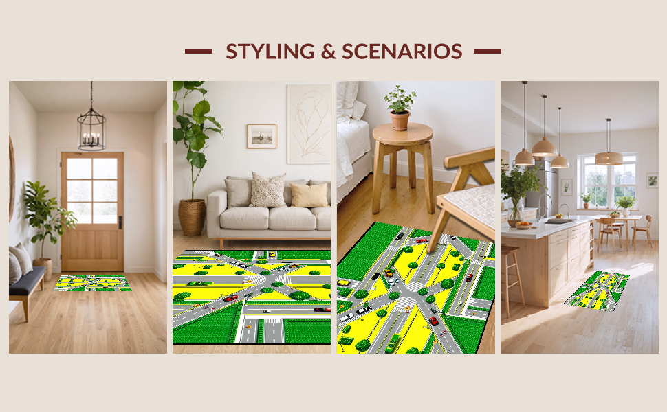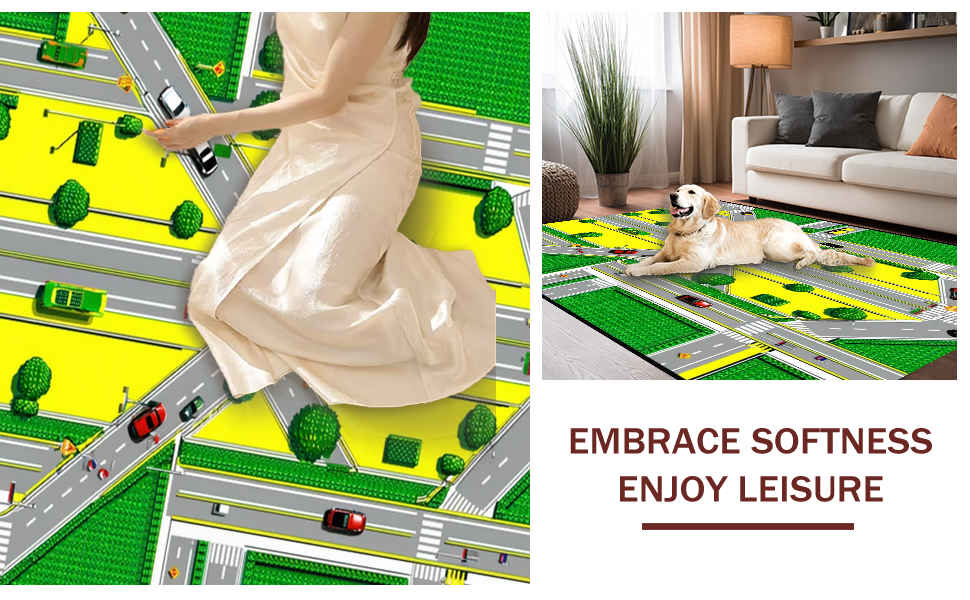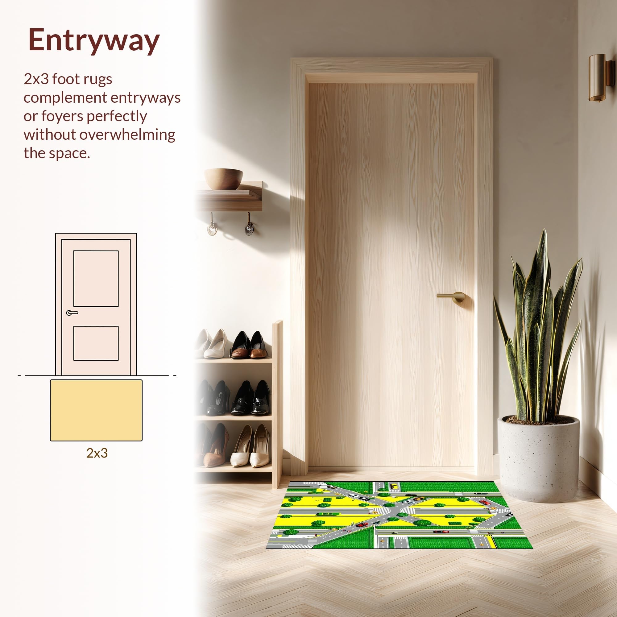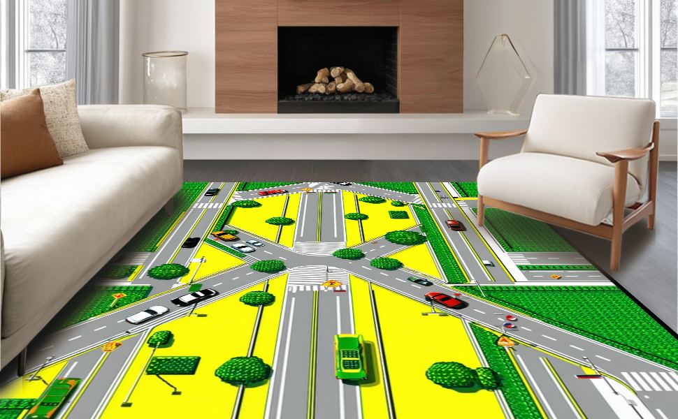 Ultra Soft Area Rug, Non Slip, Stain Resistant, Washable Area Rugs for Living Room, Bedroom, Colorful Adventure Trail Motif(Yellow) Overview: