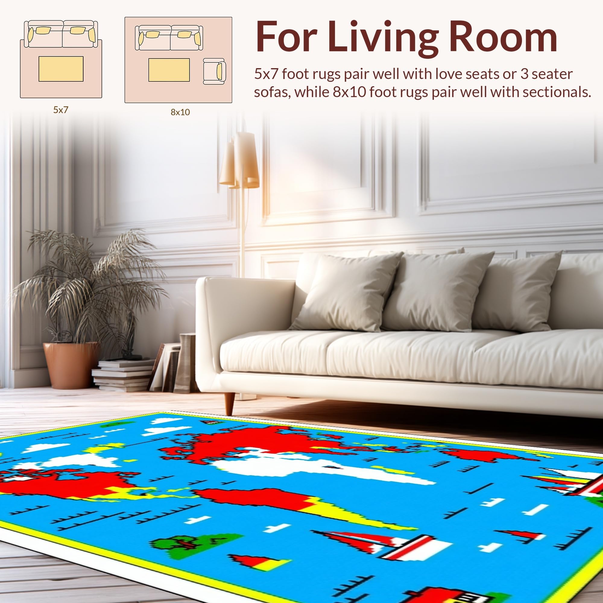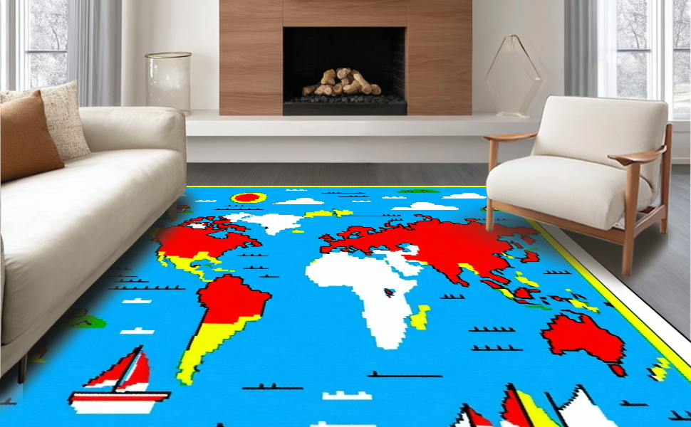 Ultra Soft Area Rug, Non Slip, Stain Resistant, Washable Area Rugs for Living Room, Bedroom, Colorful Alphabetic Interactive Canvas(Blue) Overview: