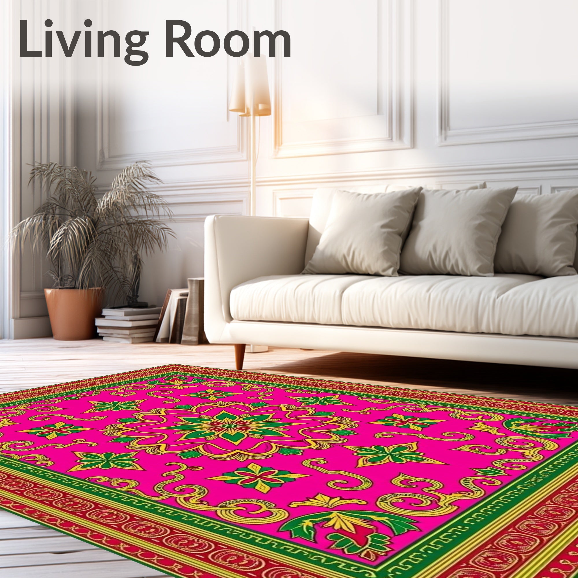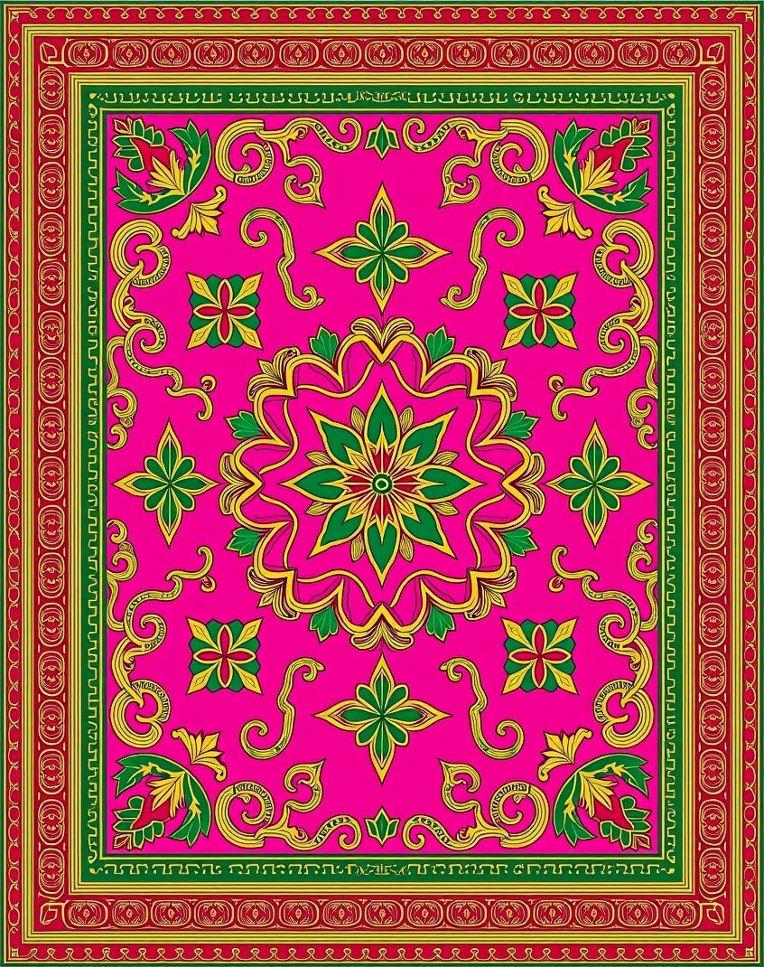 Ultra Soft Area Rug, Non Slip, Stain Resistant, Washable Area Rugs for Living Room, Bedroom, Colorful Arabesque Throw Featuring Bright Holiday Festive(Pink) Overview: