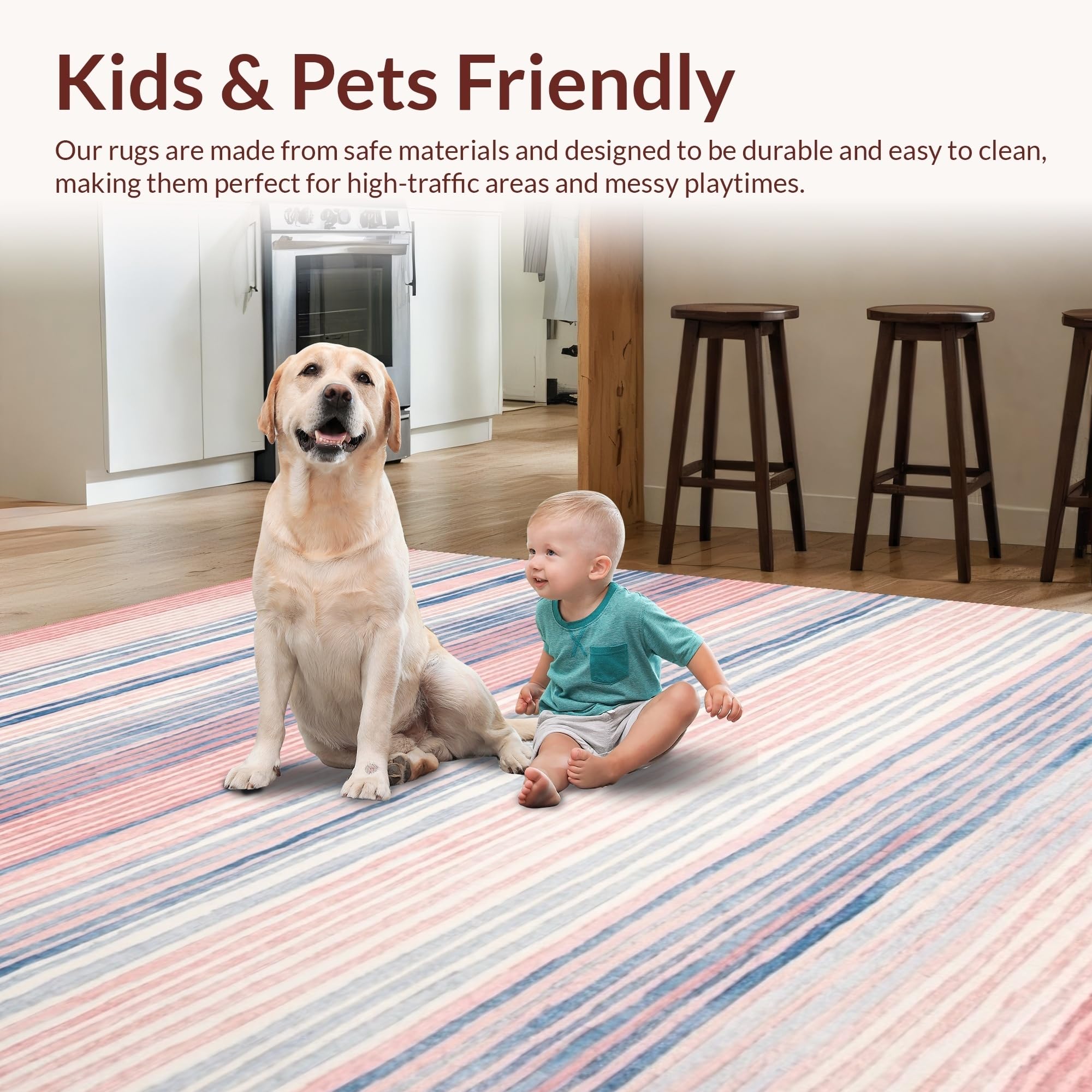 Ultra Soft Area Rug, Non Slip, Stain Resistant, Washable Area Rugs for Living Room, Bedroom, Colorful Artistic Splash Motif(Pink) Overview: