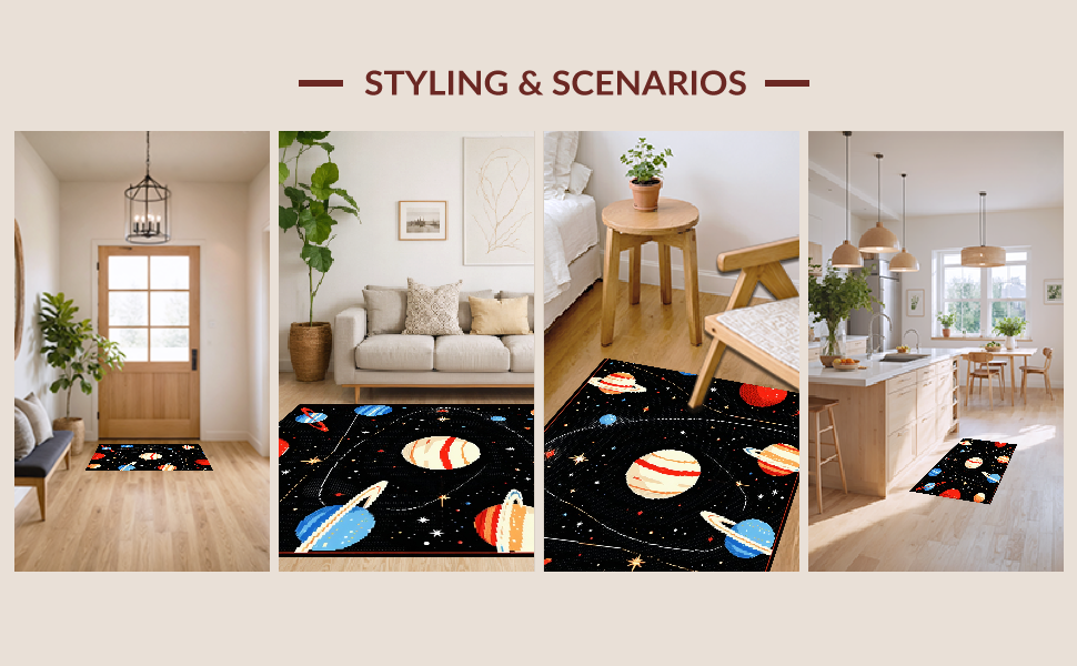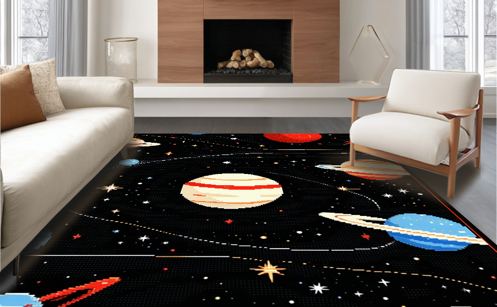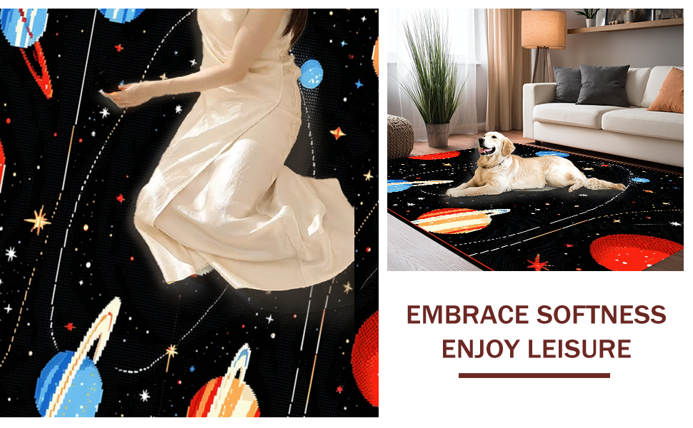 Ultra Soft Area Rug, Non Slip, Stain Resistant, Washable Area Rugs for Living Room, Bedroom, Colorful Astronomical Art Design(Red) Overview: