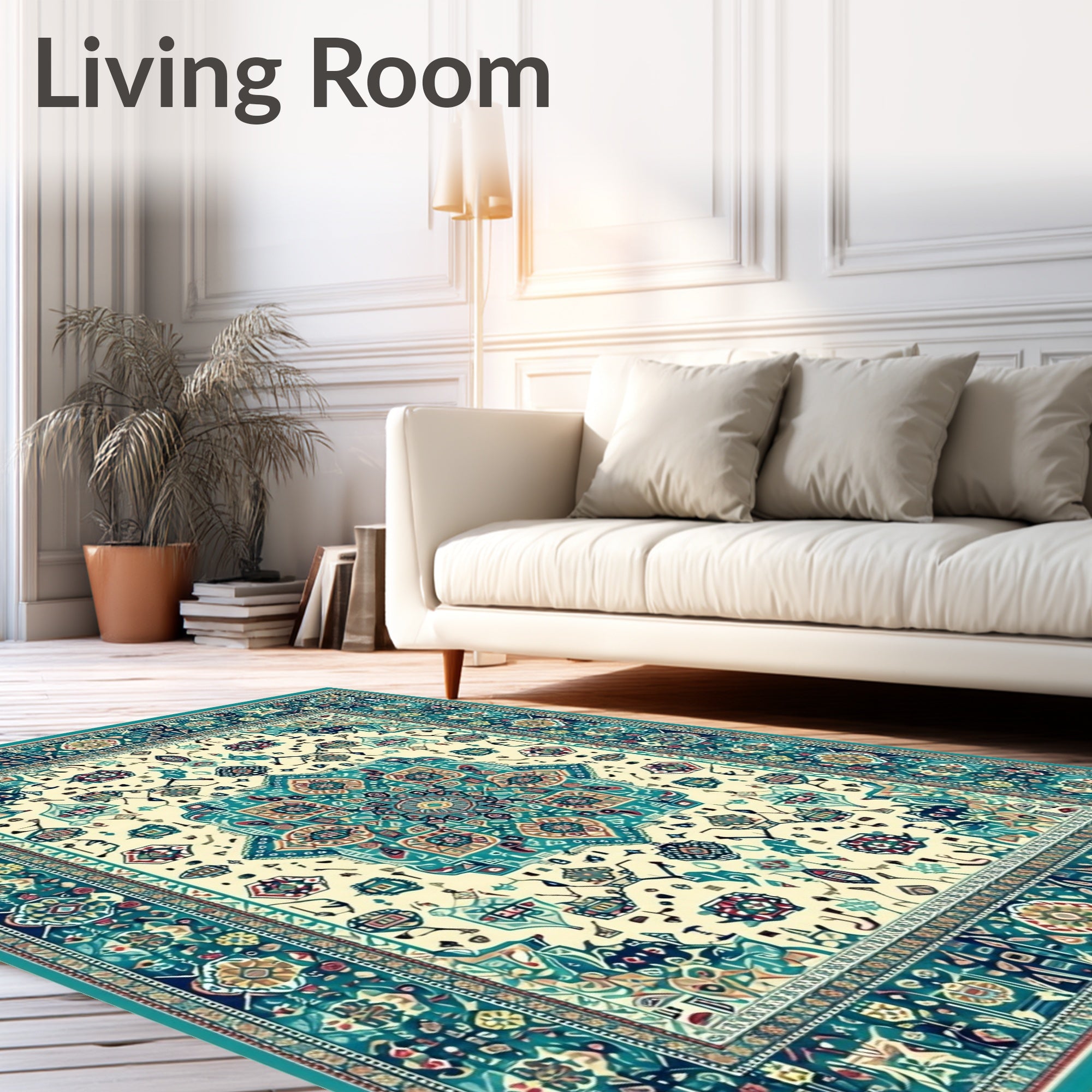 Ultra Soft Area Rug, Non Slip, Stain Resistant, Washable Area Rugs for Living Room, Bedroom, Colorful Boho Chic Geometric Medallion Area(White) Overview: