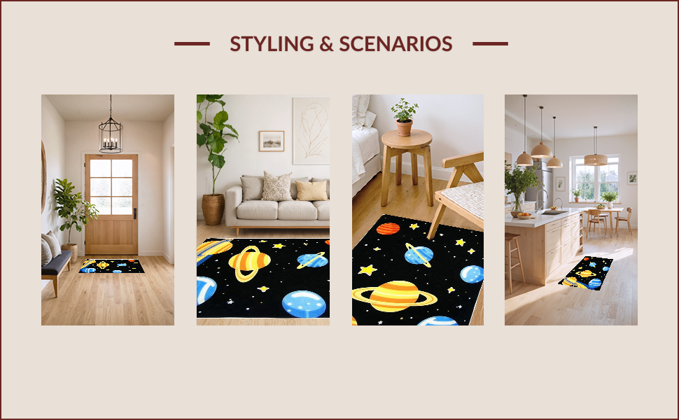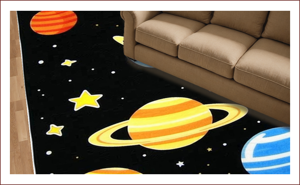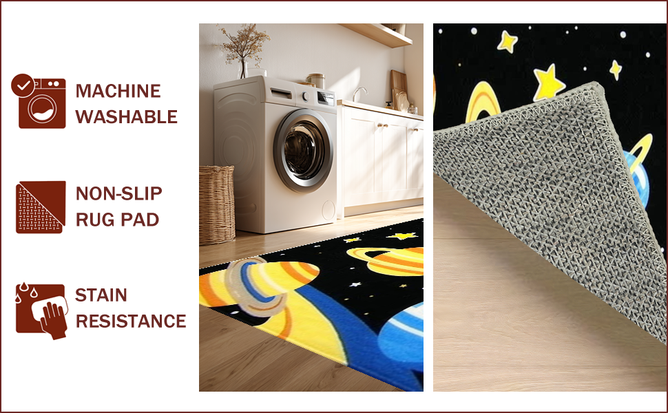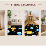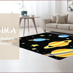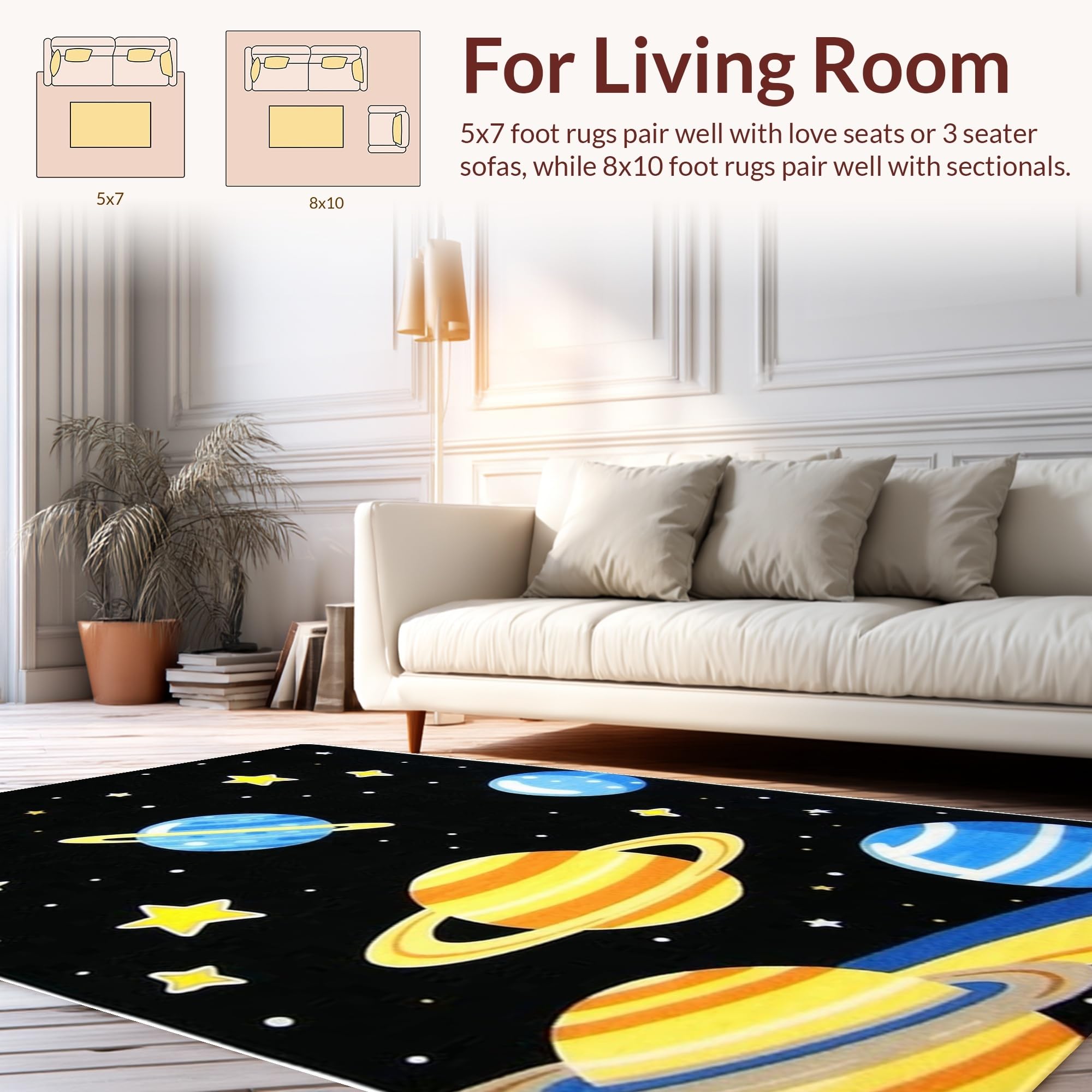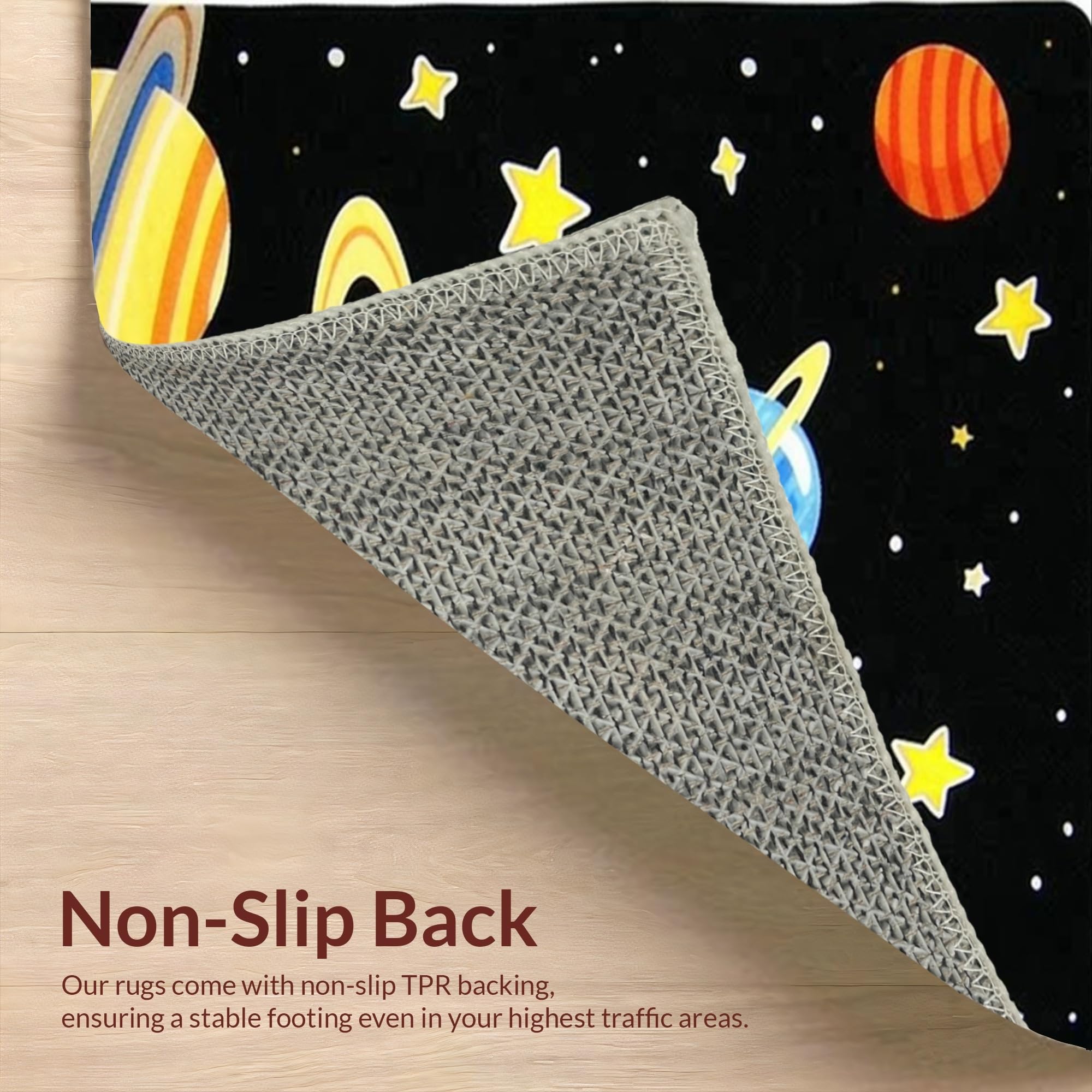 Ultra Soft Area Rug, Non Slip, Stain Resistant, Washable Area Rugs for Living Room, Bedroom, Colorful Celestial Cartoon Theme(Black) Overview: