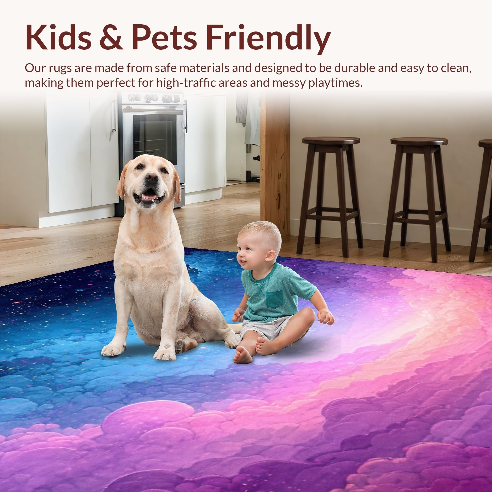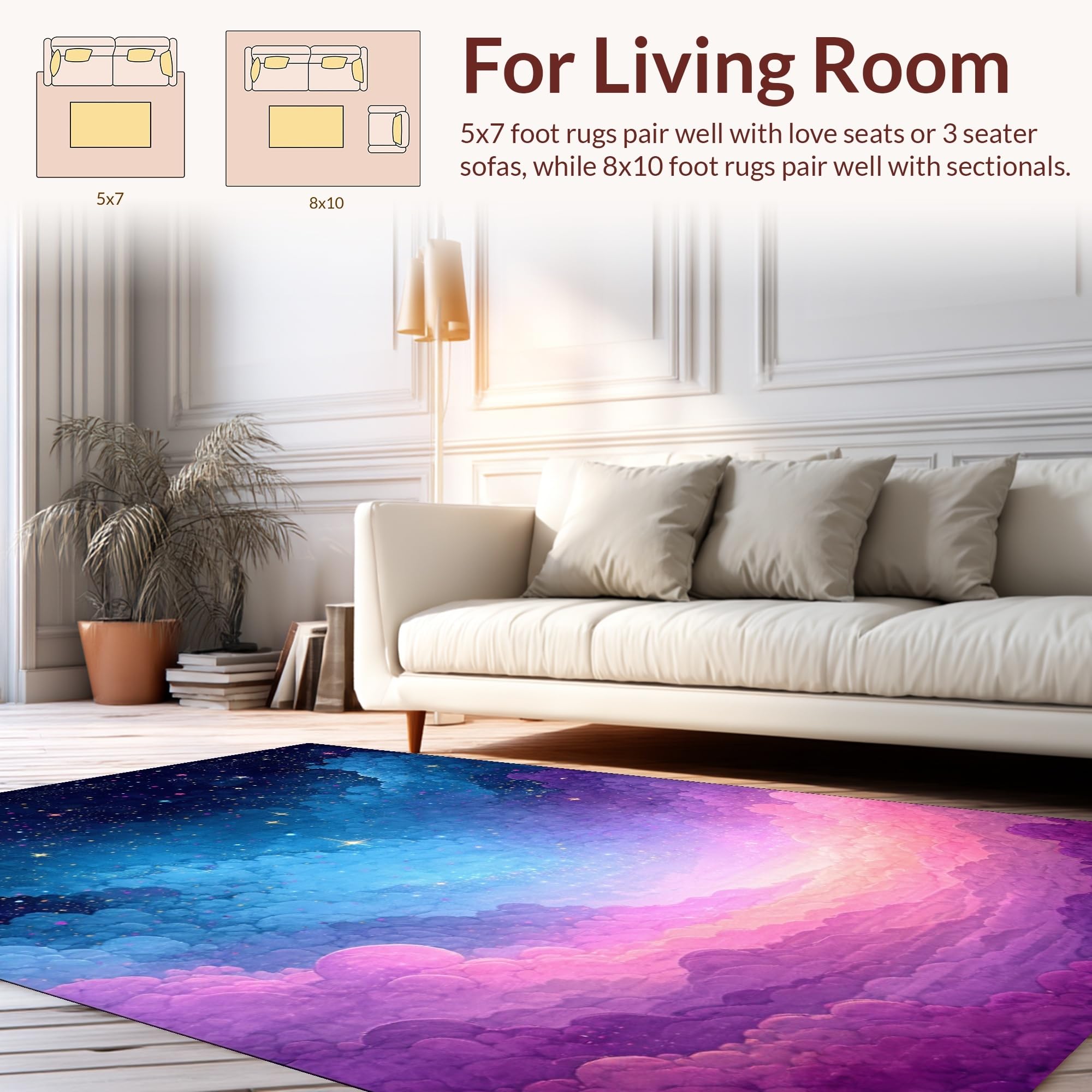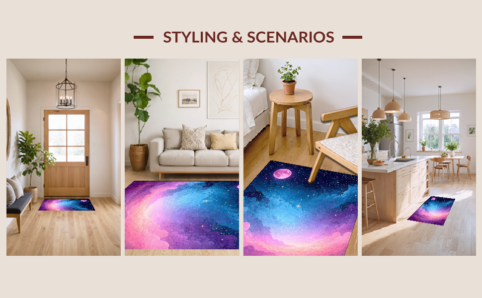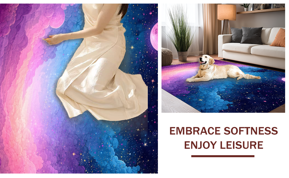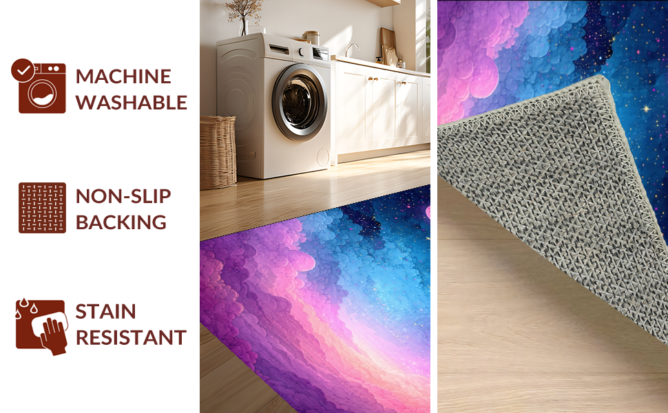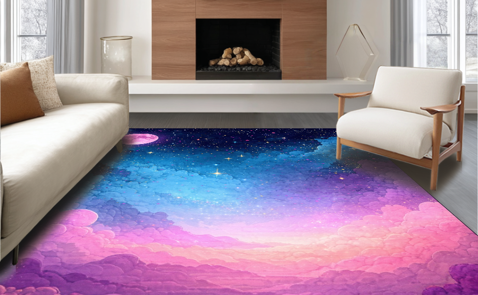 Ultra Soft Area Rug, Non Slip, Stain Resistant, Washable Area Rugs for Living Room, Bedroom, Colorful Celestial Dreamscape Pattern(Blue) Overview: