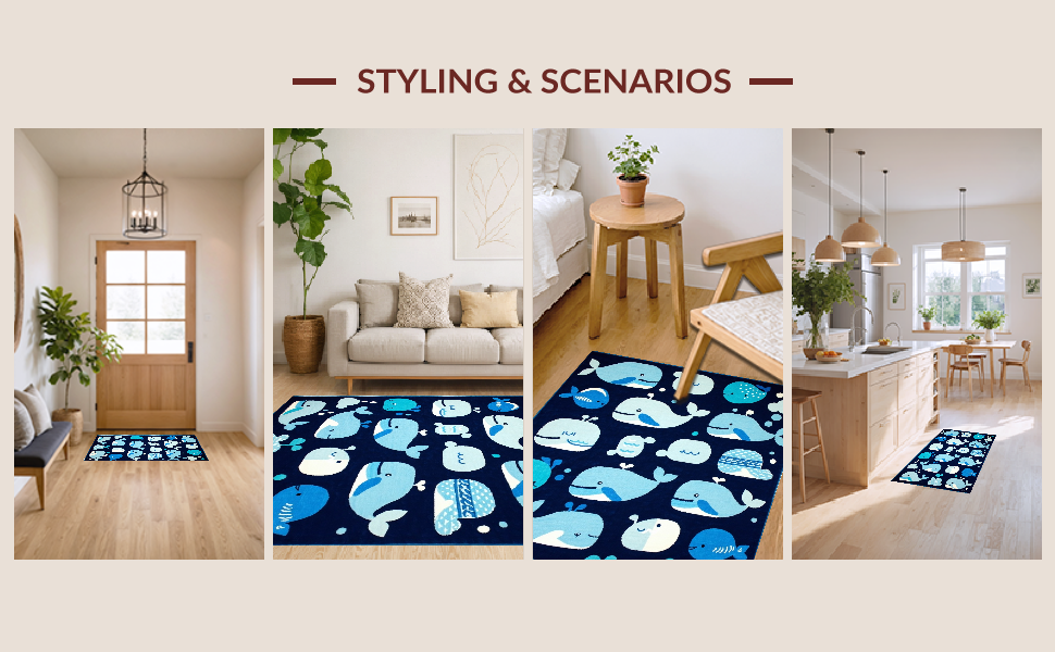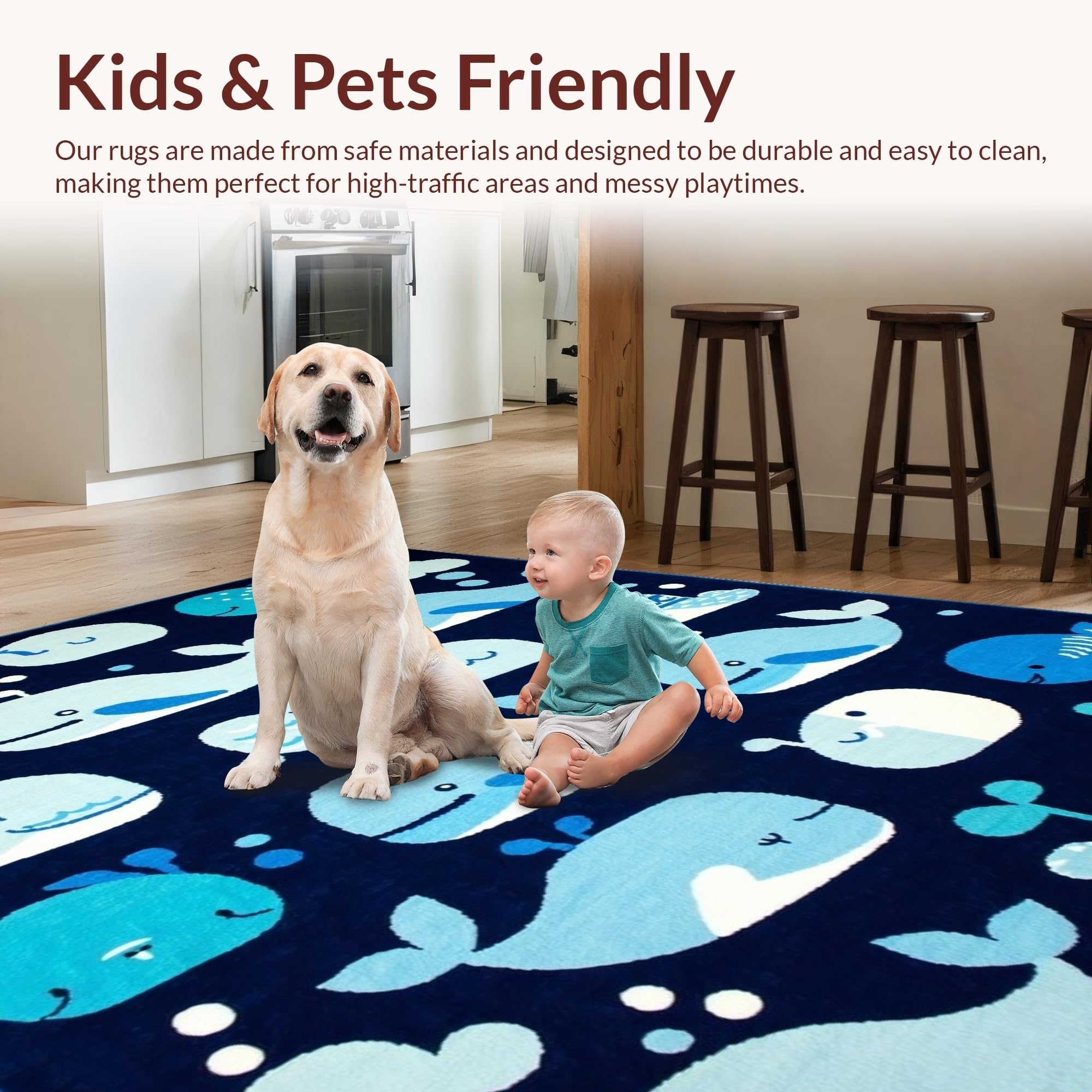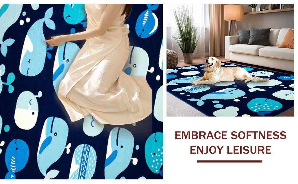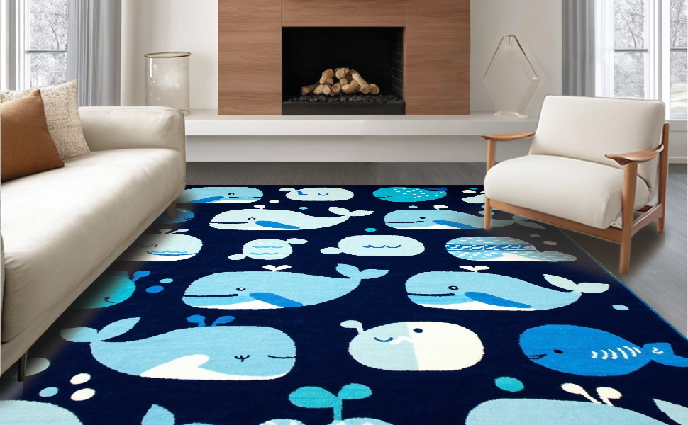 Ultra Soft Area Rug, Non Slip, Stain Resistant, Washable Area Rugs for Living Room, Bedroom, Colorful Coastal Vibe Artwork(Blue) Overview: