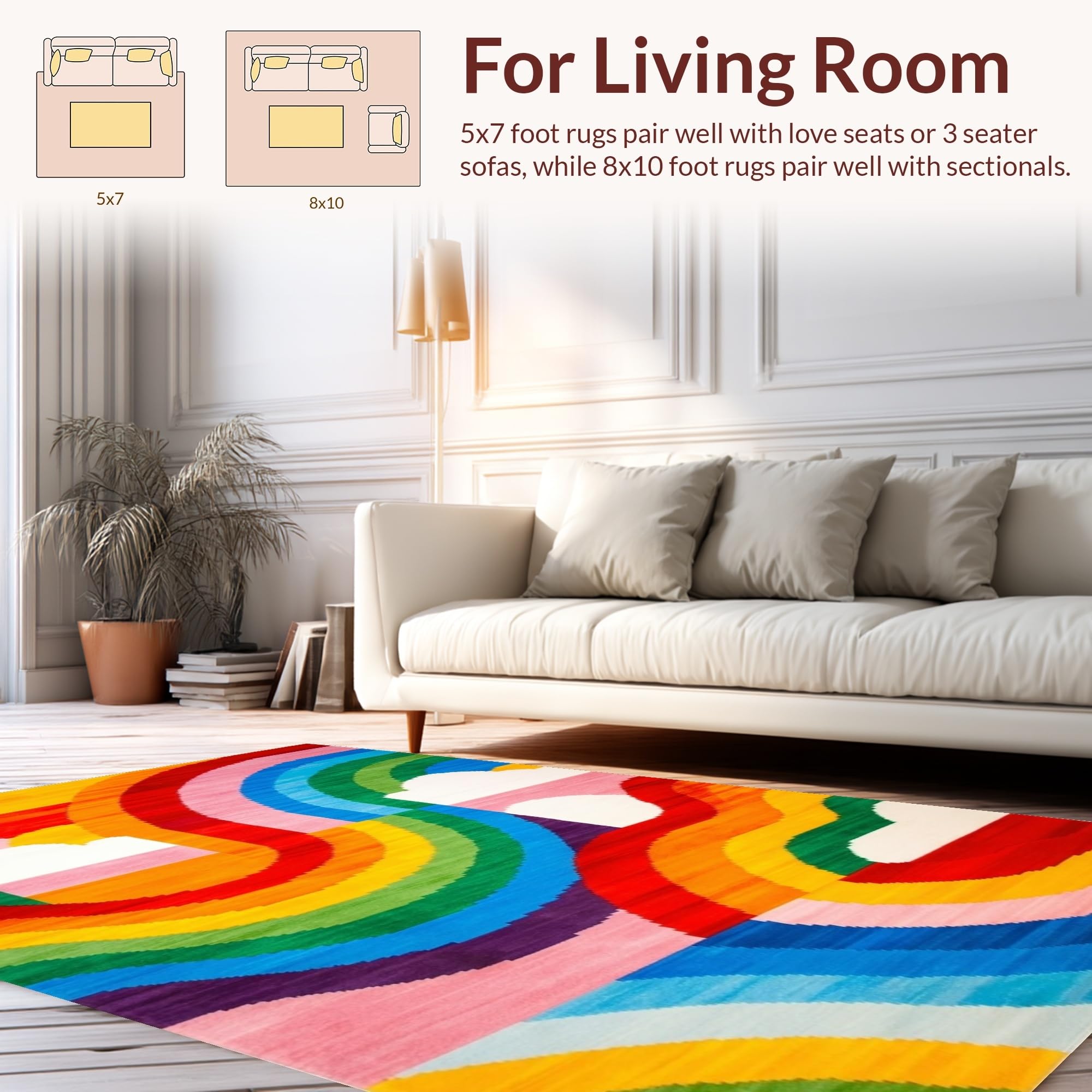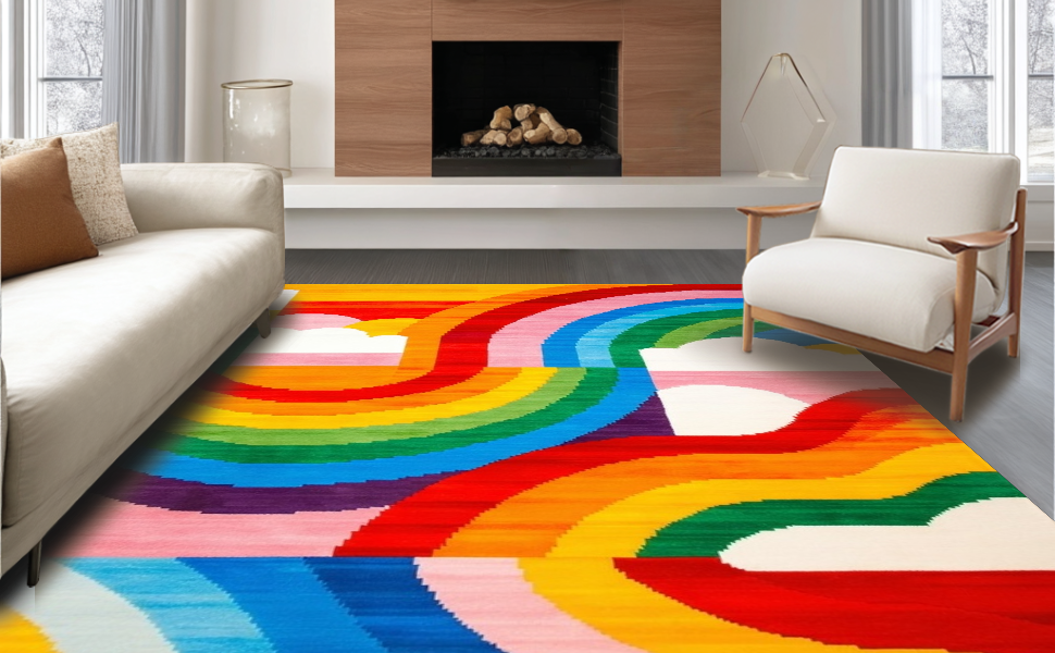Ultra Soft Area Rug, Non Slip, Stain Resistant, Washable Area Rugs for Living Room, Bedroom, Colorful Contemporary Patterned Mat(Red) Overview: