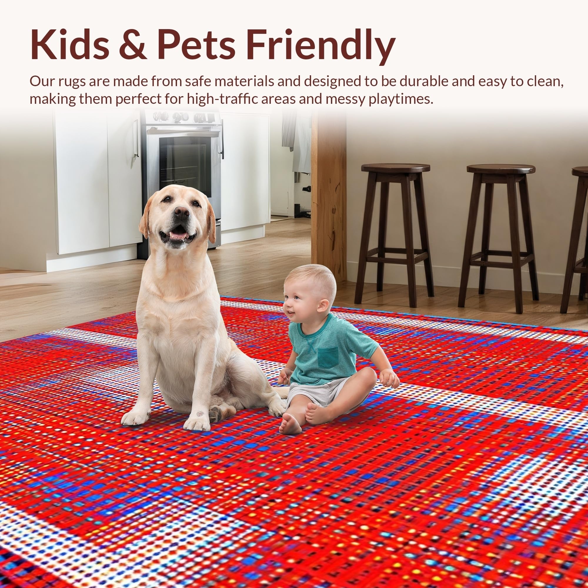 Ultra Soft Area Rug, Non Slip, Stain Resistant, Washable Area Rugs for Living Room, Bedroom, Colorful Contemporary Spot Art(Red) Overview: