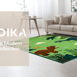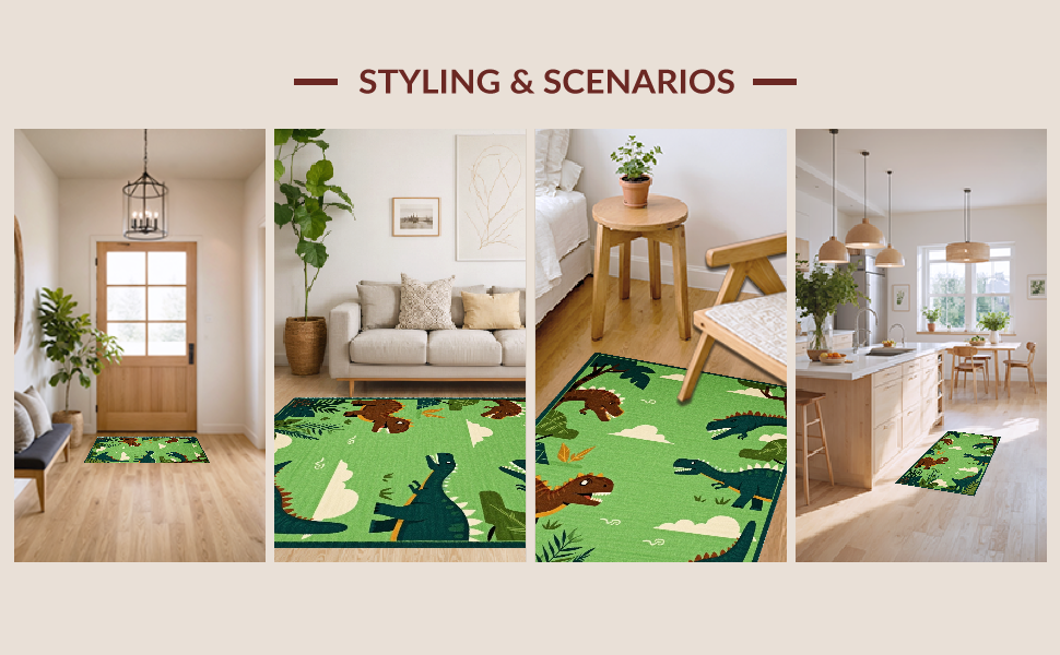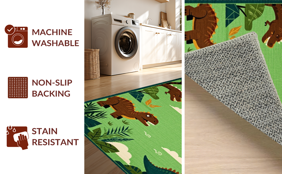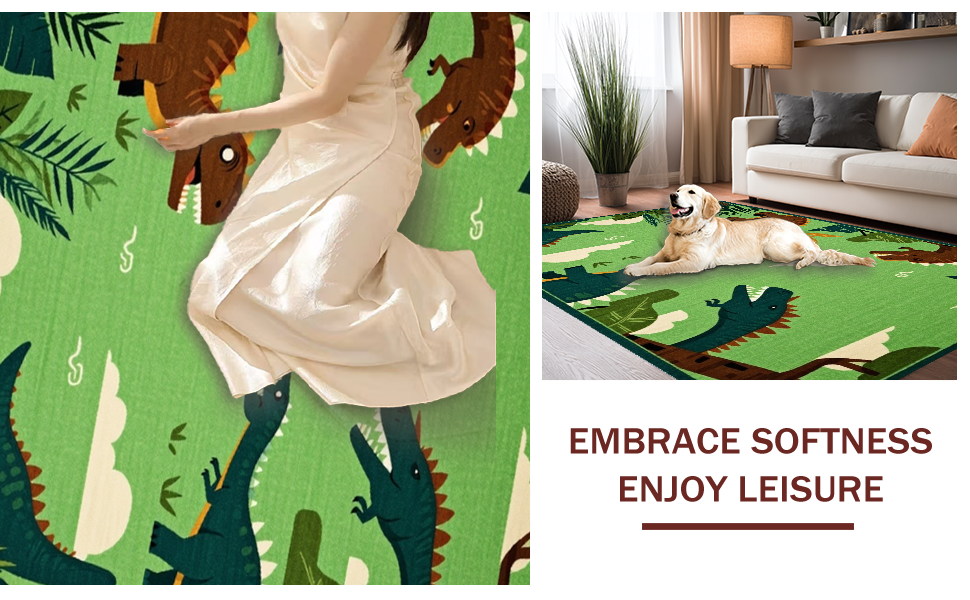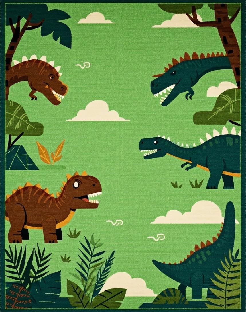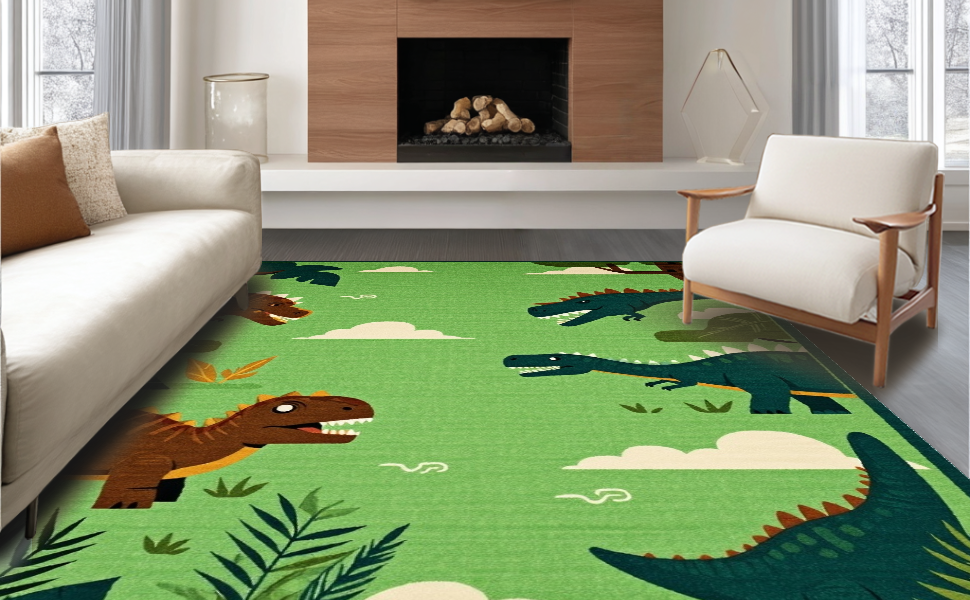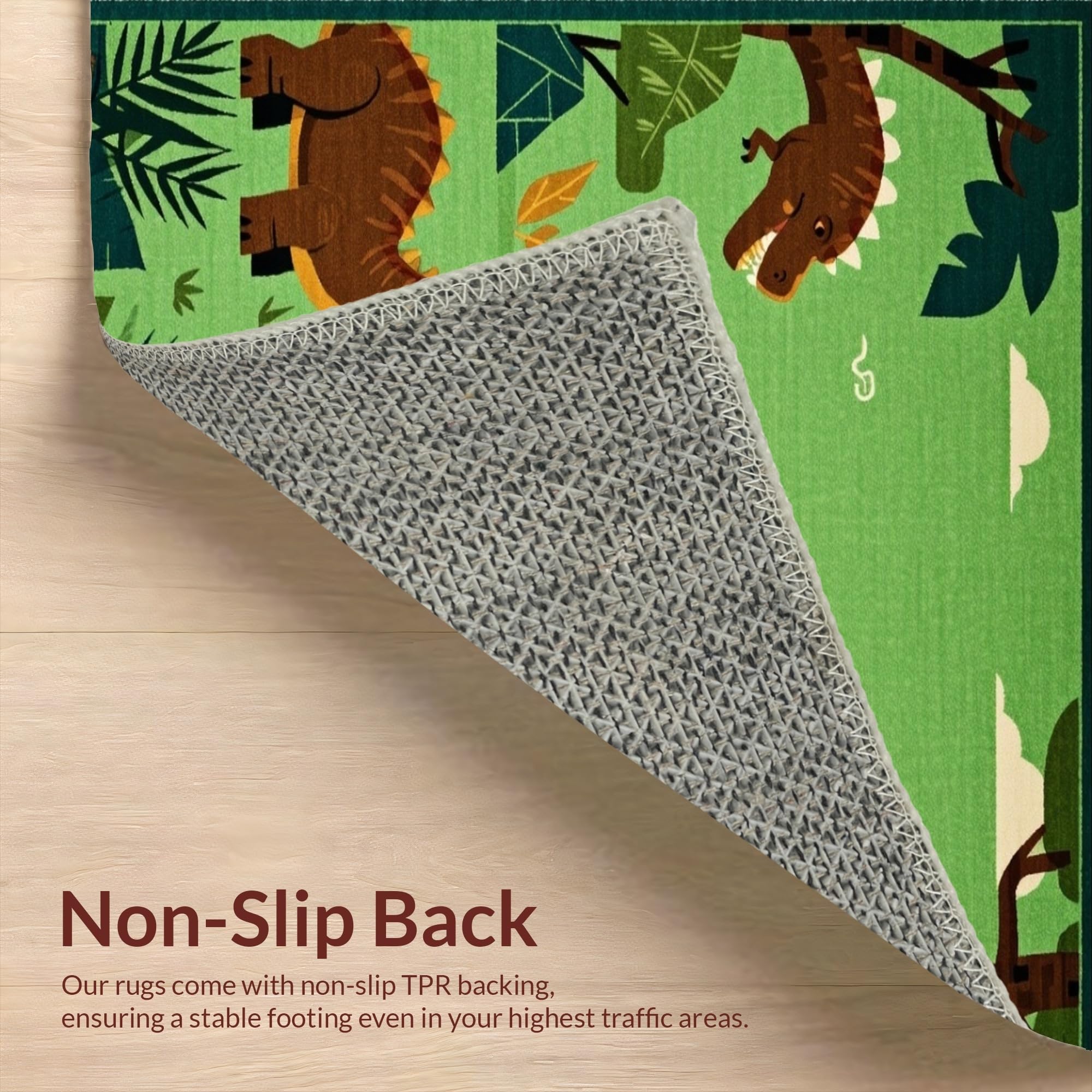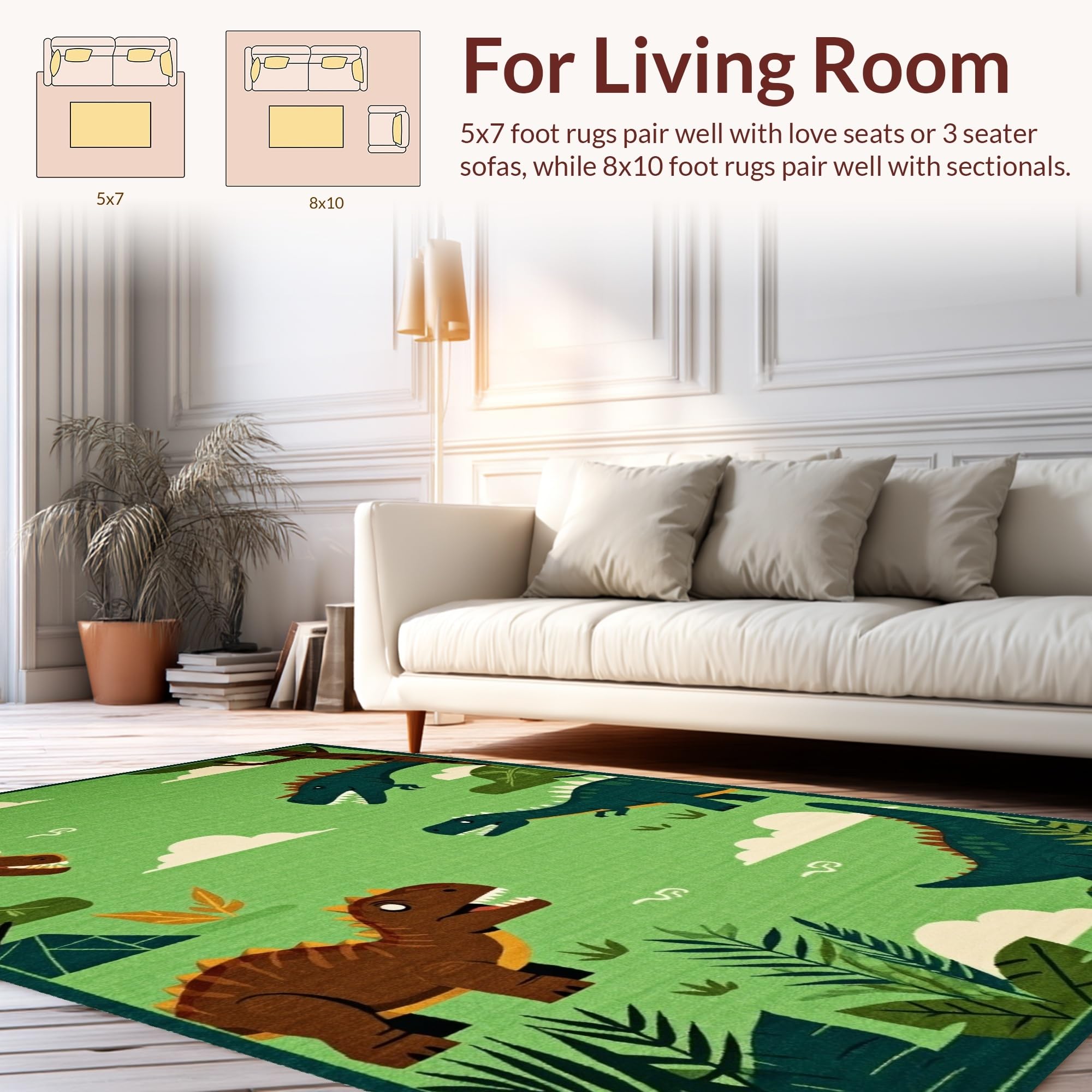 Ultra Soft Area Rug, Non Slip, Stain Resistant, Washable Area Rugs for Living Room, Bedroom, Colorful Dino Adventure Scene(Green) Overview:
