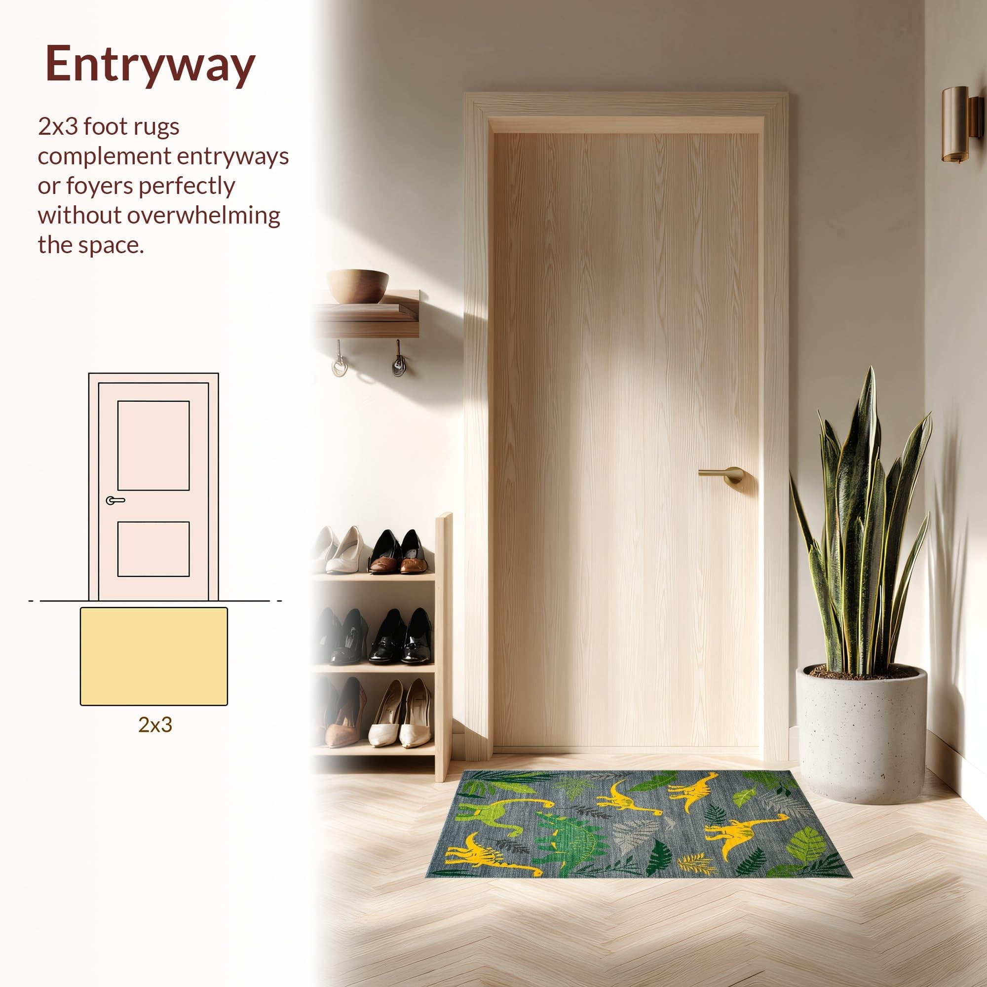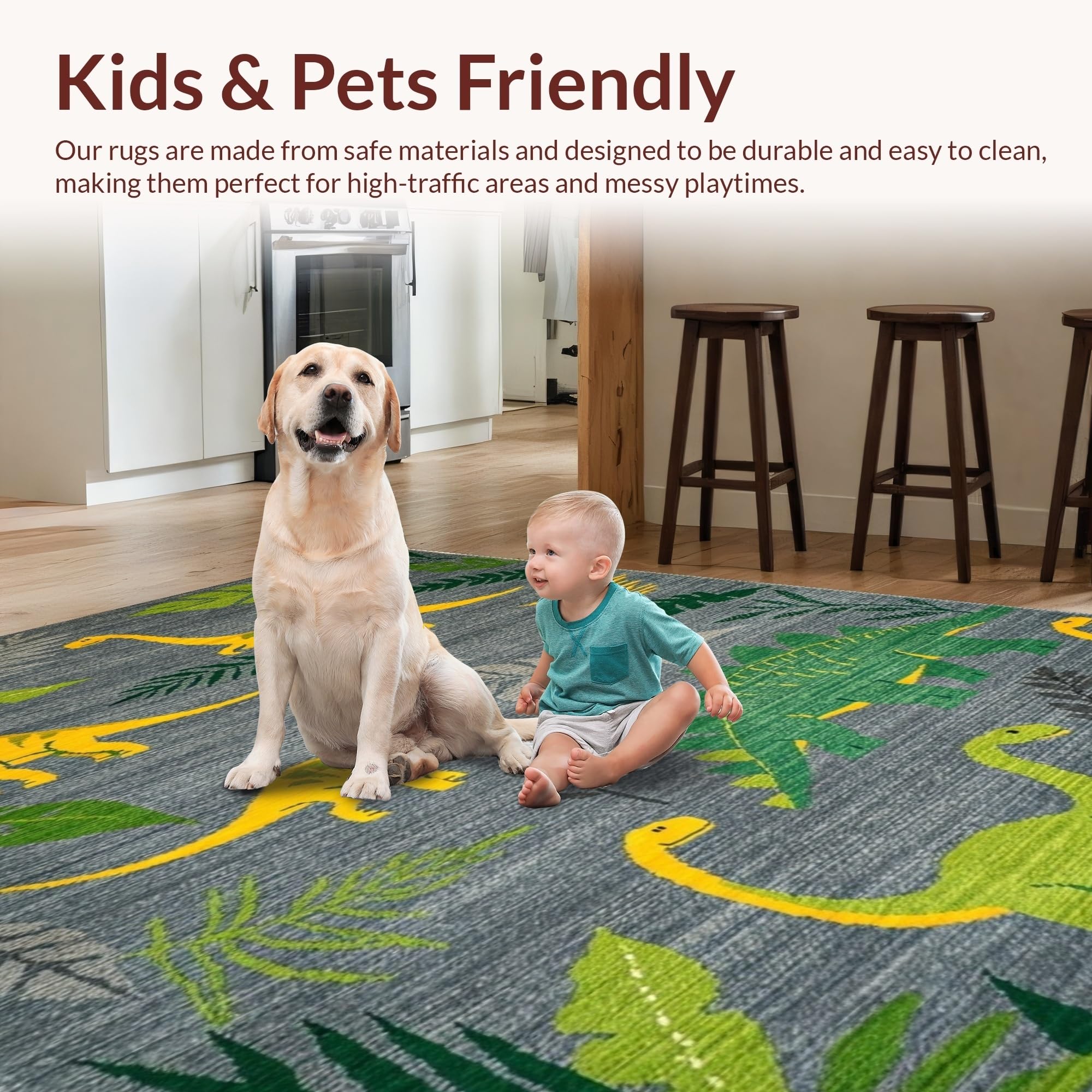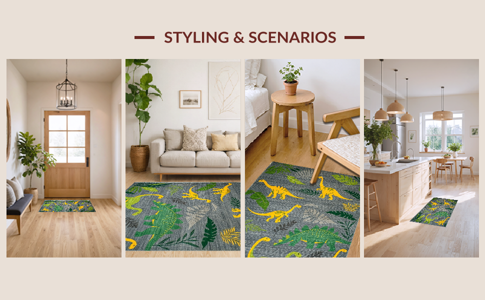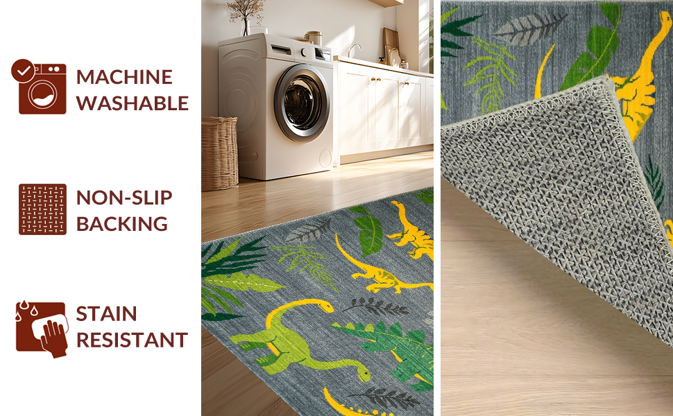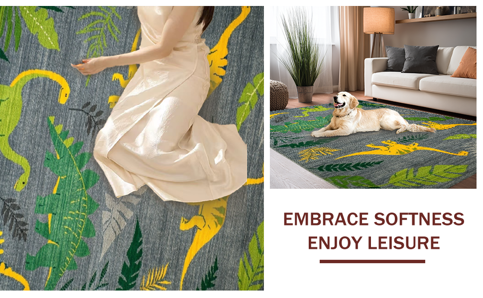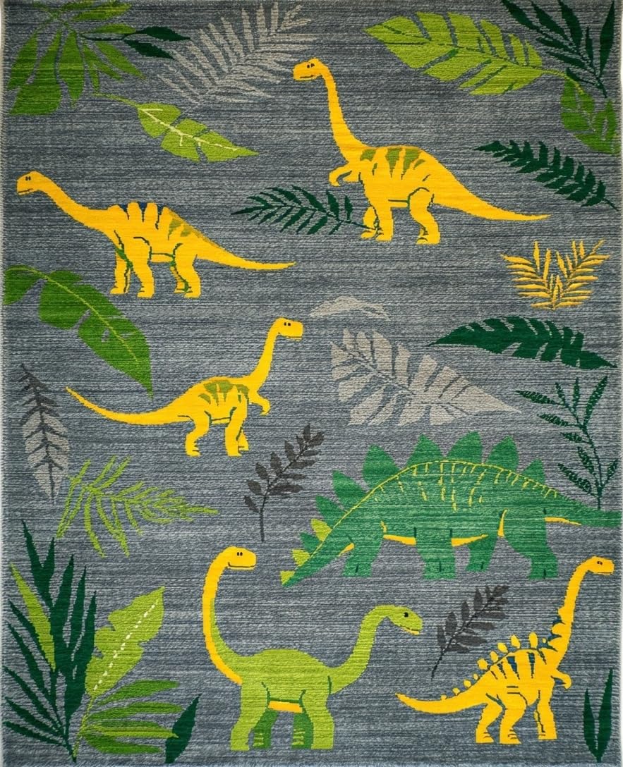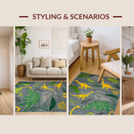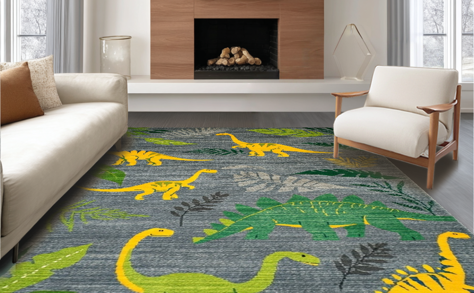 Ultra Soft Area Rug, Non Slip, Stain Resistant, Washable Area Rugs for Living Room, Bedroom, Colorful Dino Landscape Arrangement(Gray) Overview:
