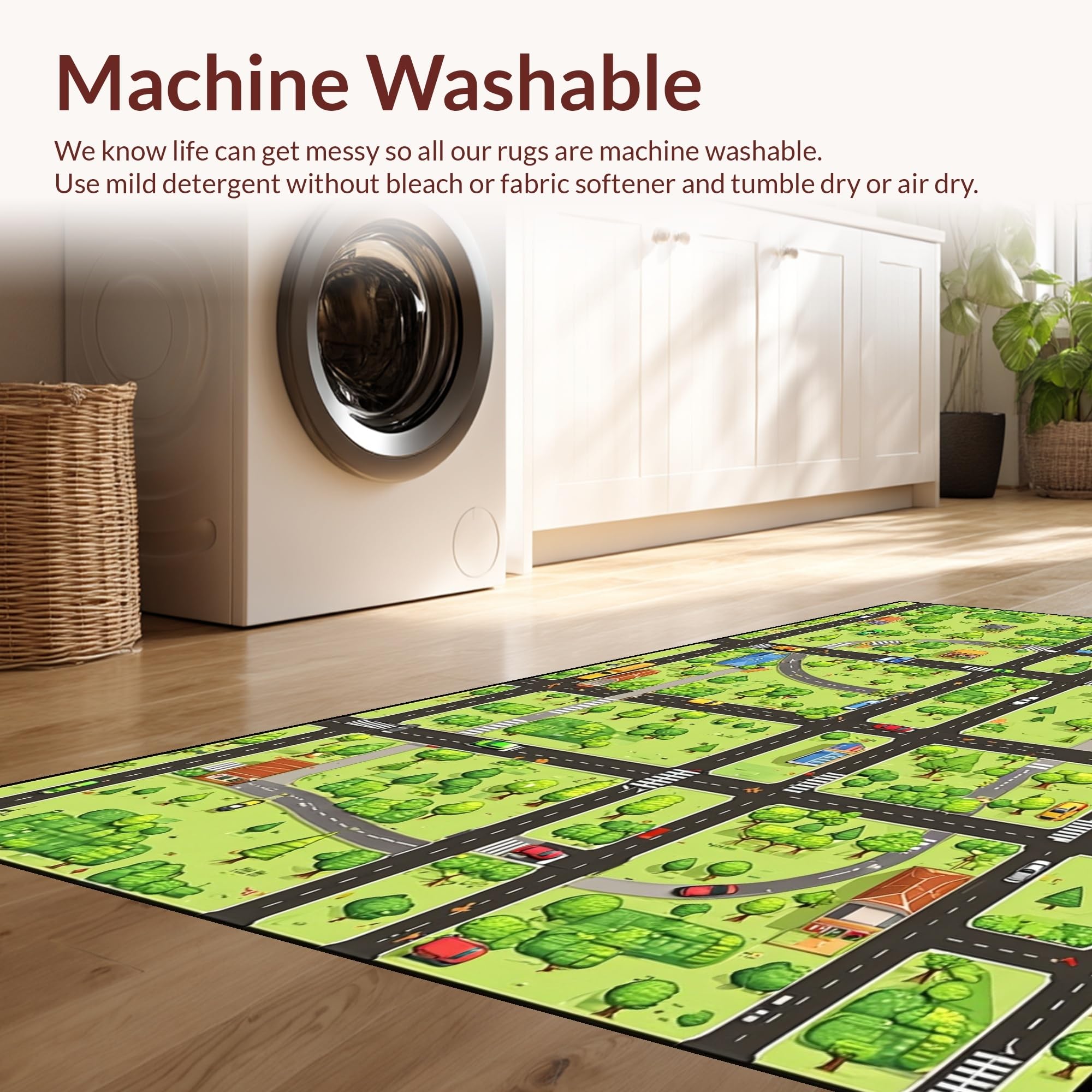 Ultra Soft Area Rug, Non Slip, Stain Resistant, Washable Area Rugs for Living Room, Bedroom, Colorful Educational Traffic Layout(Green) Overview: