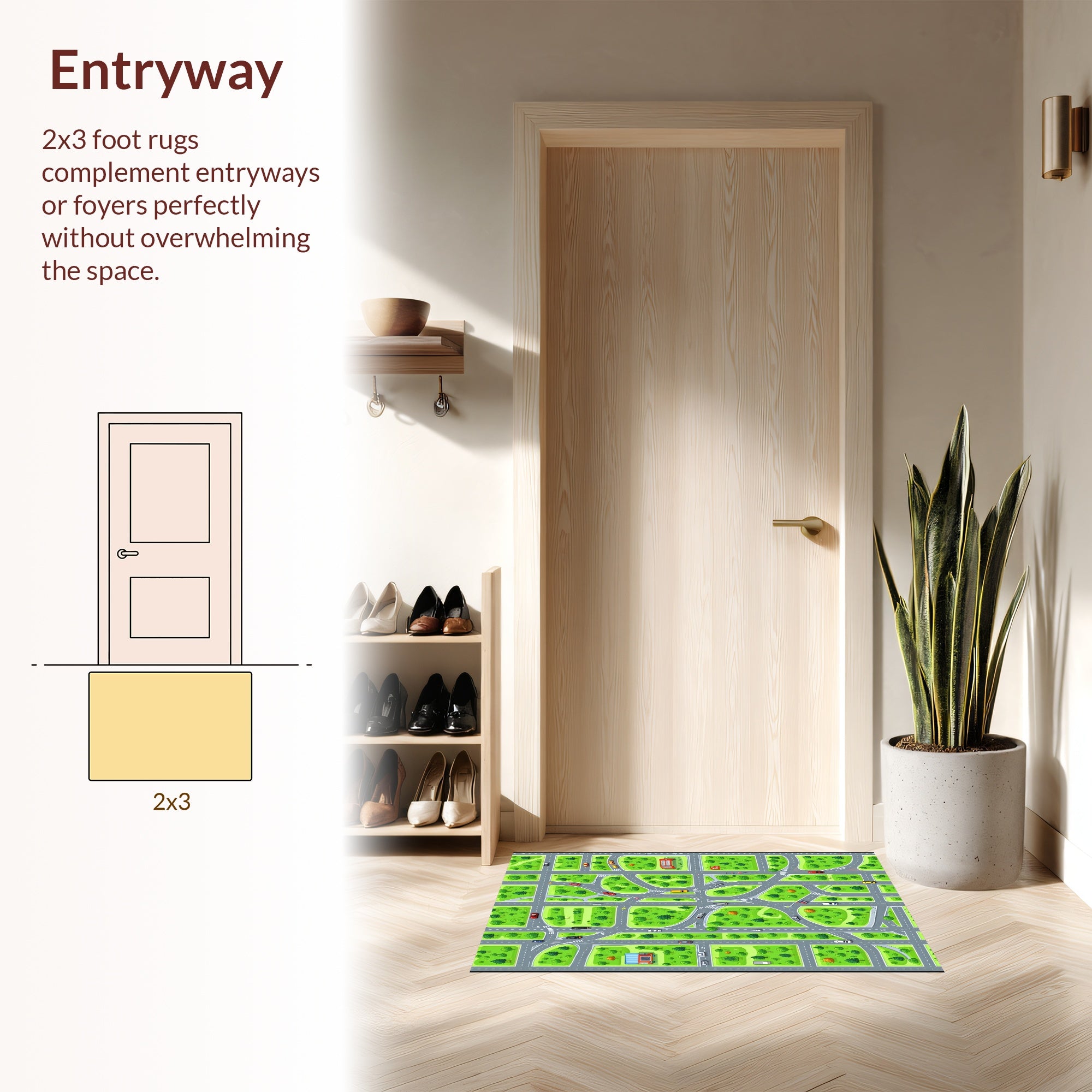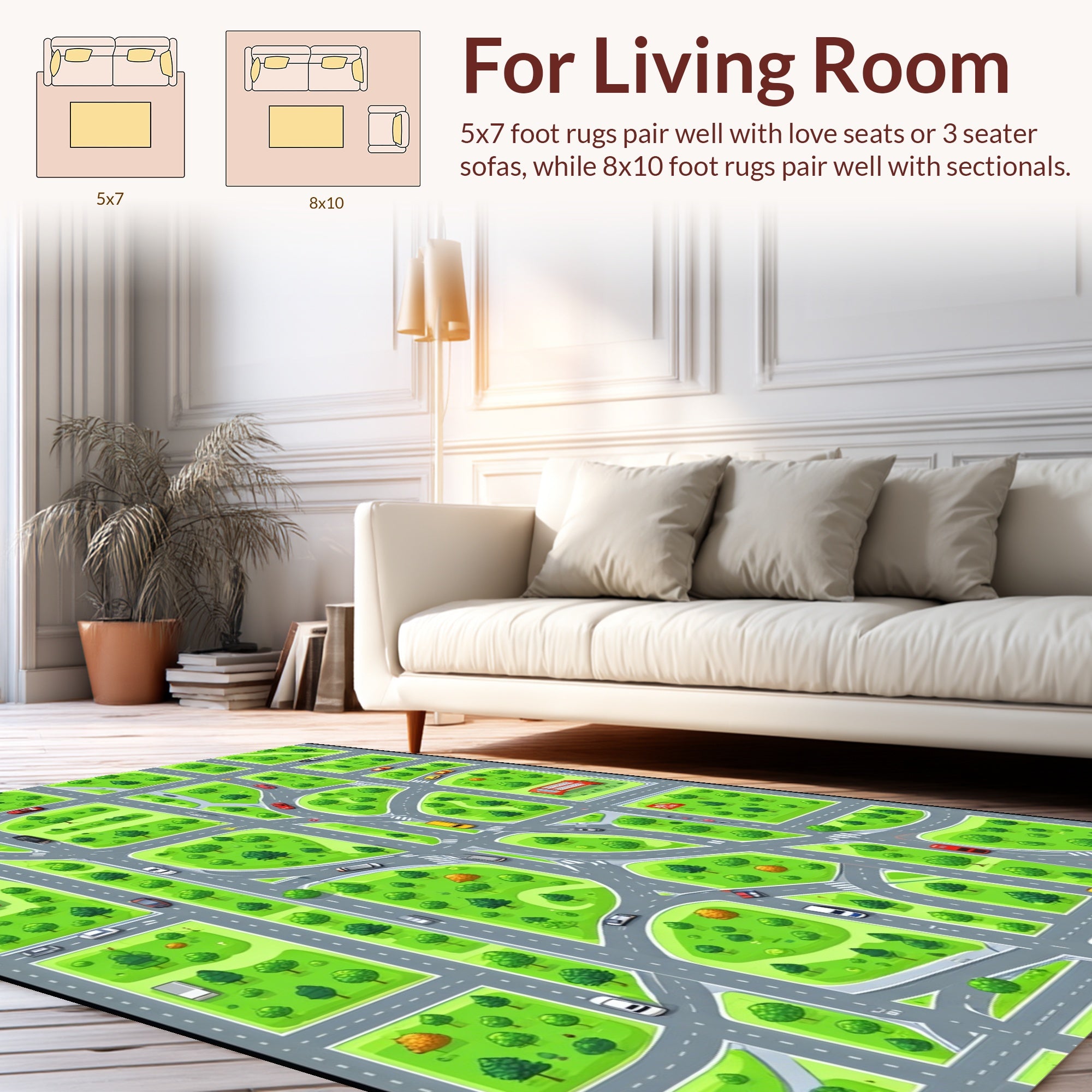 Flatwoven High Traffic Area Rug, Colorful Educational Urban Experience, Non Slip, Stain Resistant, Washable Area Rugs for Living Room, Bedroom (Green) Overview: