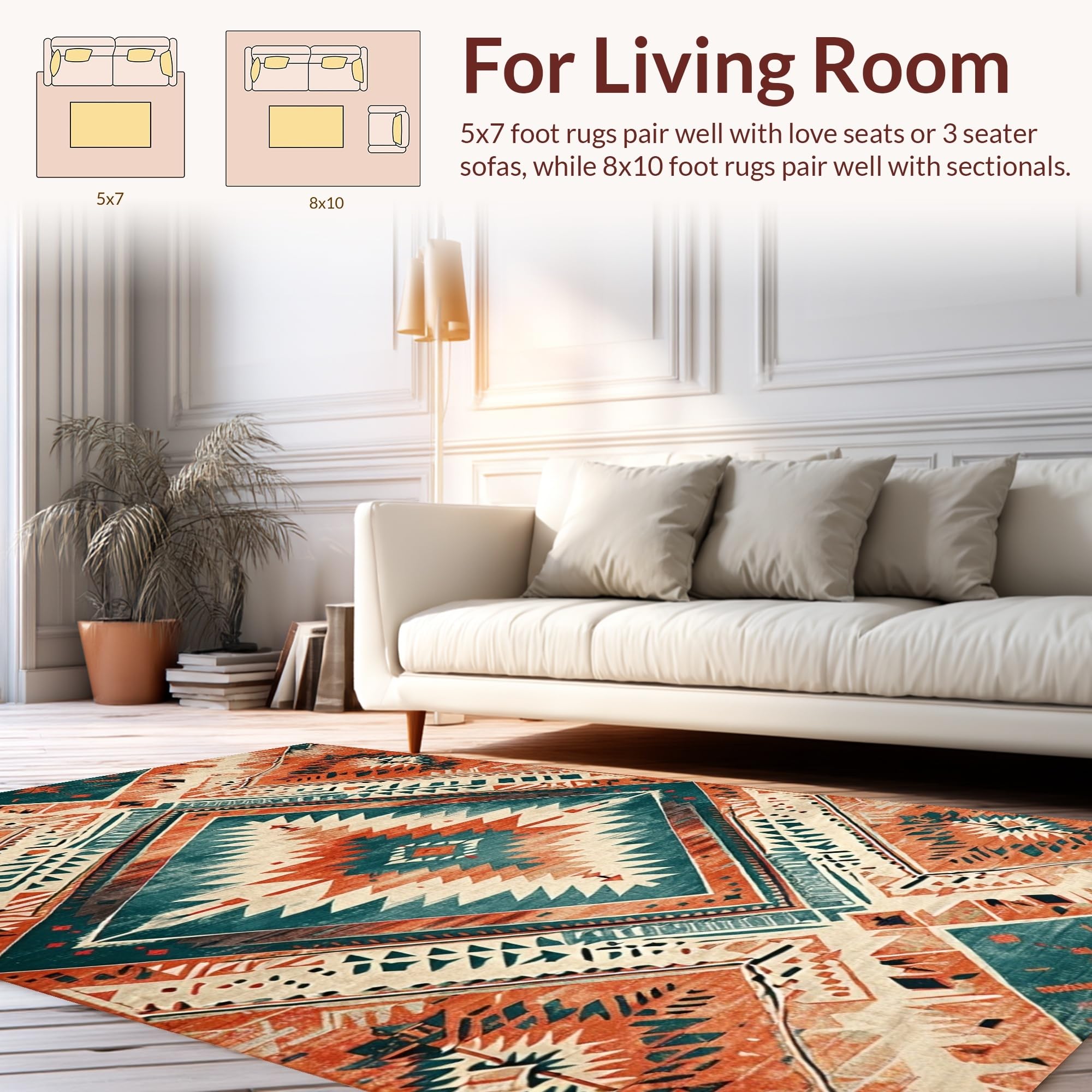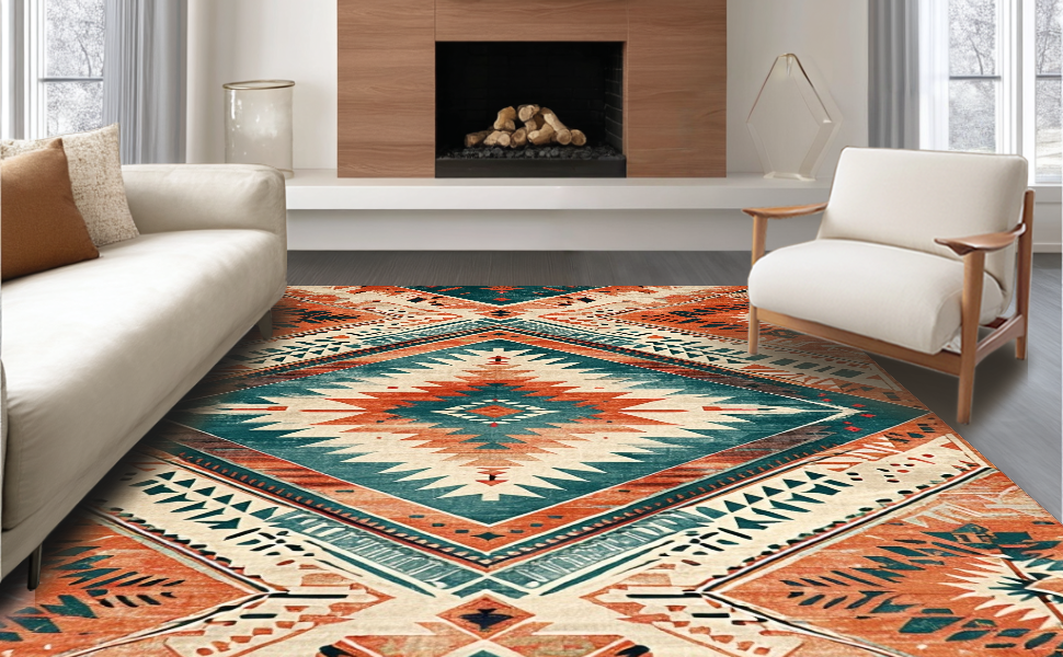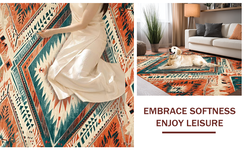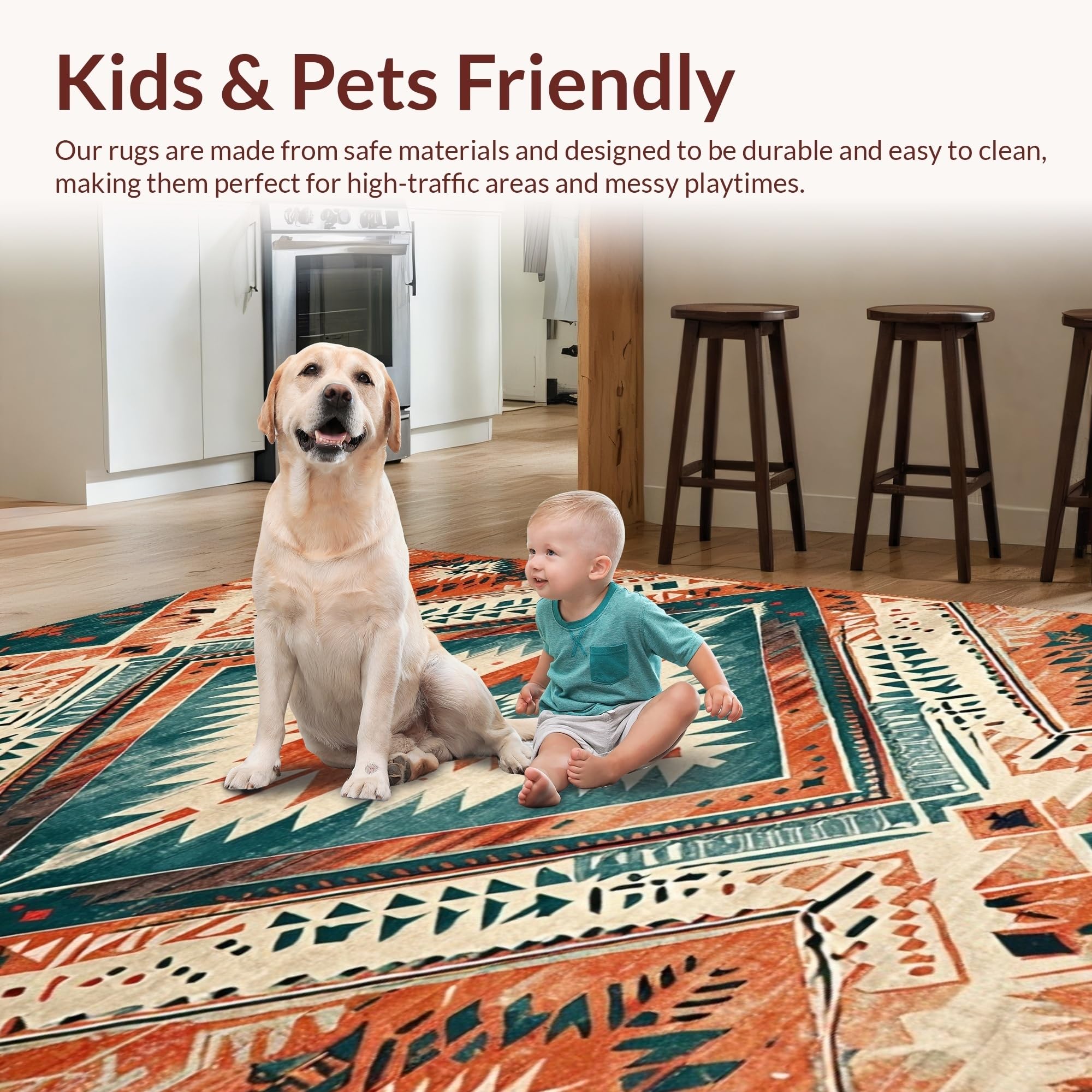 Ultra Soft Area Rug, Non Slip, Stain Resistant, Washable Area Rugs for Living Room, Bedroom, Colorful Ethnic Mosaic Inspiration(Red) Overview: