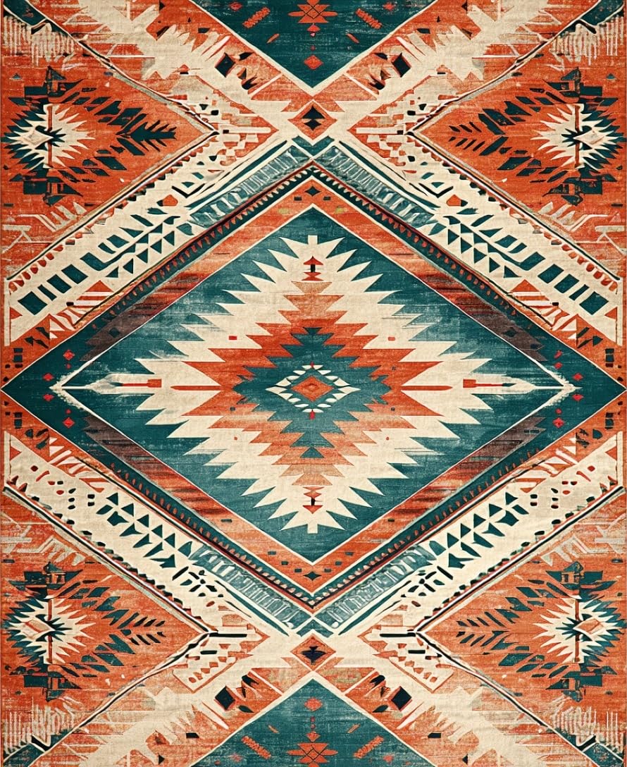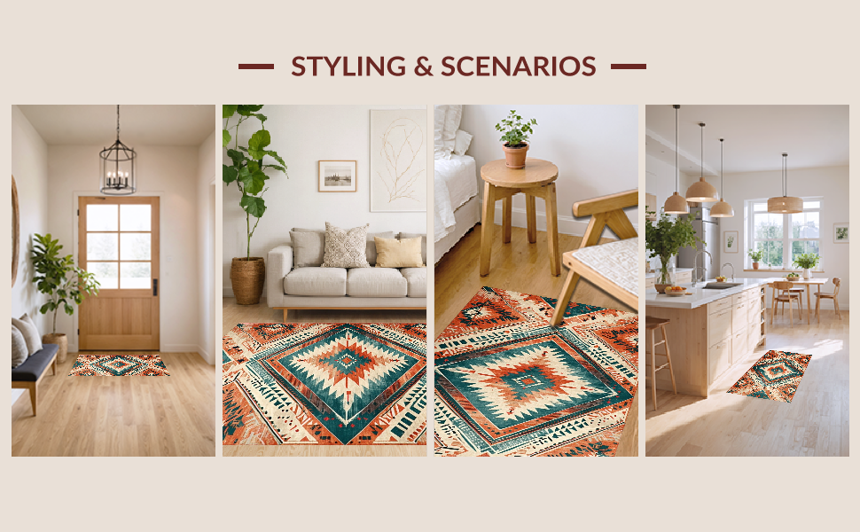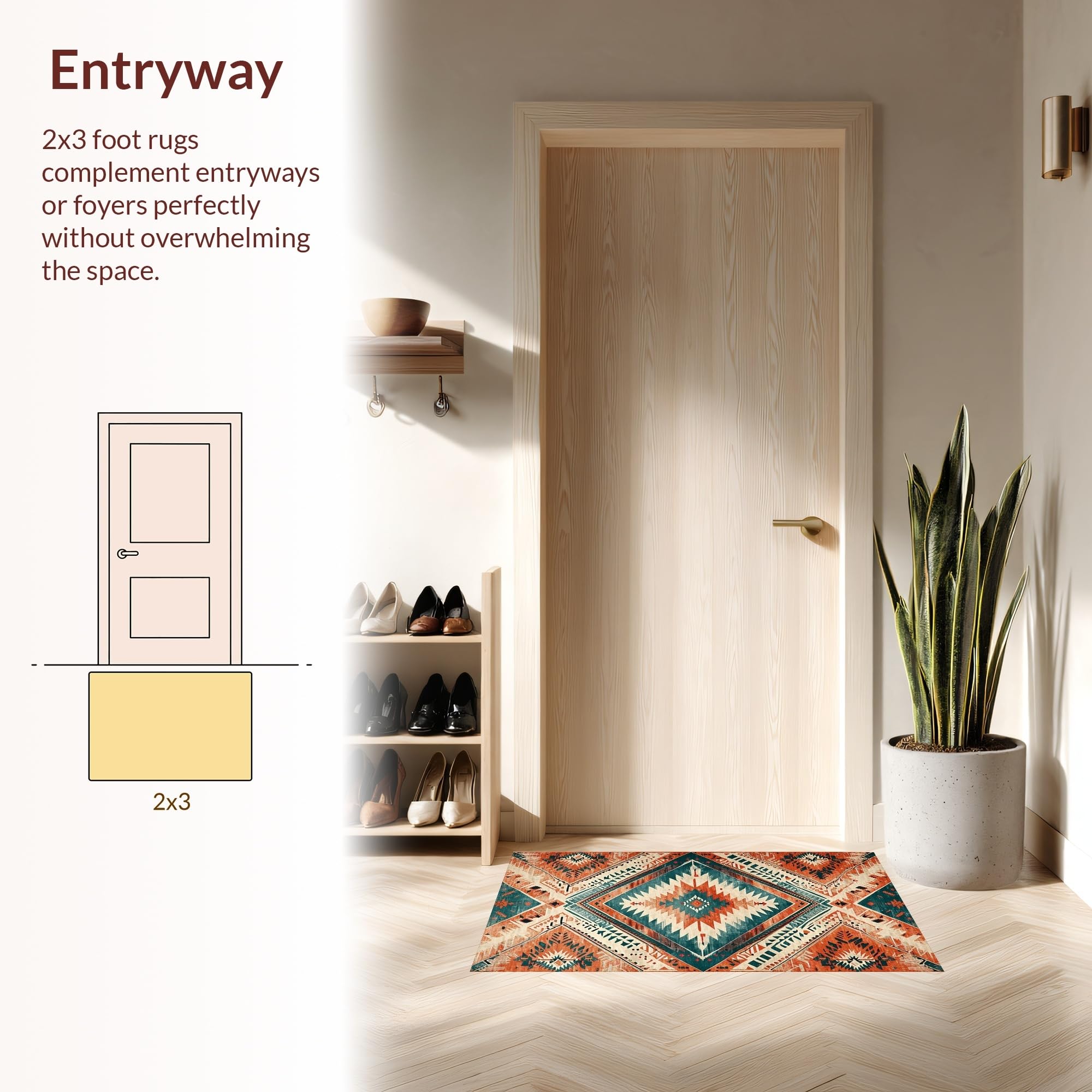 Ultra Soft Area Rug, Non Slip, Stain Resistant, Washable Area Rugs for Living Room, Bedroom, Colorful Ethnic Mosaic Inspiration(Red) Overview: