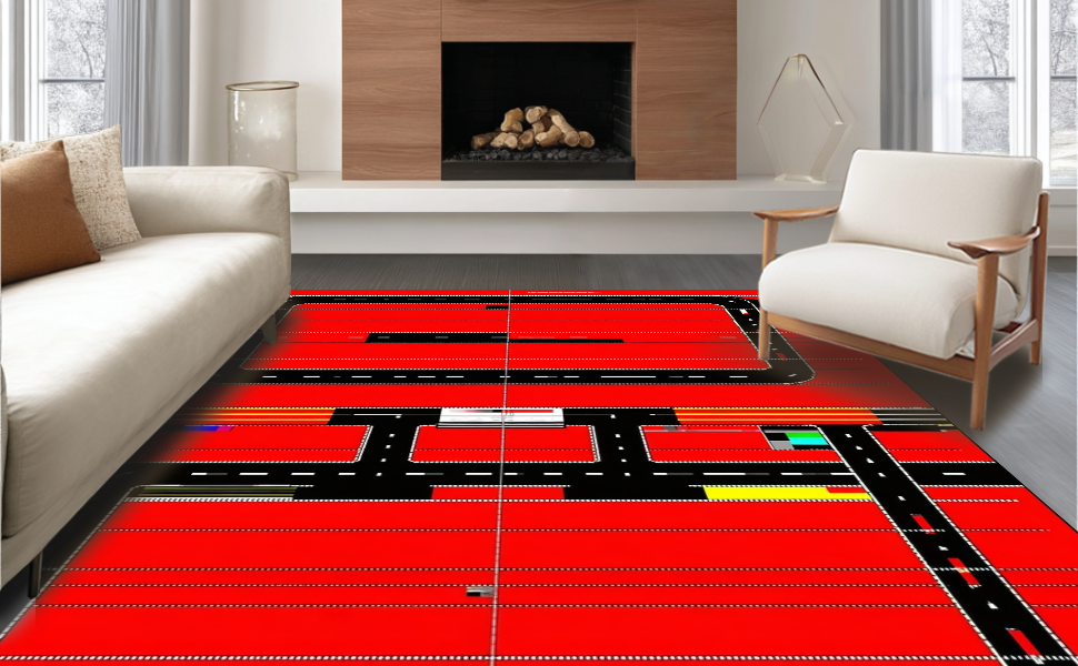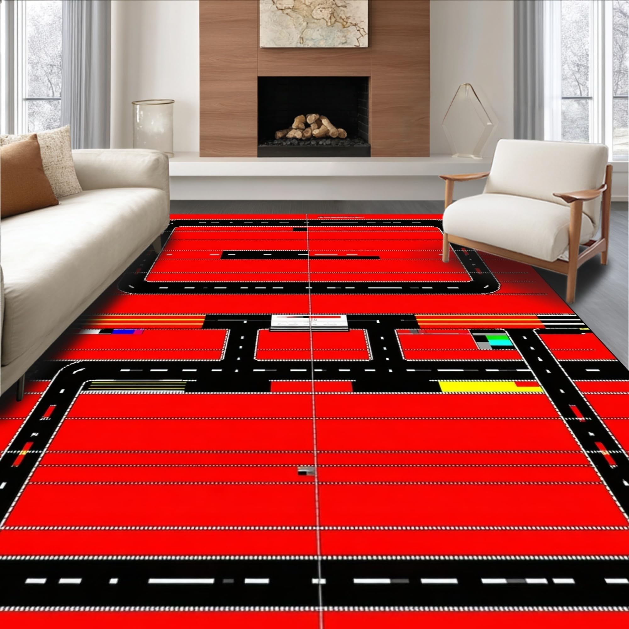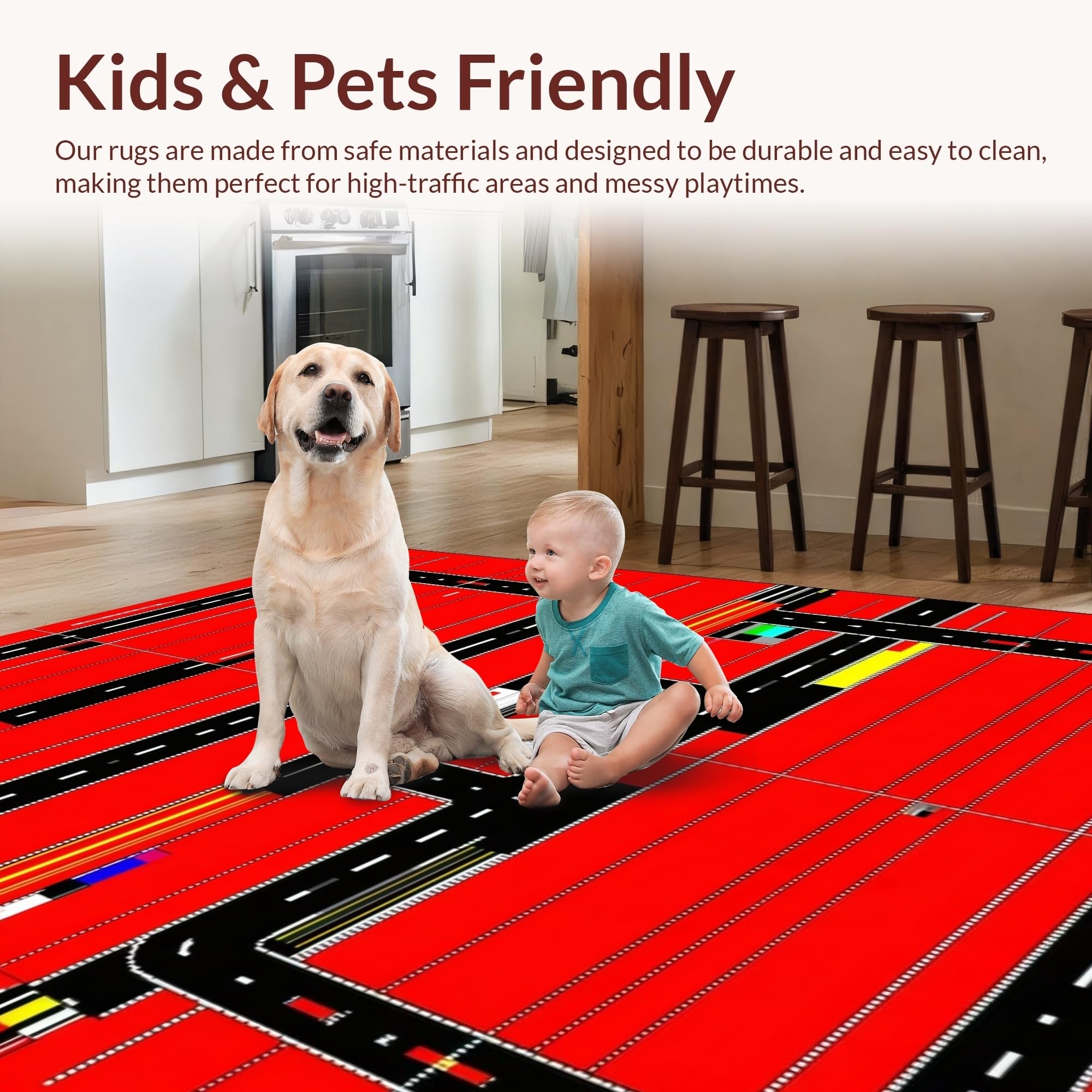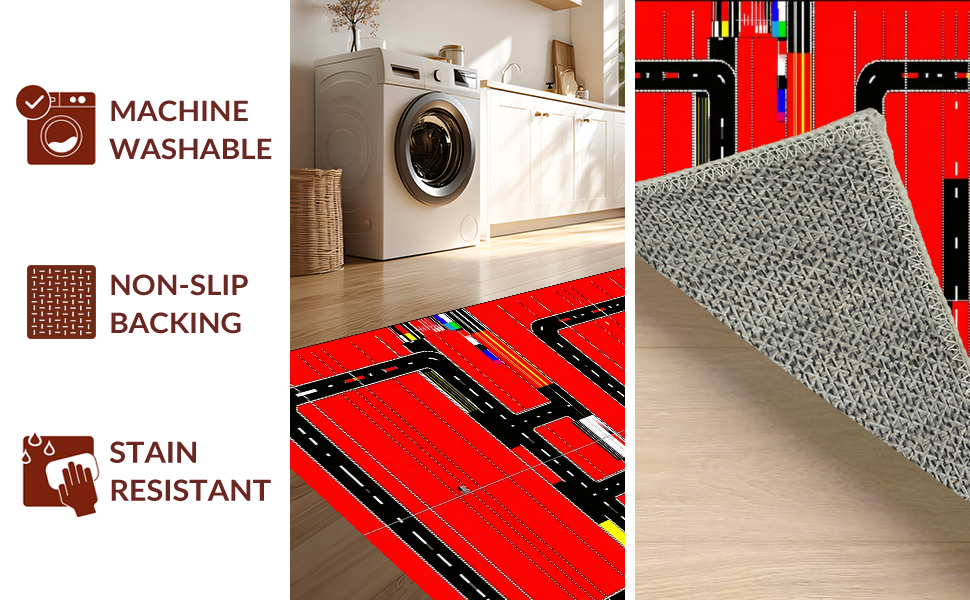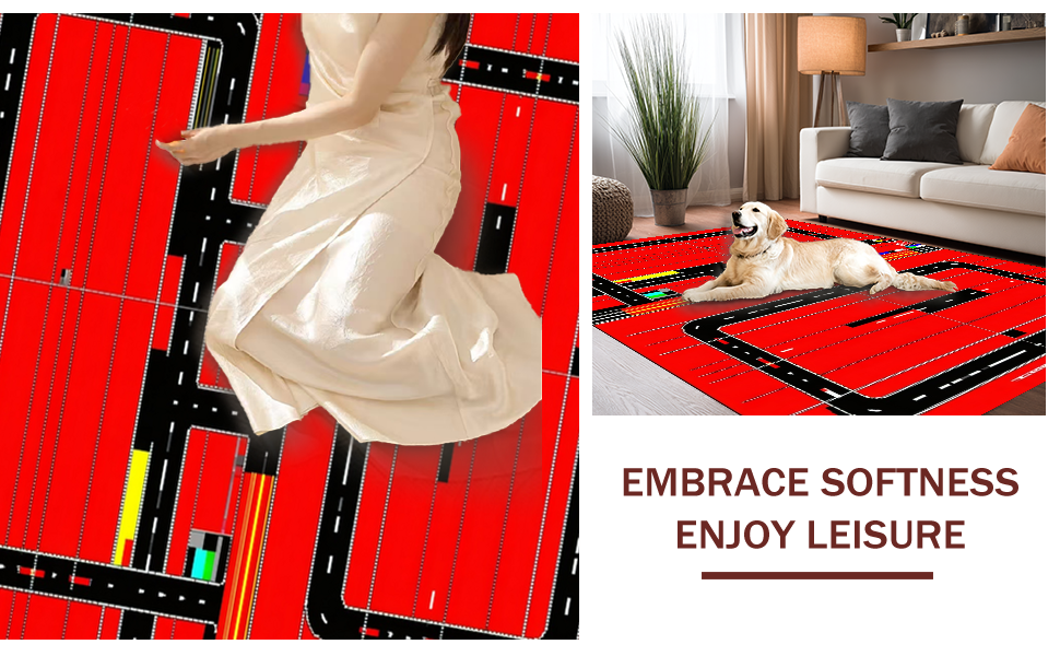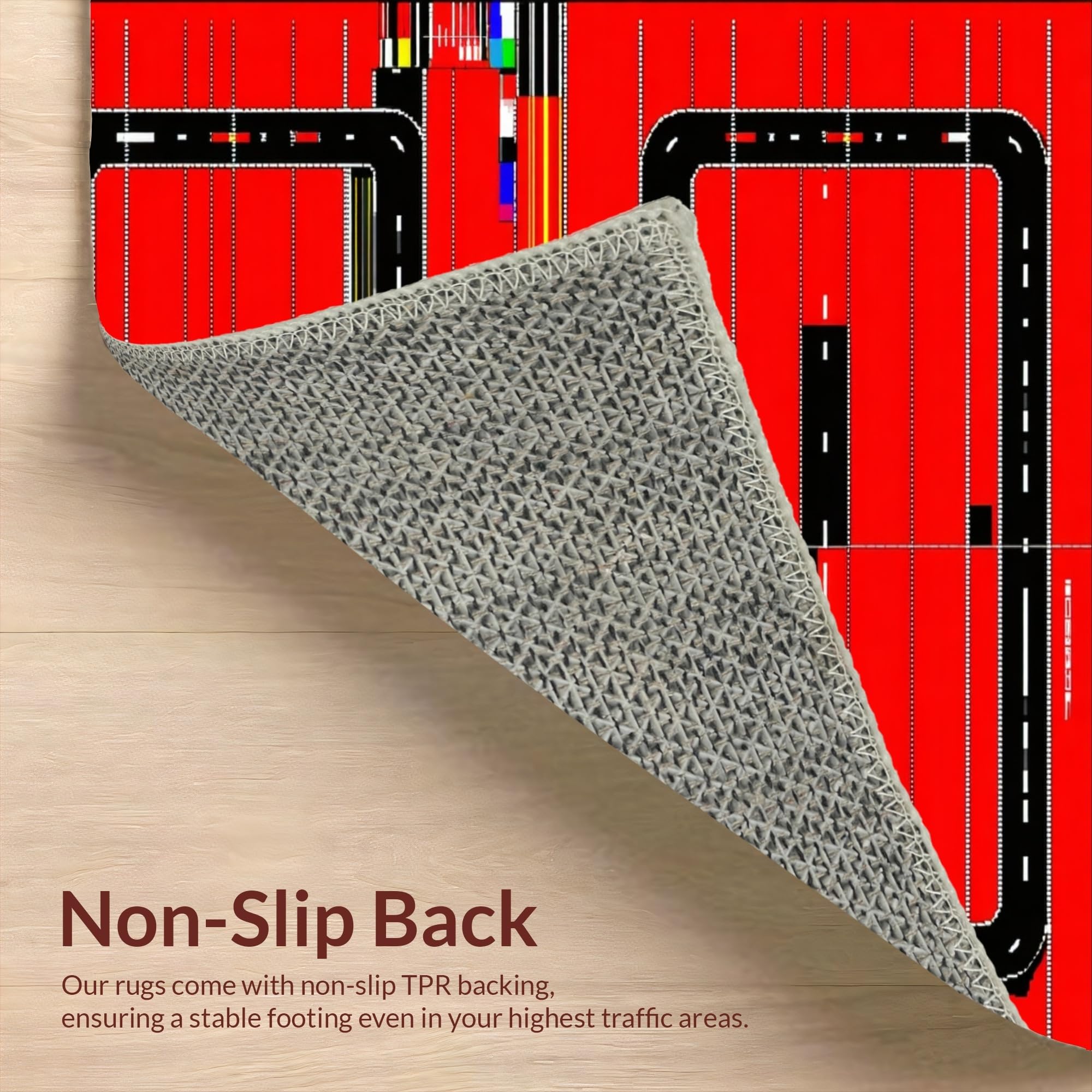Ultra Soft Area Rug, Non Slip, Stain Resistant, Washable Area Rugs for Living Room, Bedroom, Colorful Finish Line Play Area(Red) Overview: