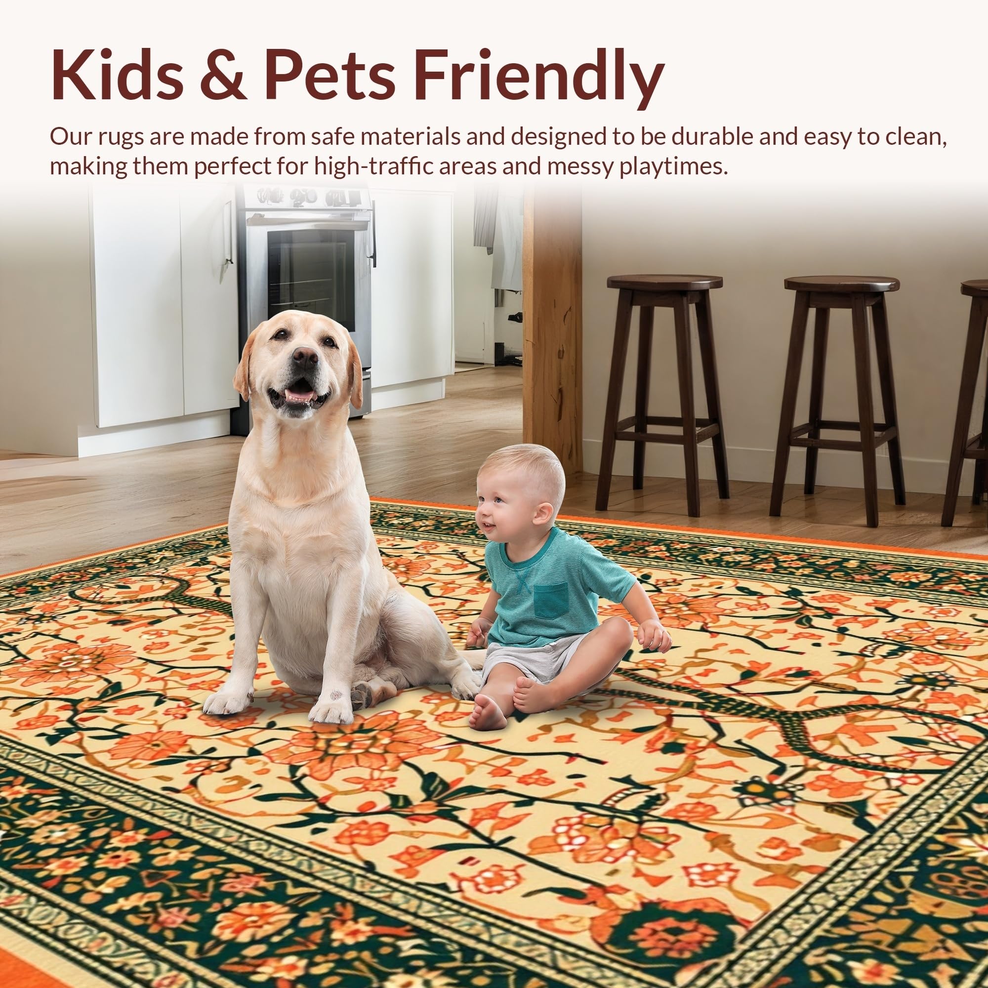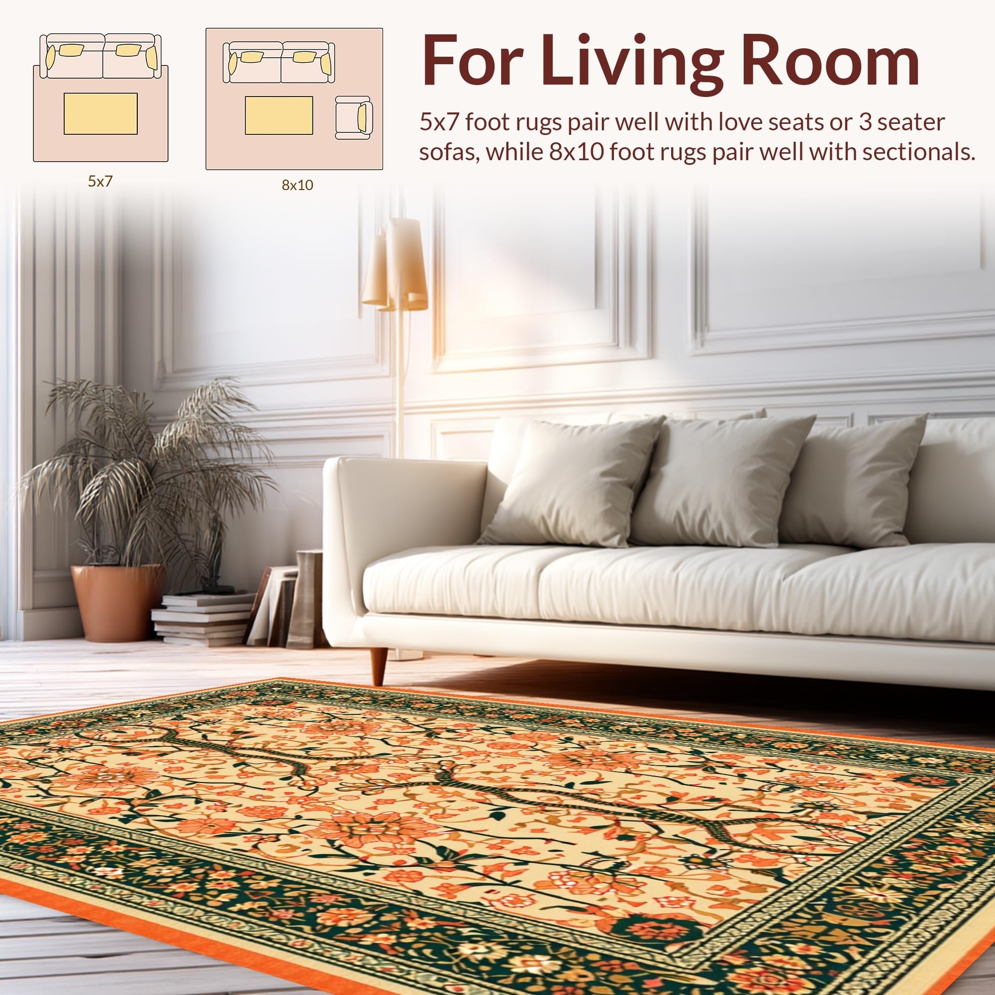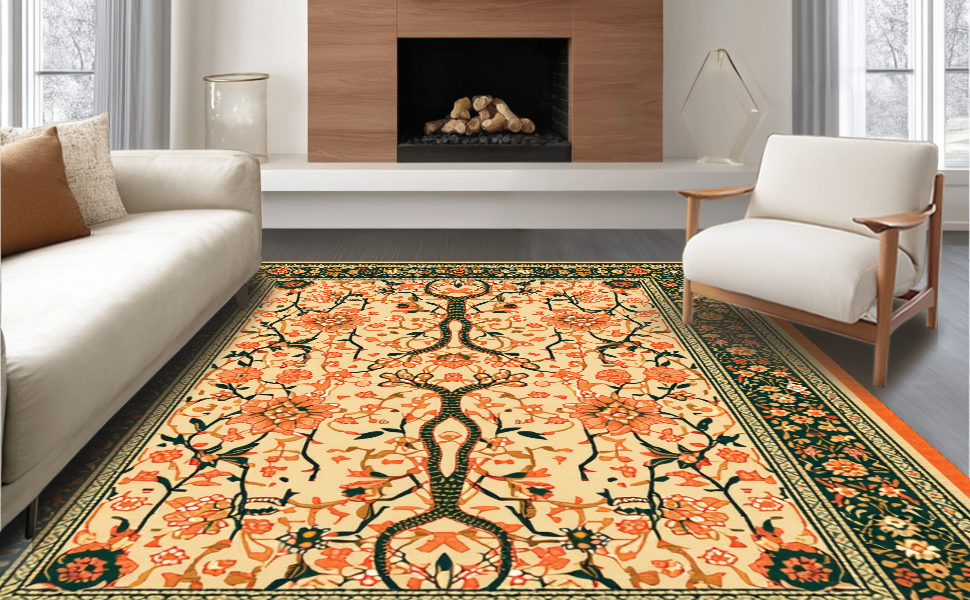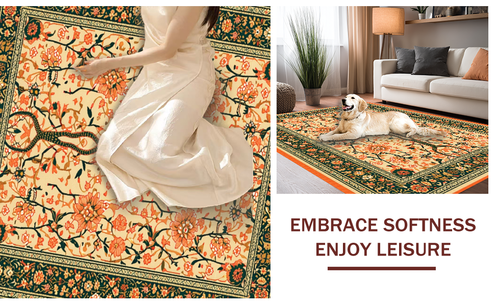 Ultra Soft Area Rug, Non Slip, Stain Resistant, Washable Area Rugs for Living Room, Bedroom, Colorful Floral Python Design(Beige) Overview: